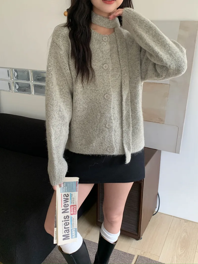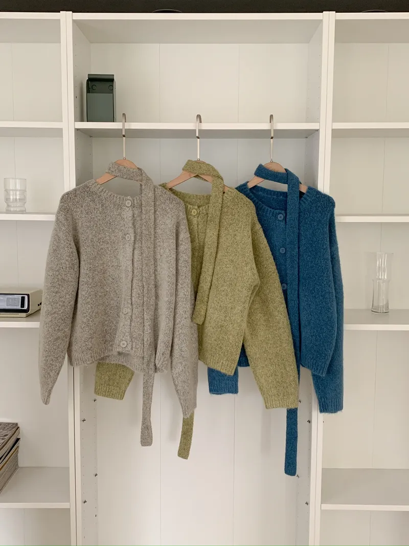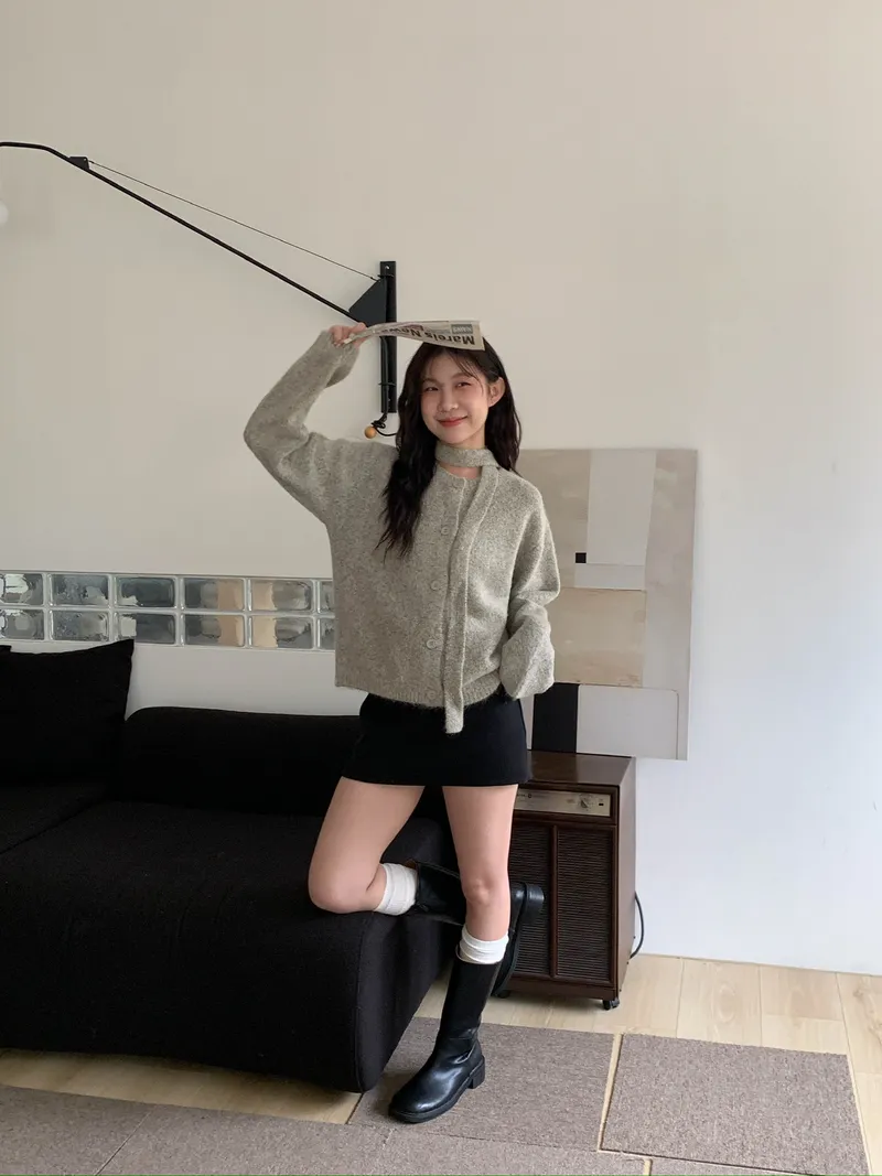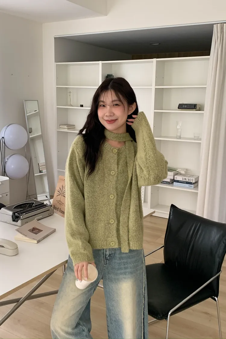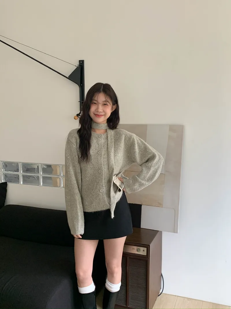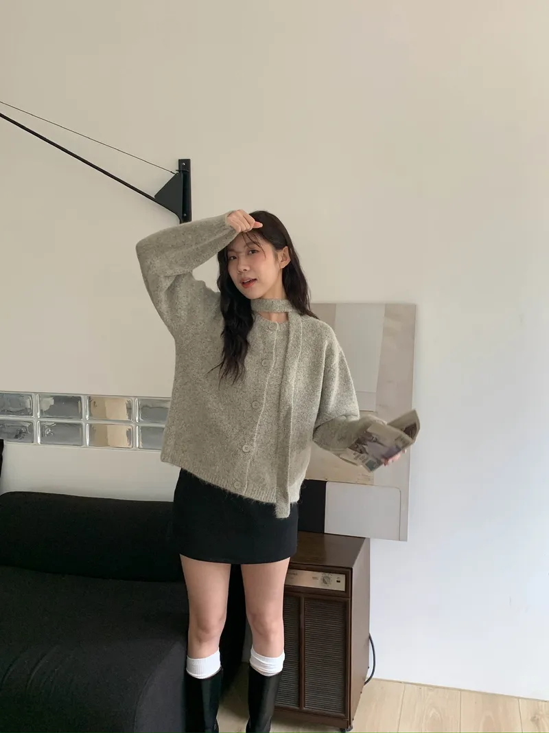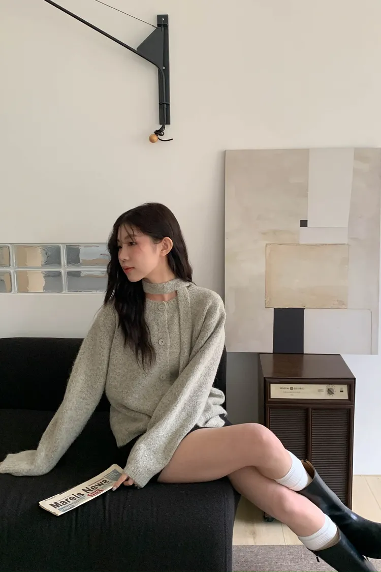 附繞脖混紗排釦針織上衣(3colors)