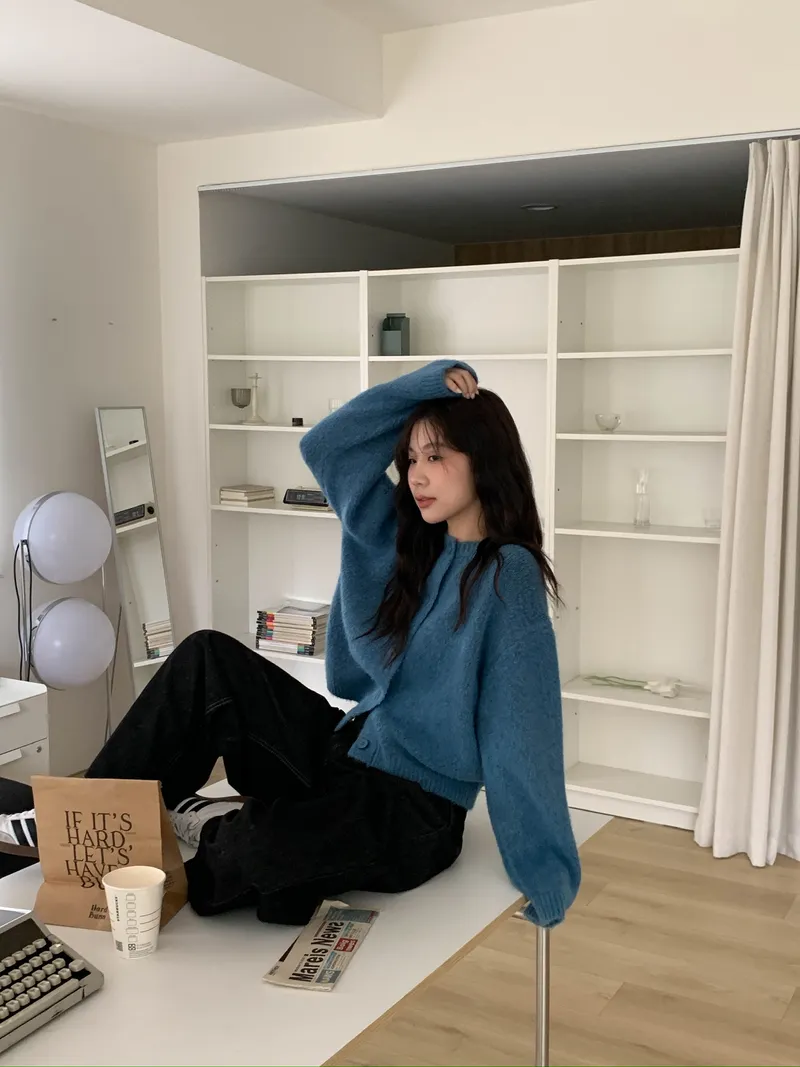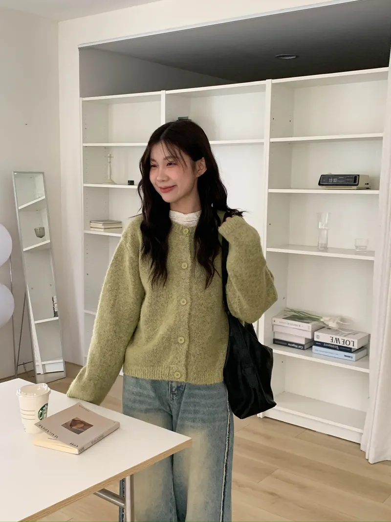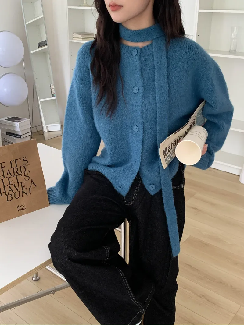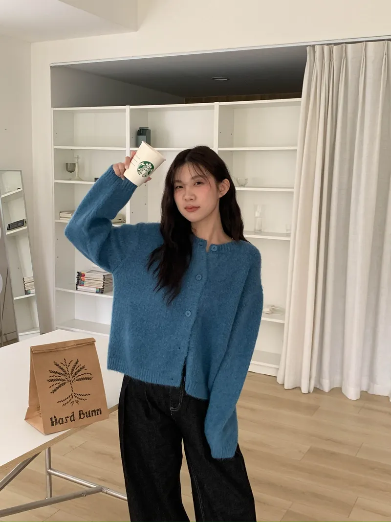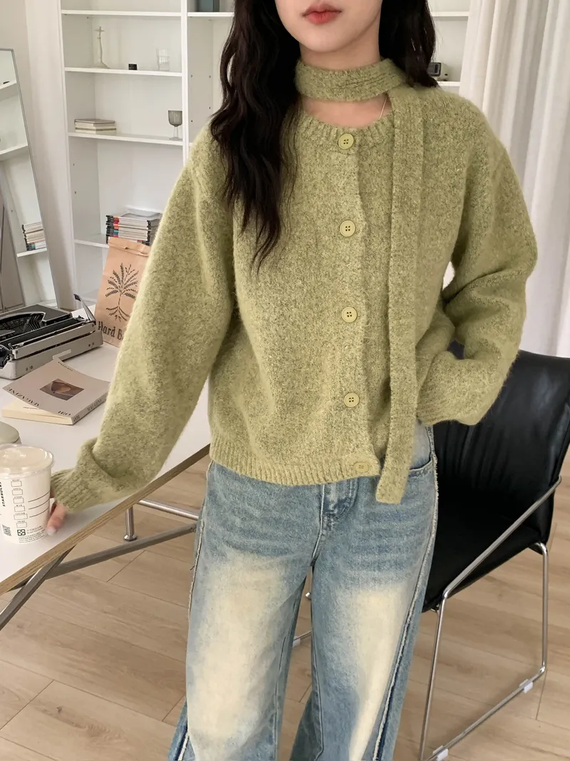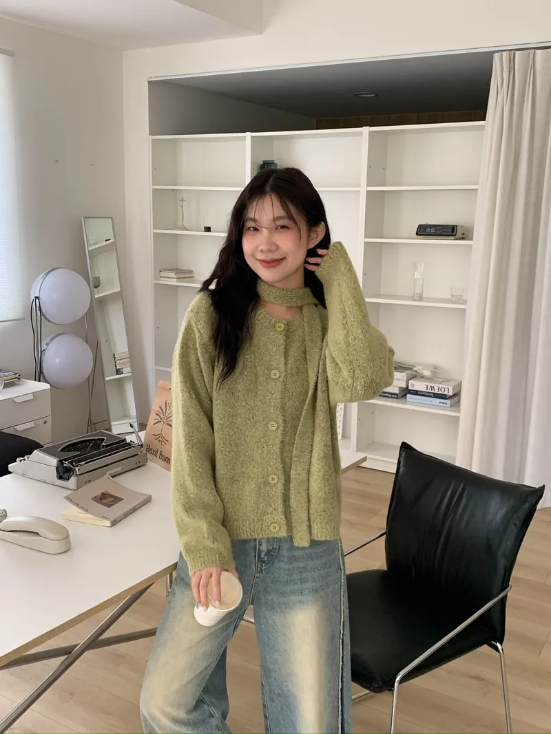 附繞脖混紗排釦針織上衣(3colors)
