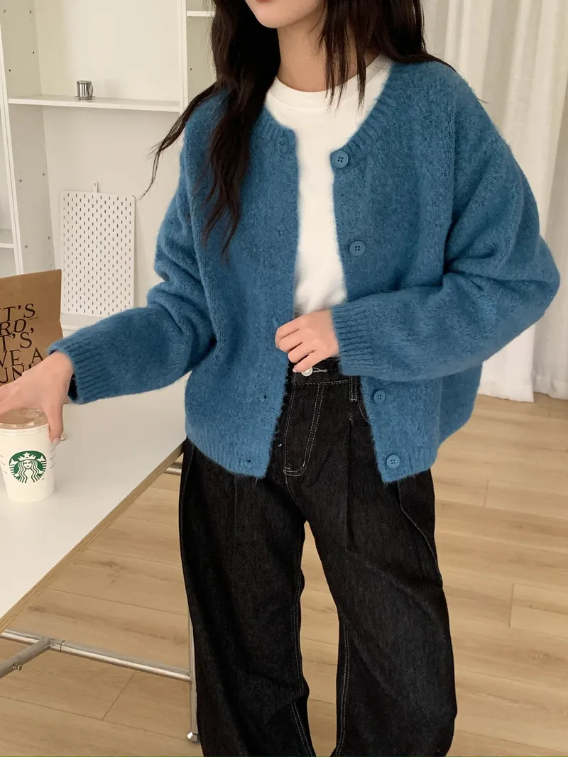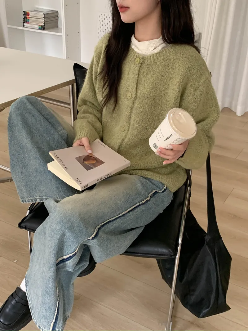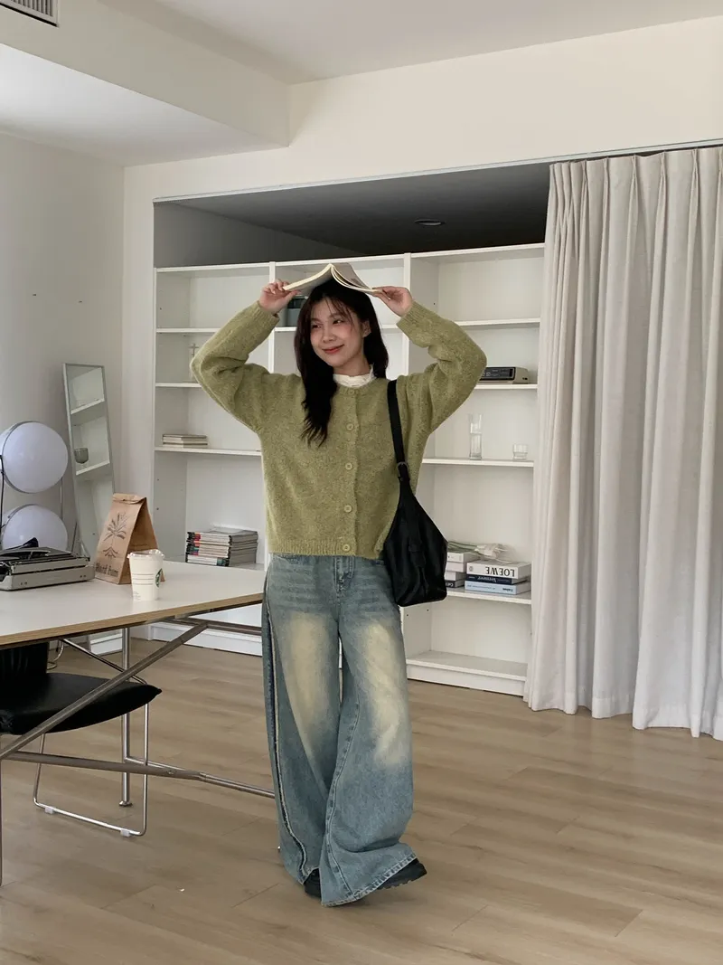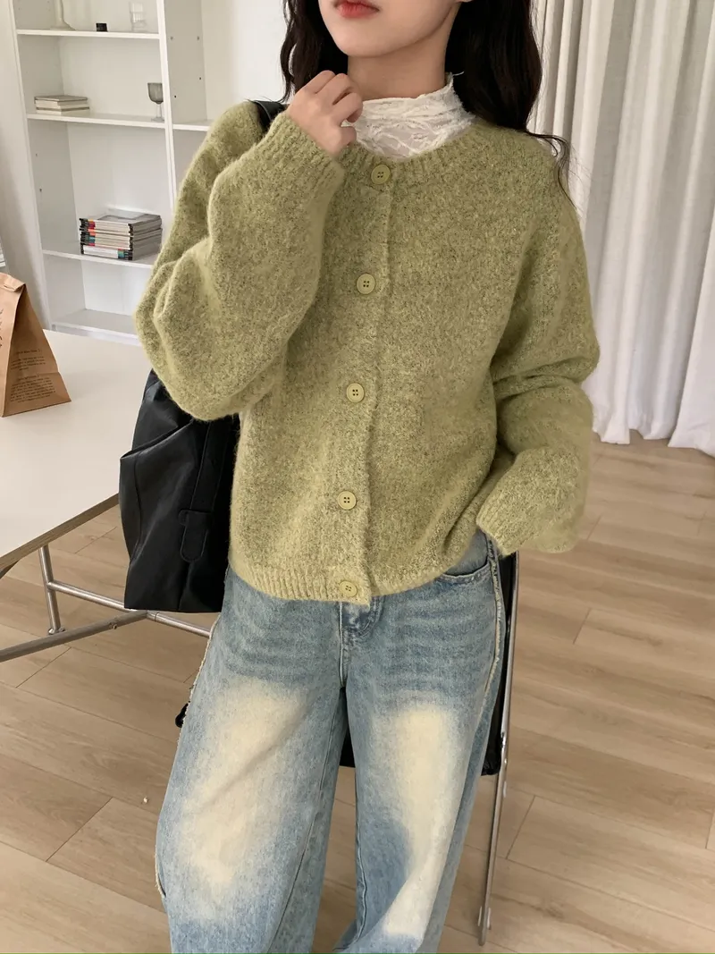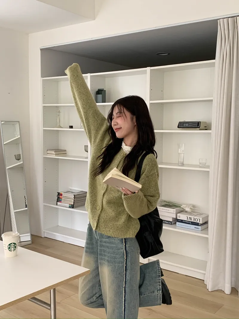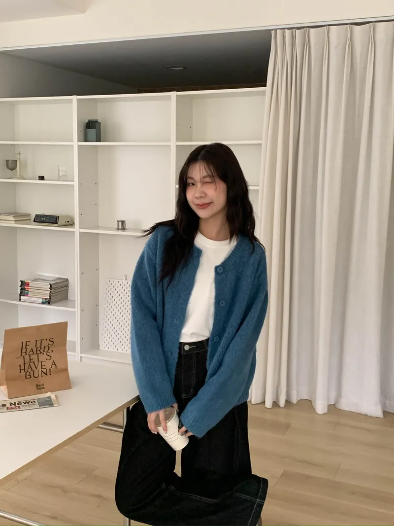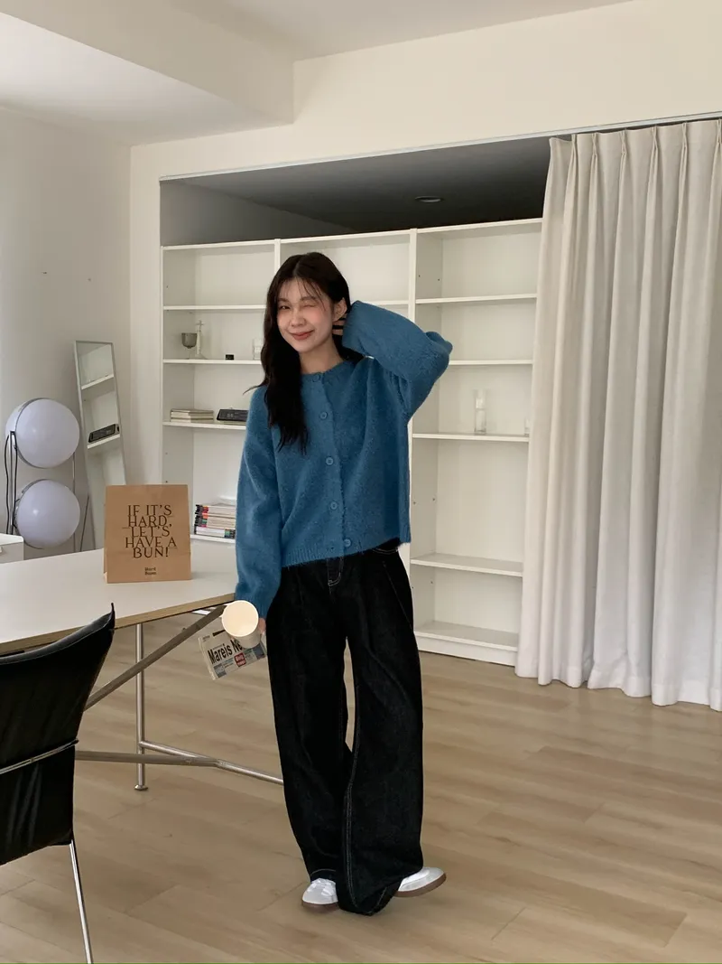 附繞脖混紗排釦針織上衣(3colors)