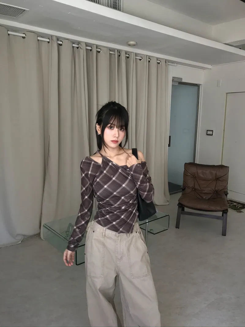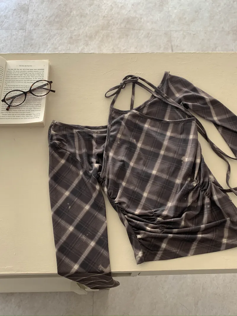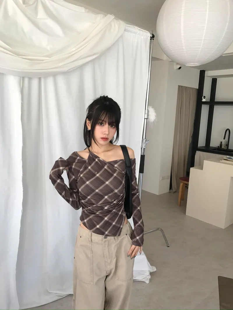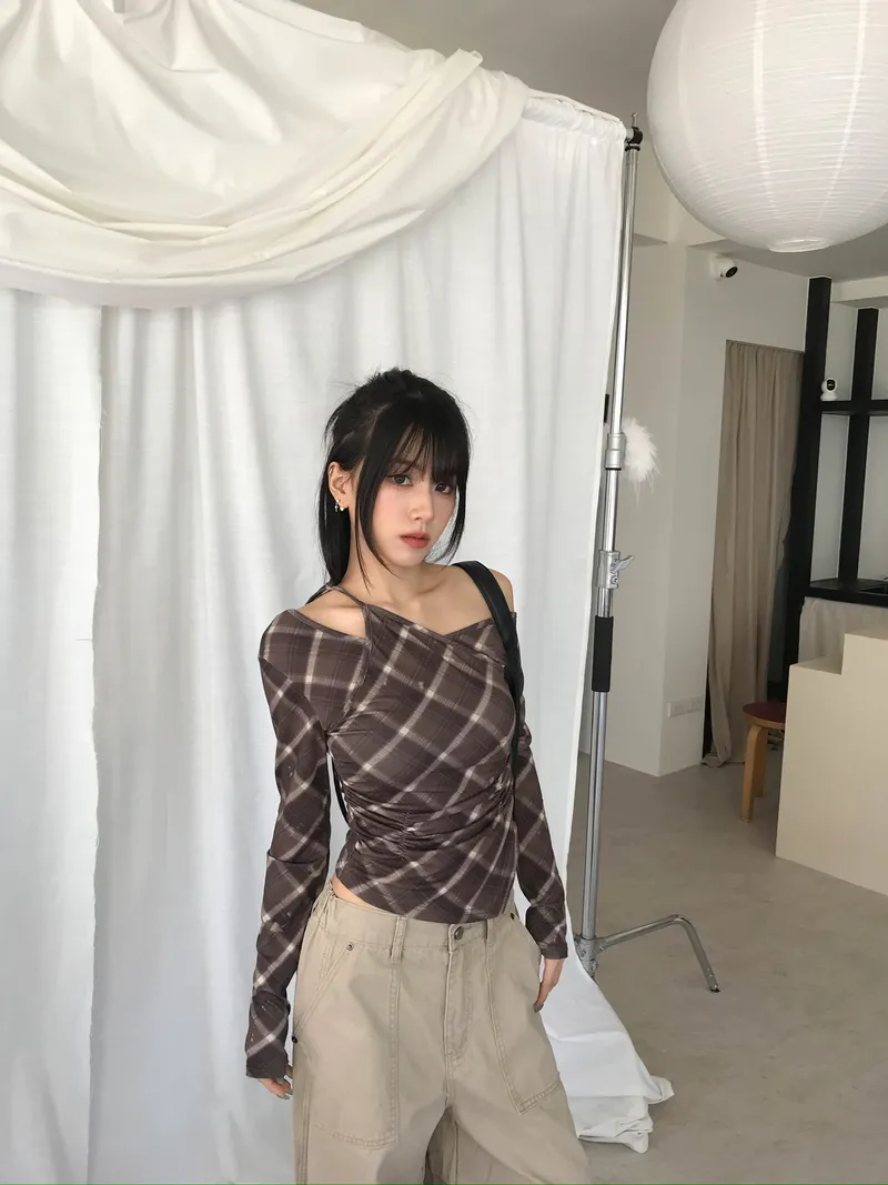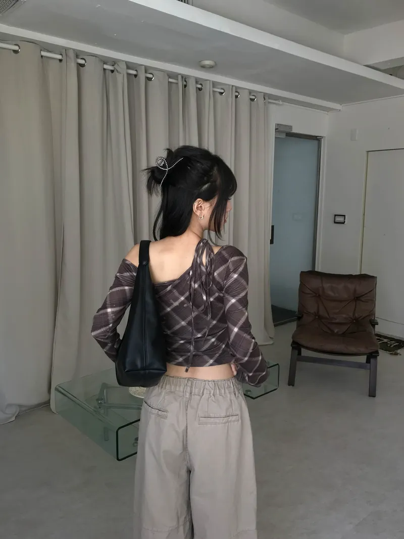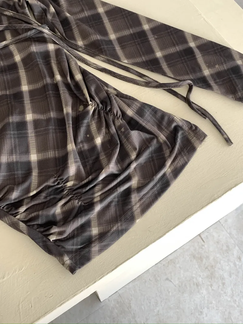 撞色格紋X小挖肩剪裁