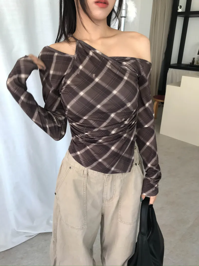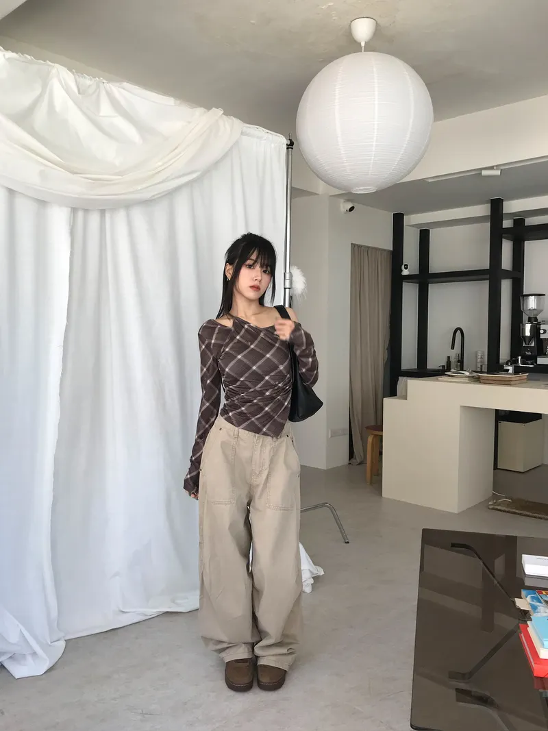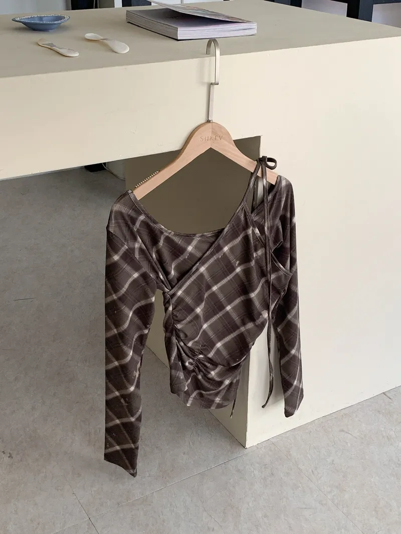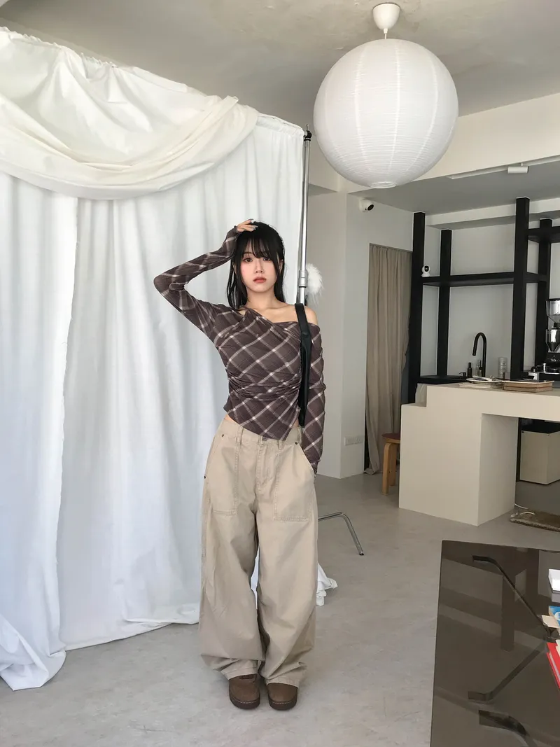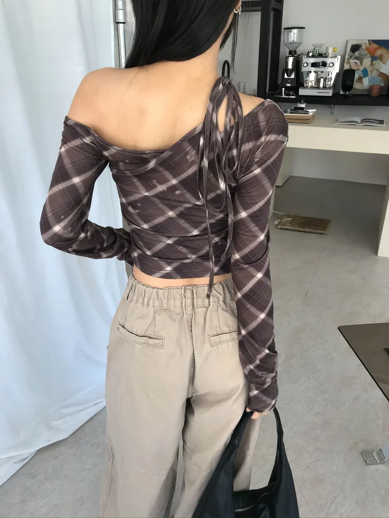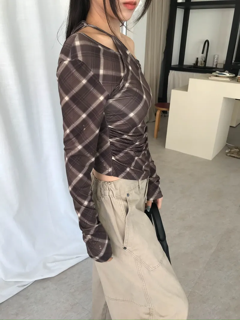 撞色格紋X小挖肩剪裁