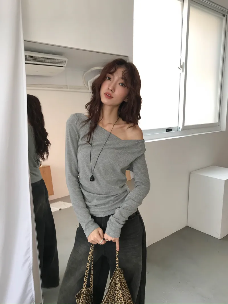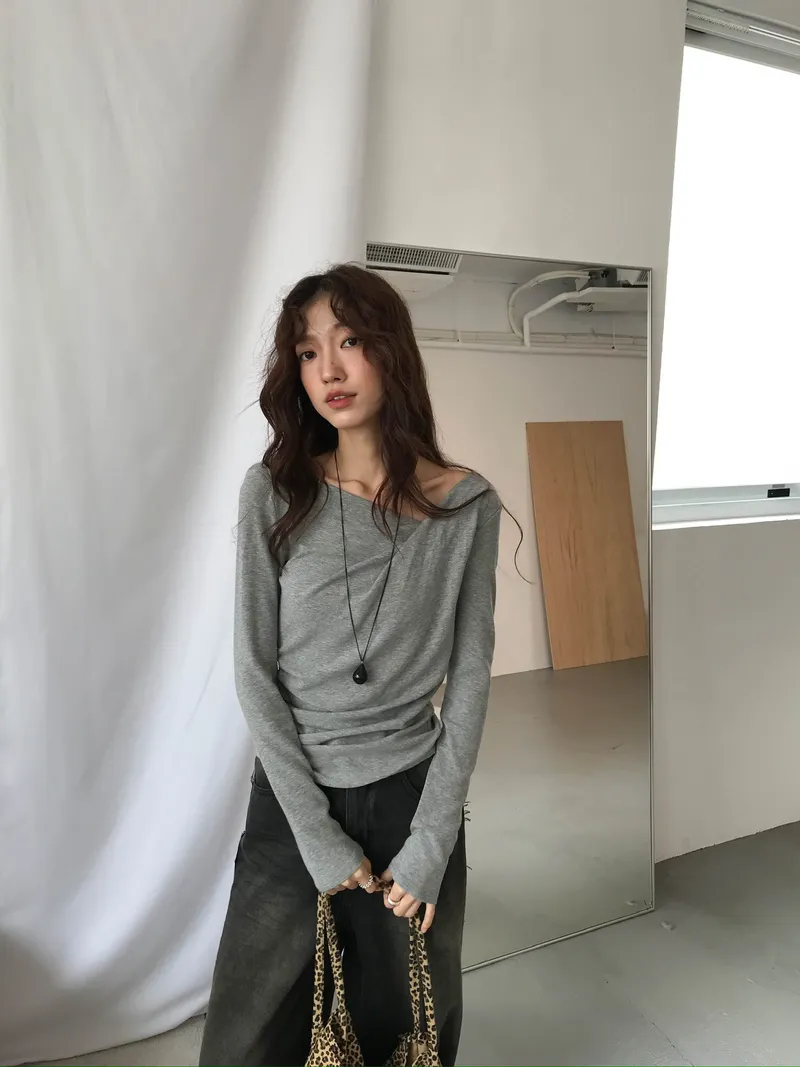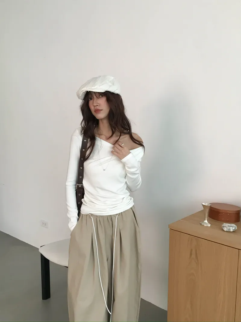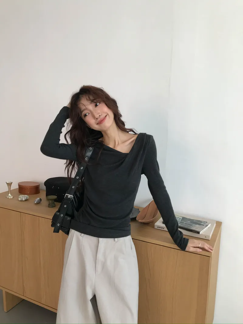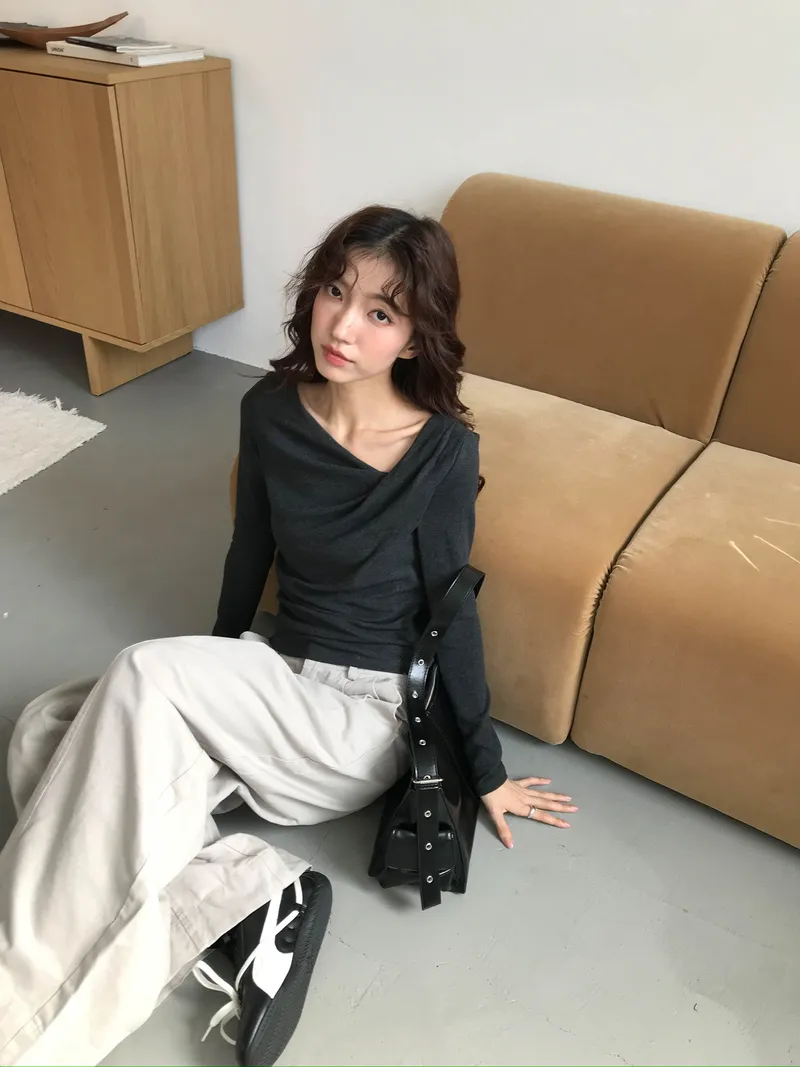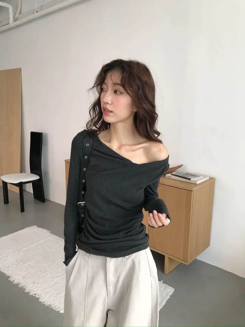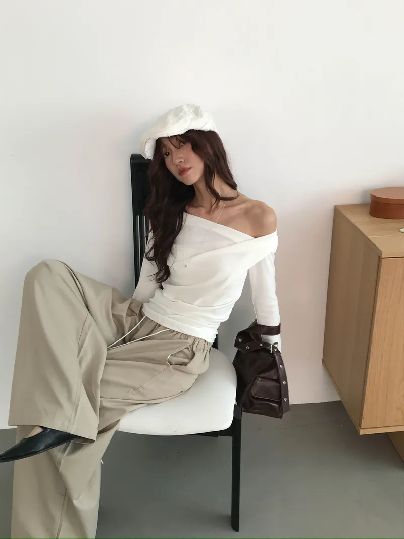 小露鎖骨自然向下帶出垂墜蕩領
