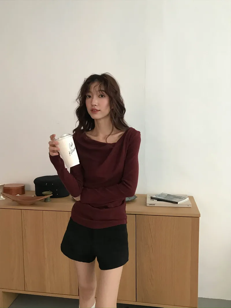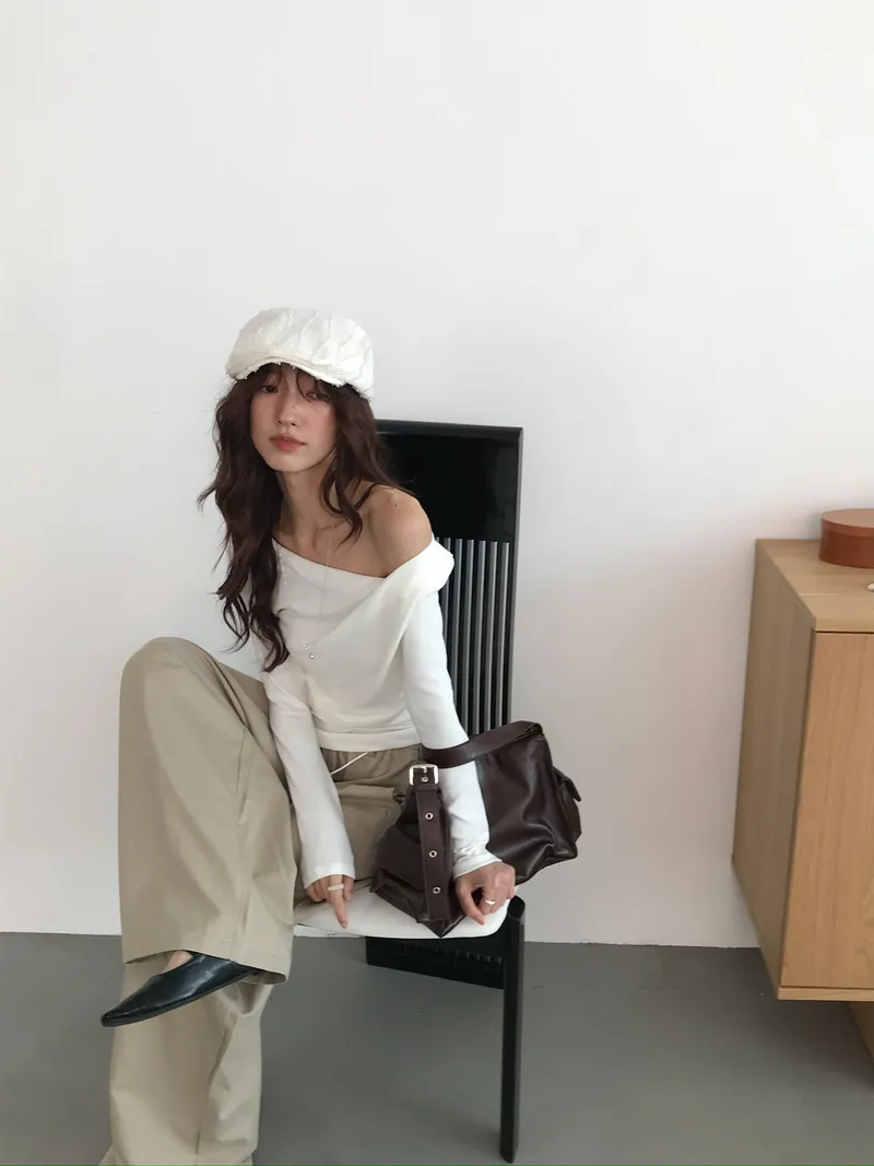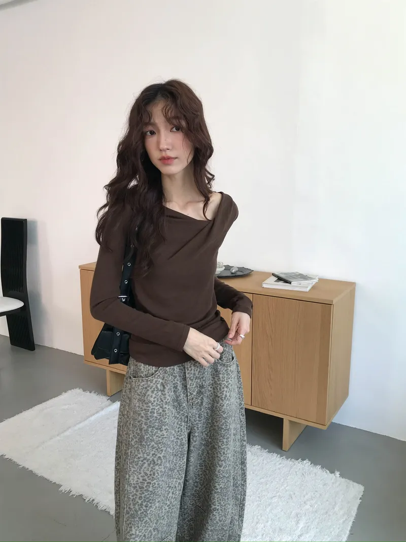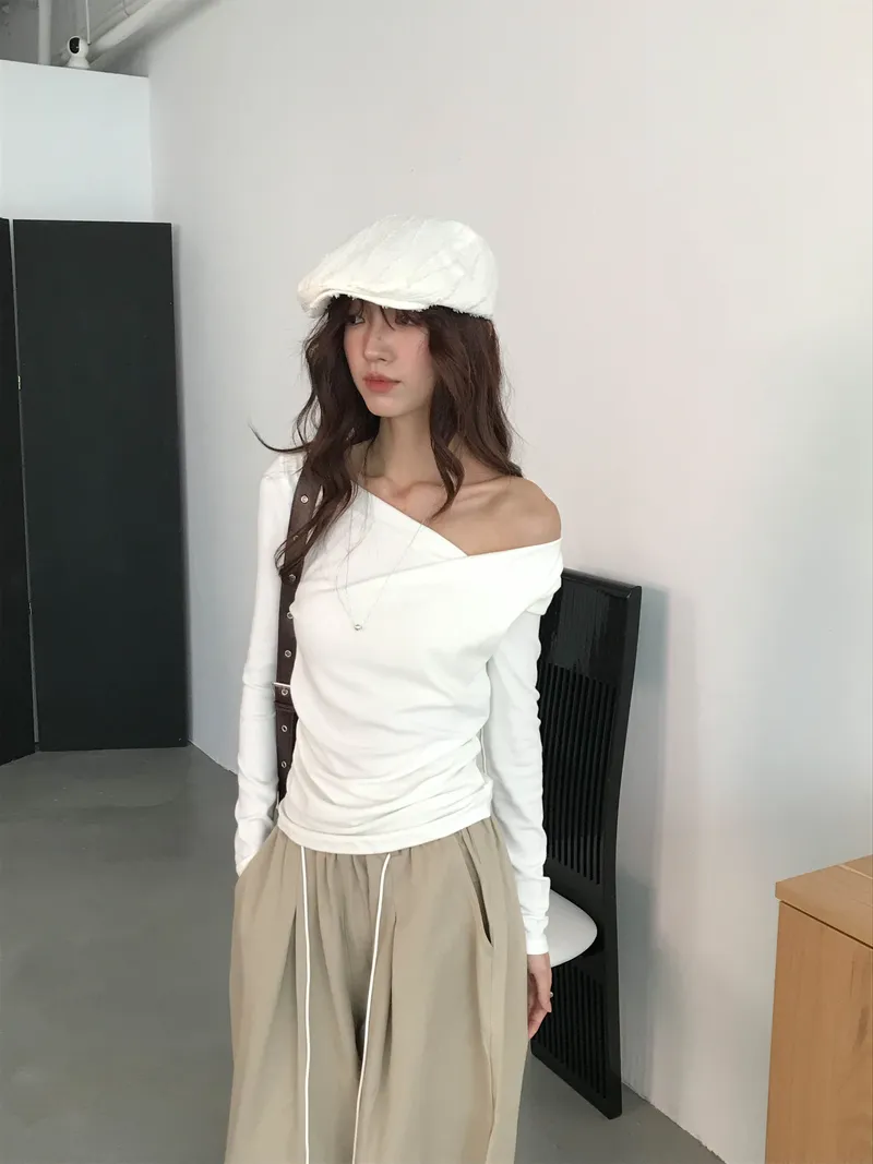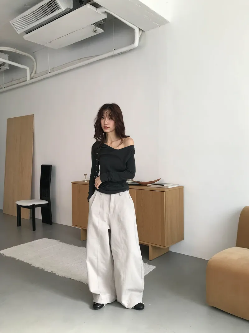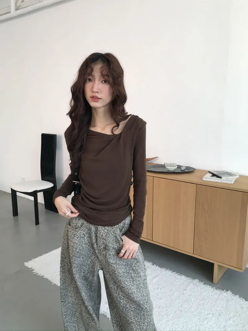 小露鎖骨自然向下帶出垂墜蕩領