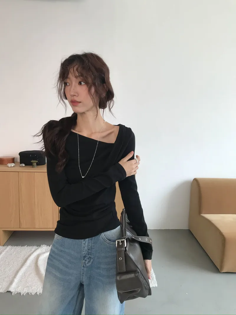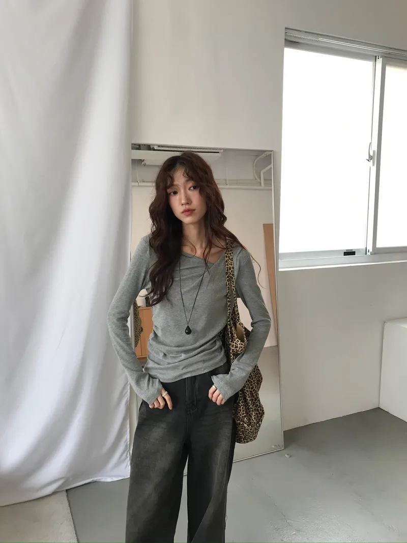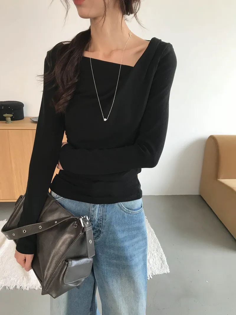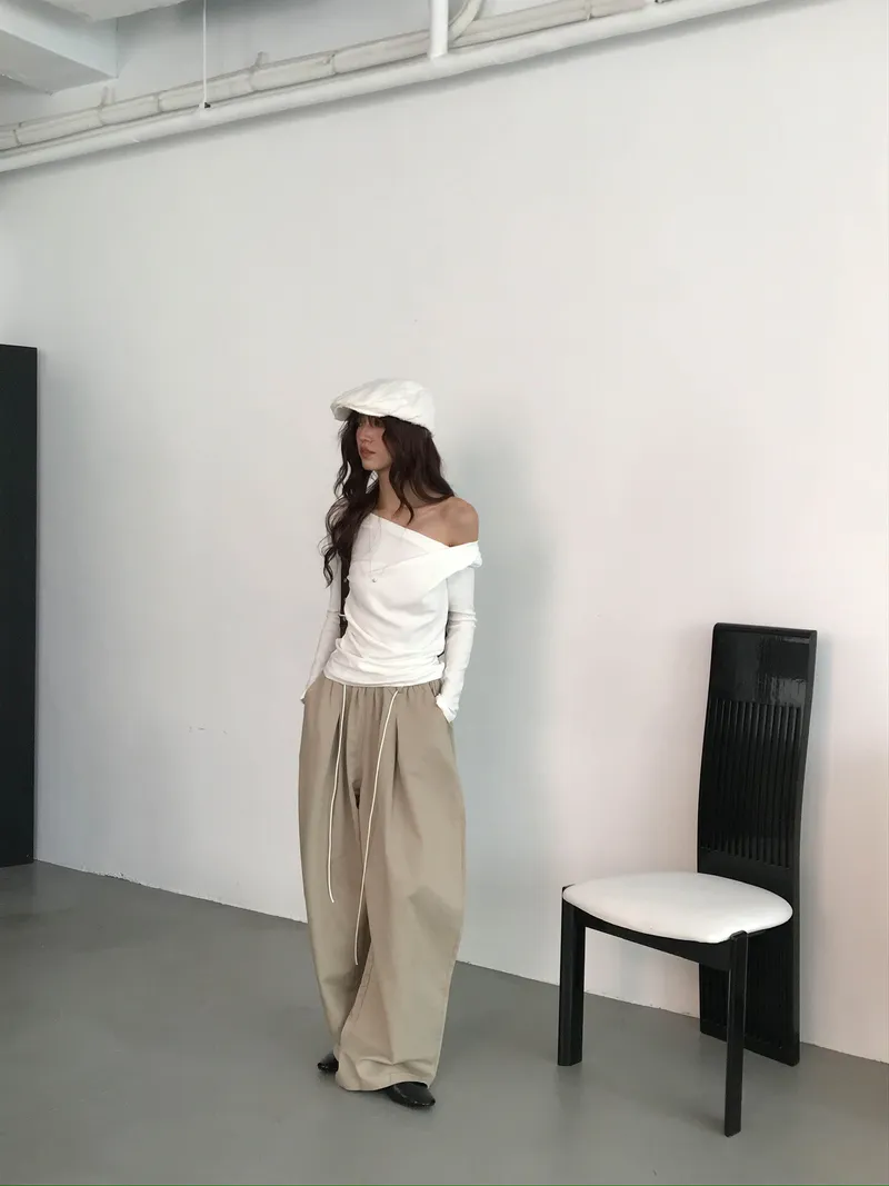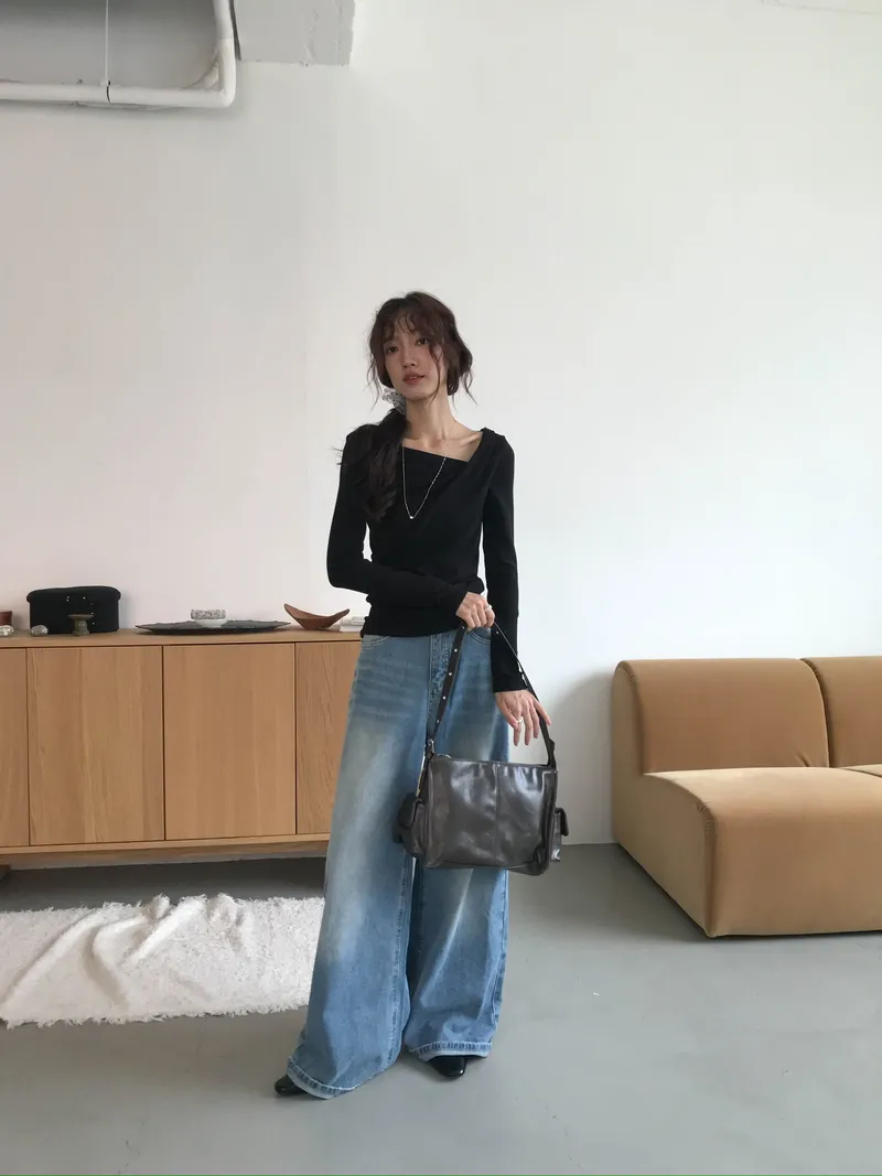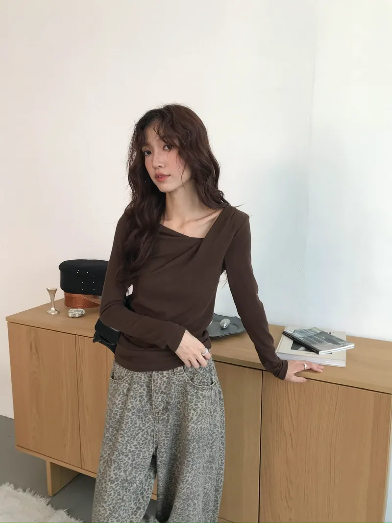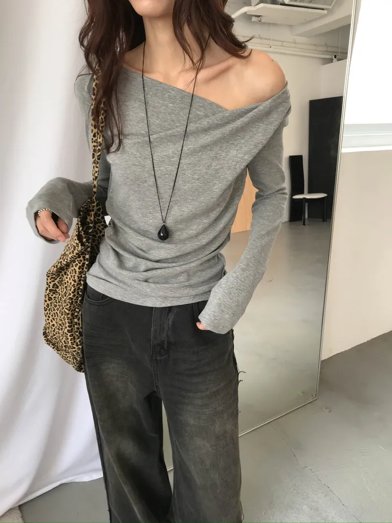 小露鎖骨自然向下帶出垂墜蕩領