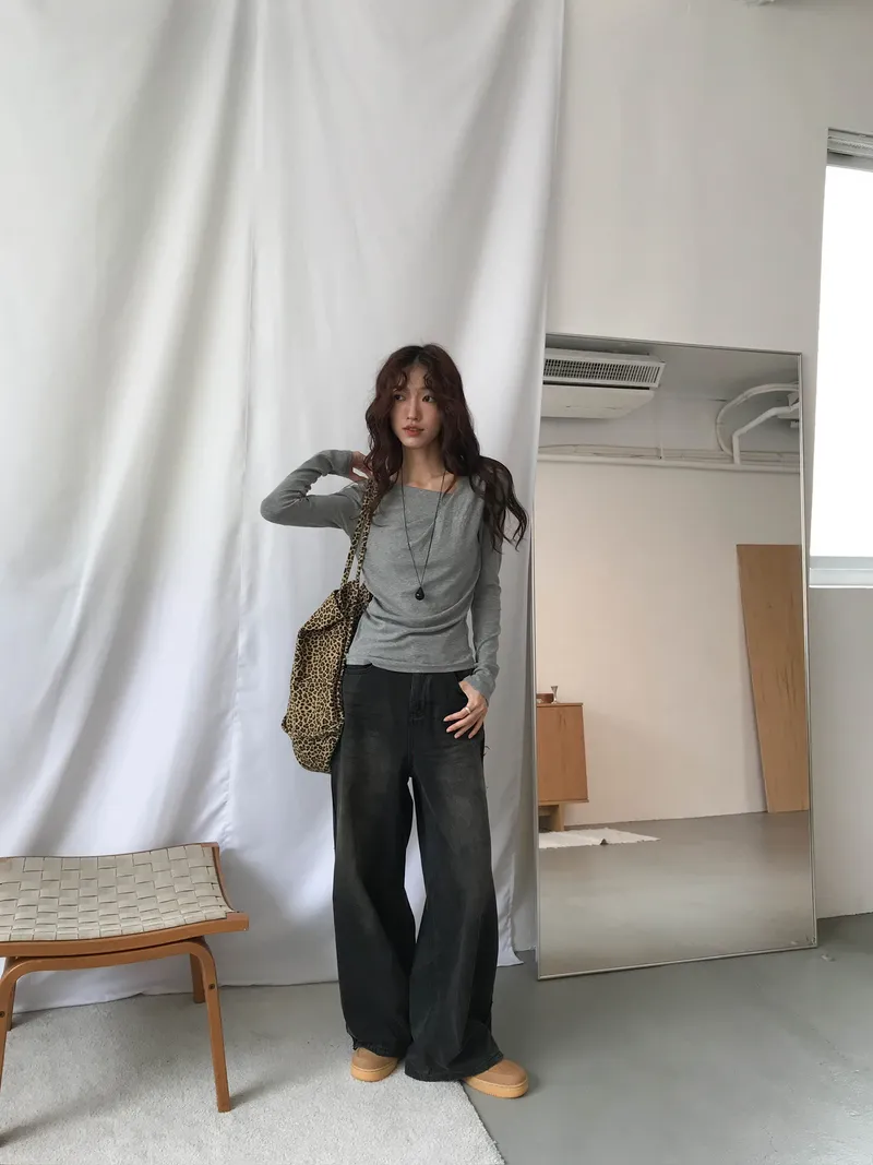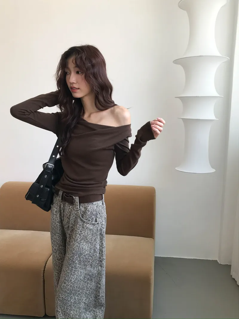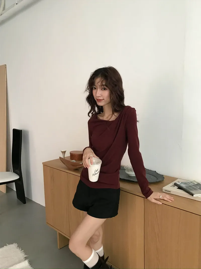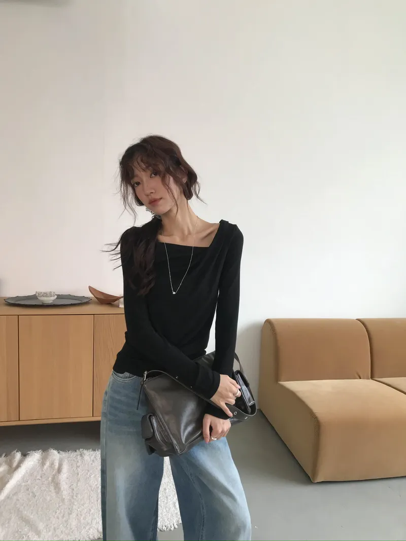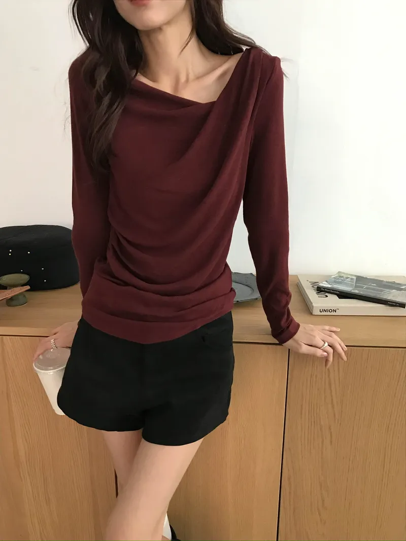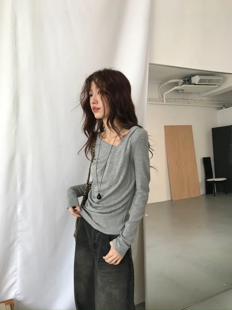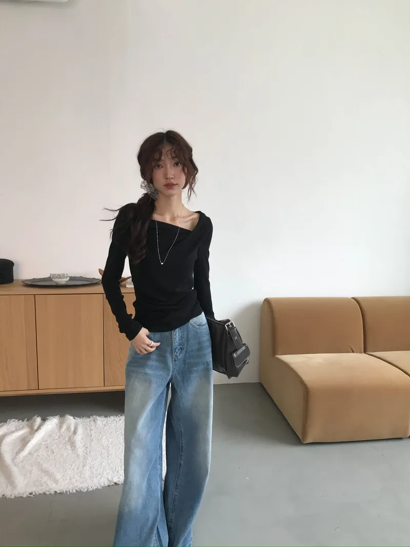 小露鎖骨自然向下帶出垂墜蕩領