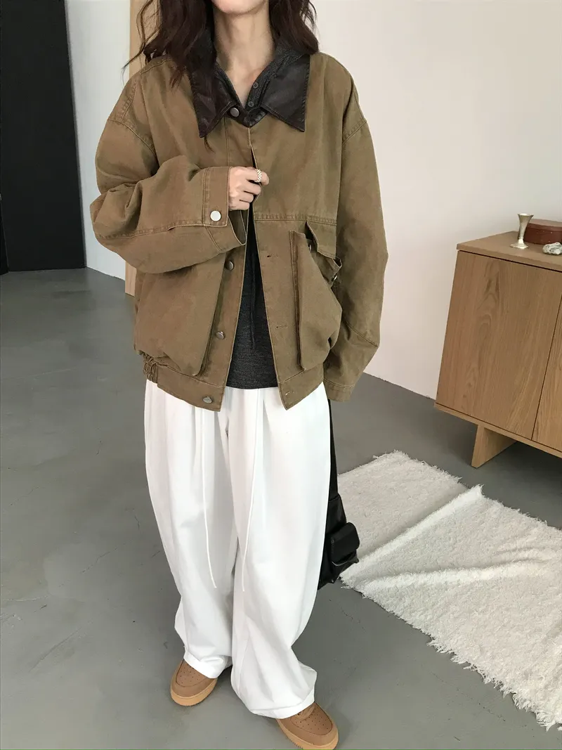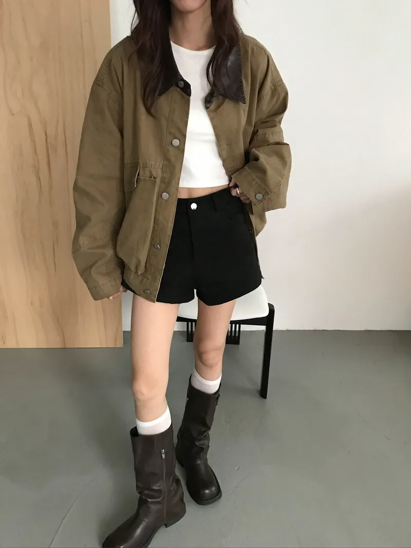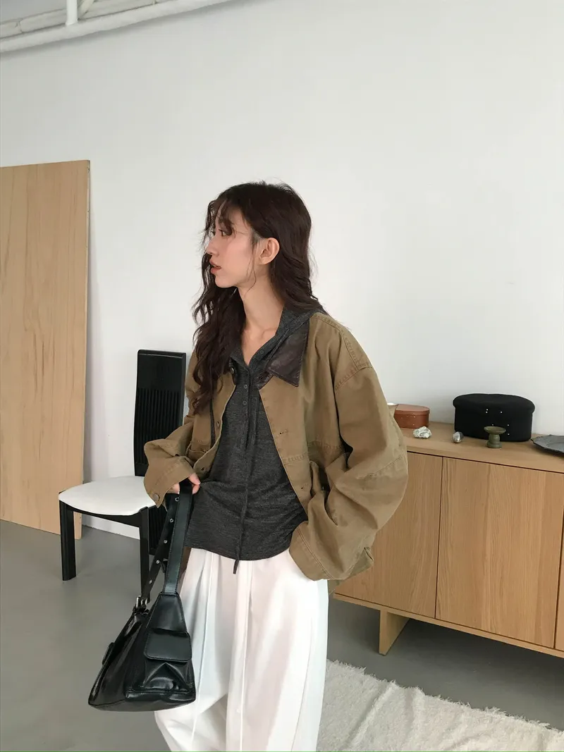 使用皮革拼接領口 整體質感立刻升級✊🏻