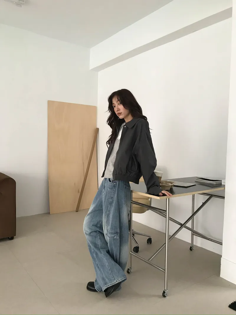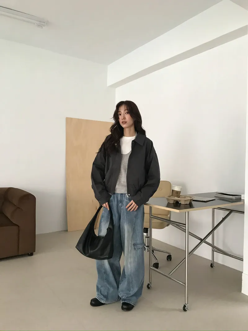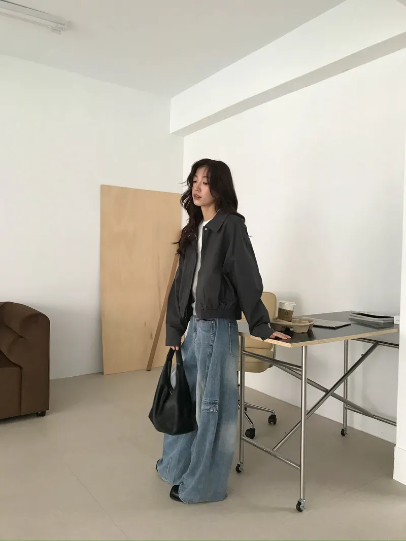 使用銀色拉鍊X同色壓釦 再加上鬆緊下襬