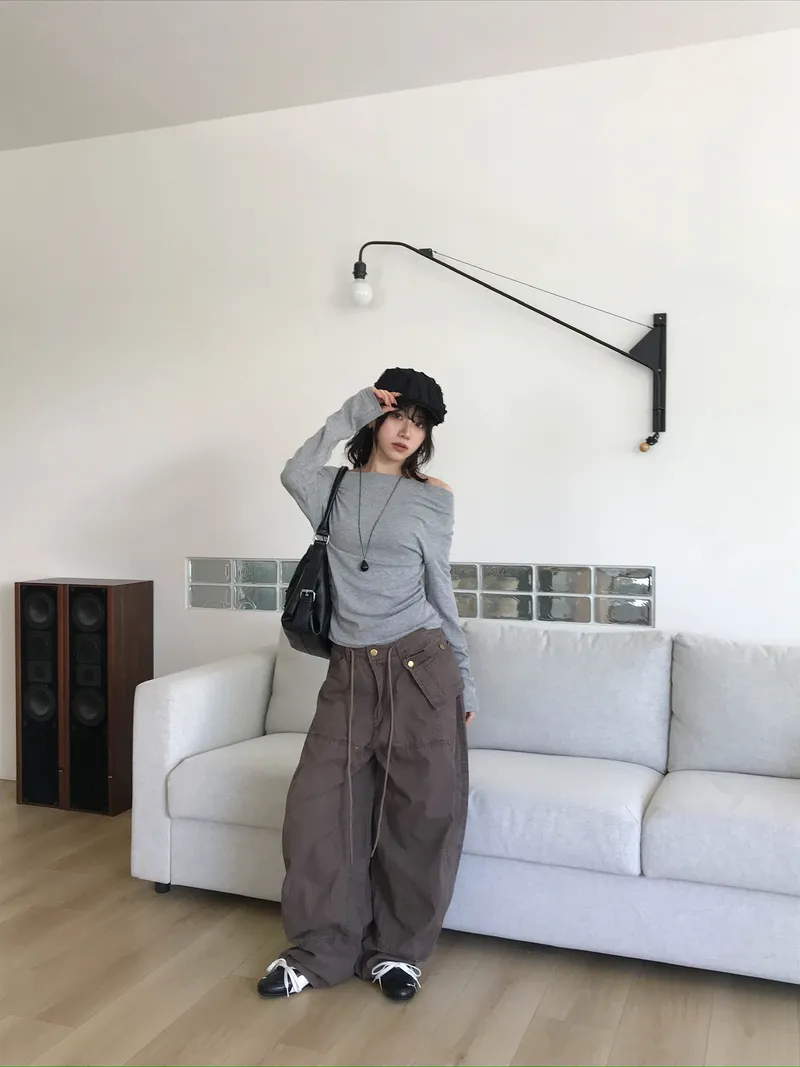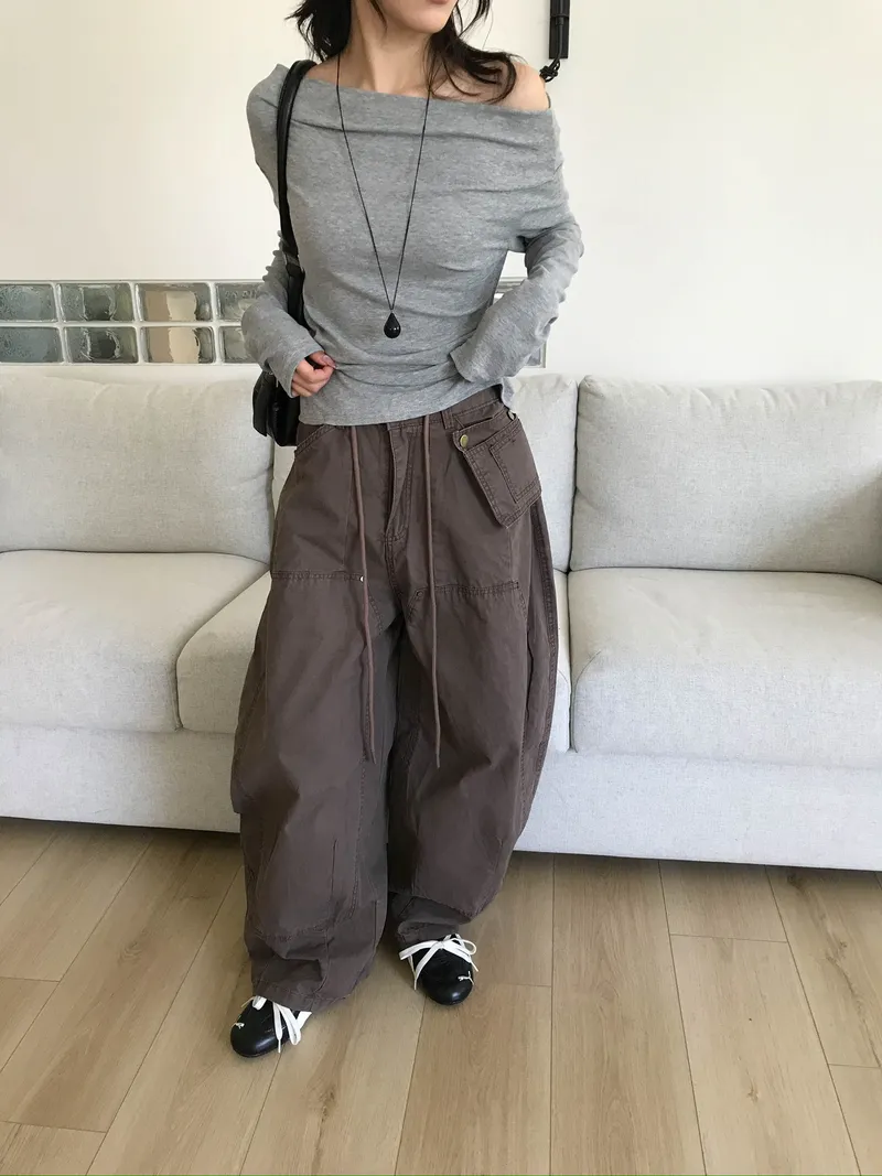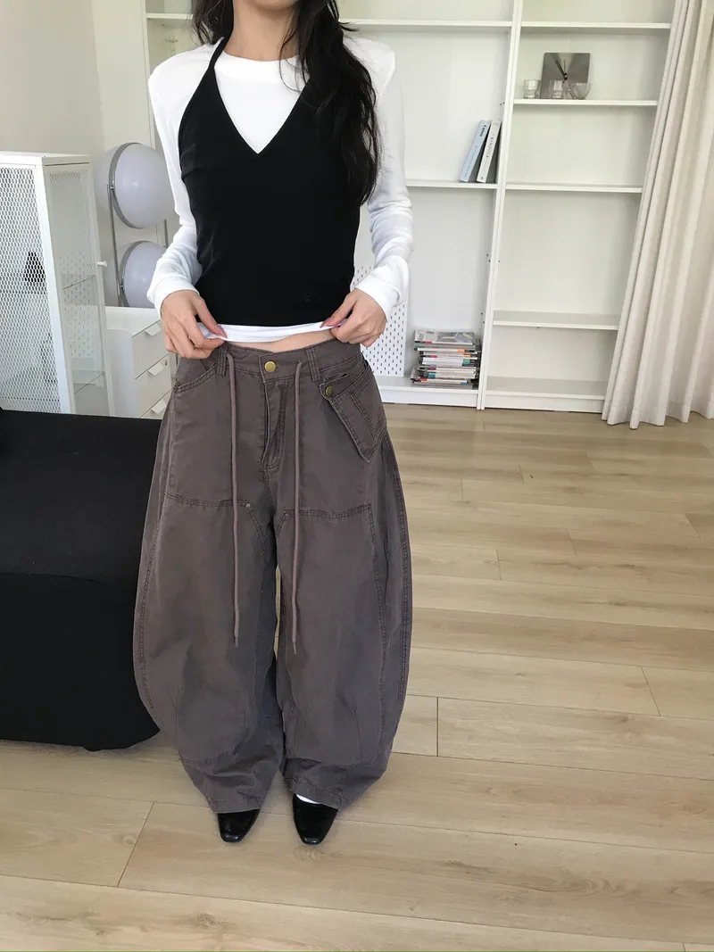 時髦率性氛圍滿點的附腰包抽繩褲✨