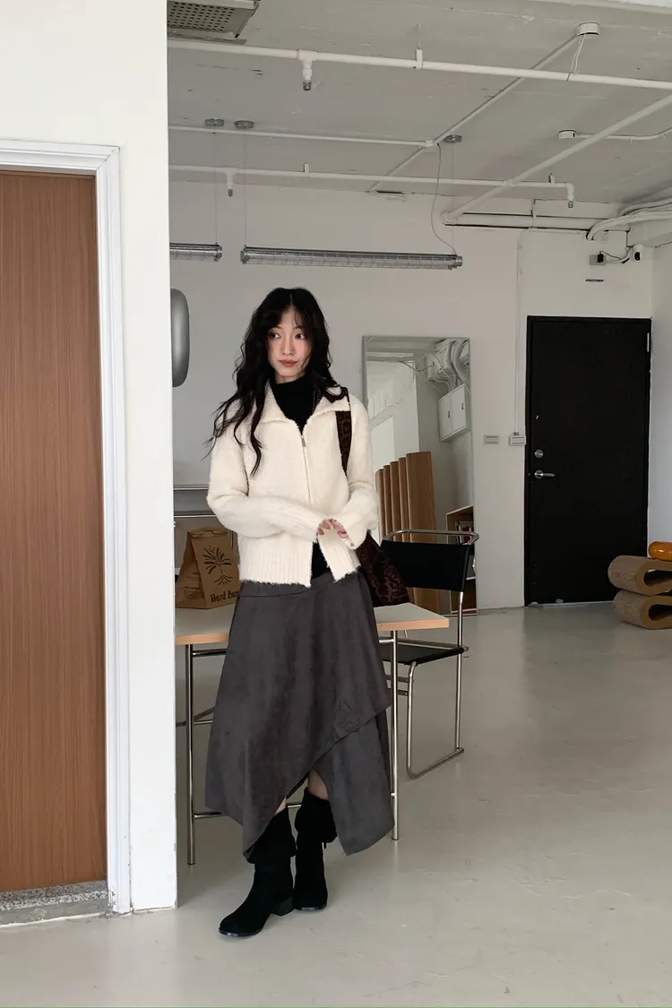 巧妙融合柔美與率性的麂皮長裙☕️