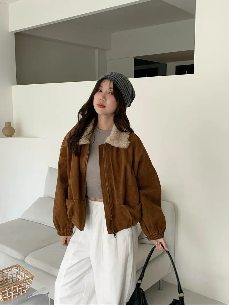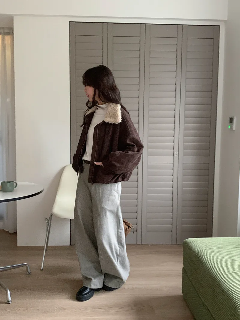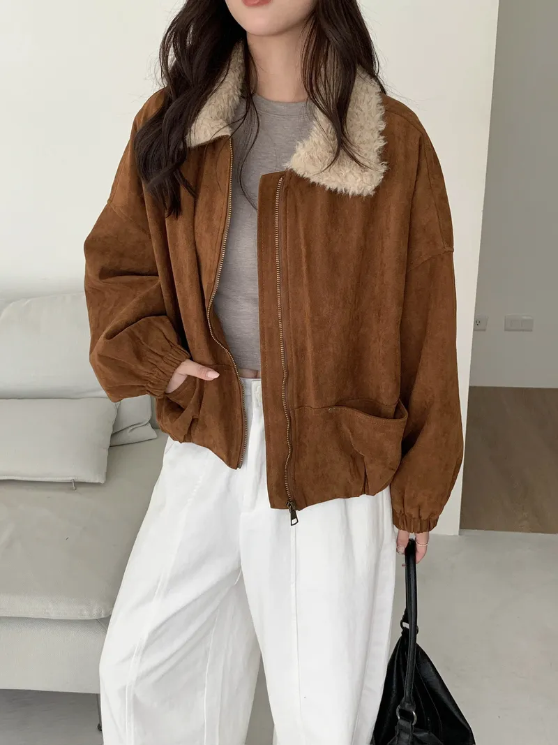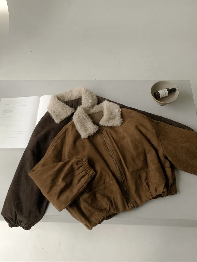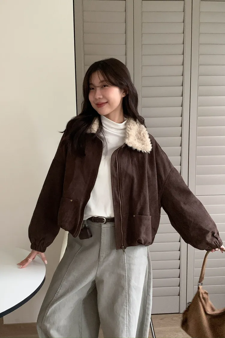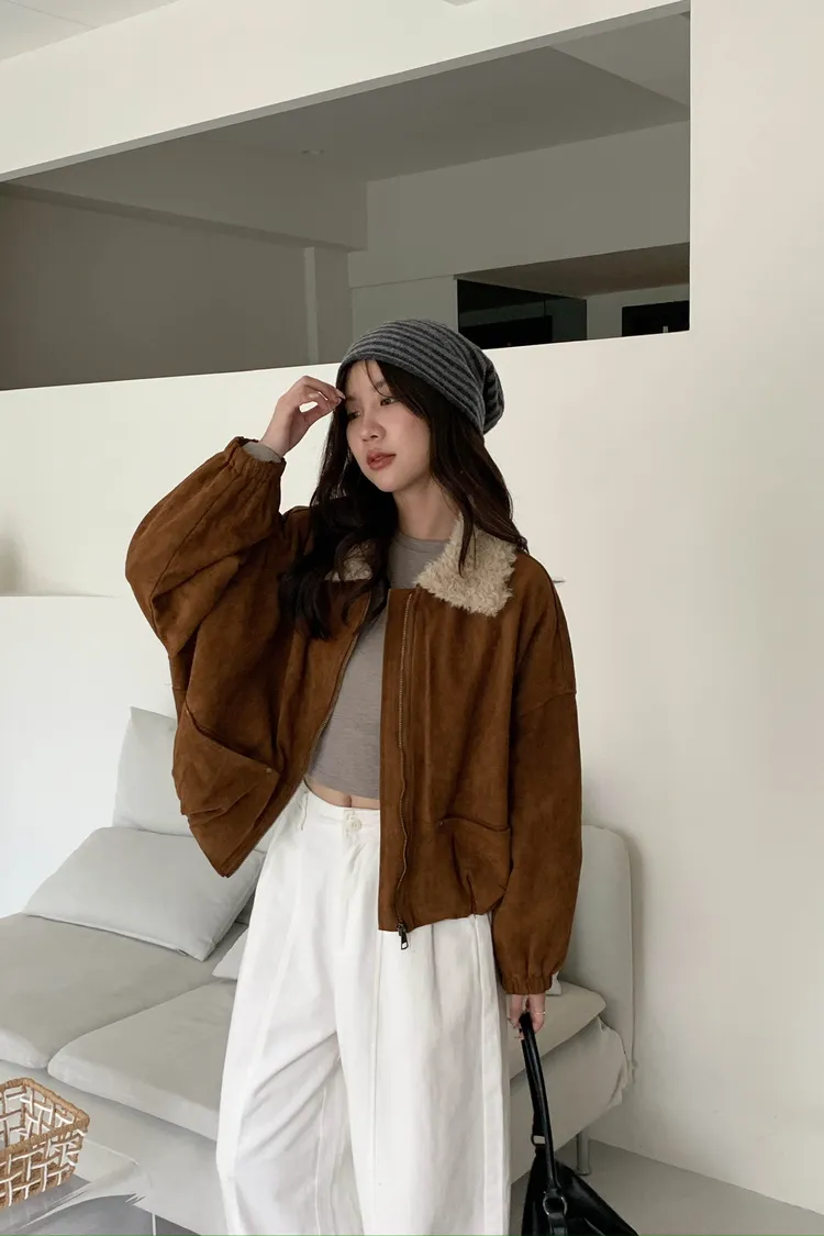 絨毛拼接領很可愛 搭配復古五金拉鍊