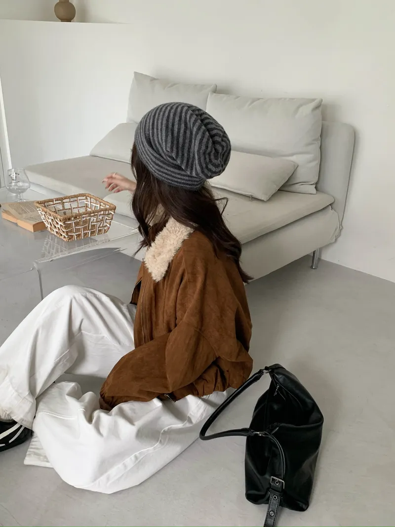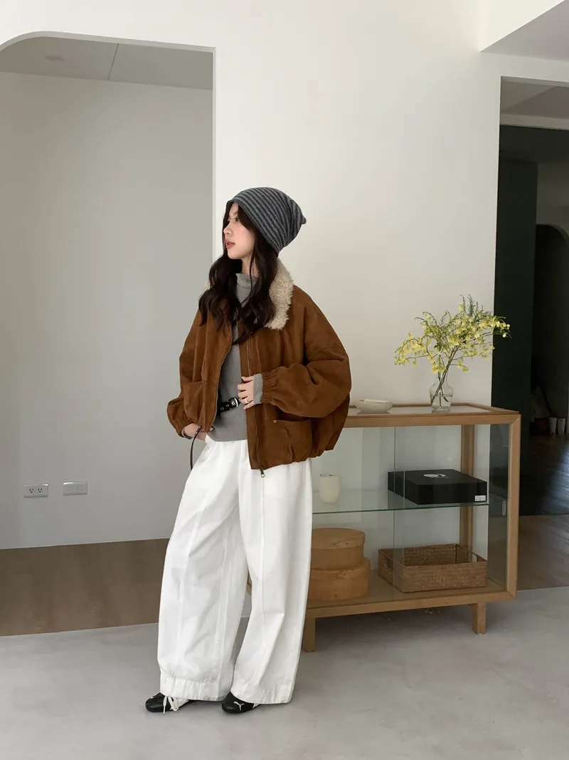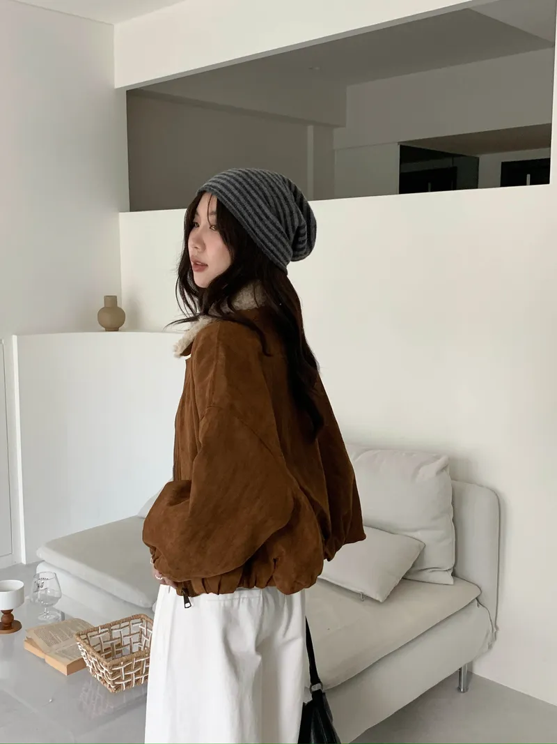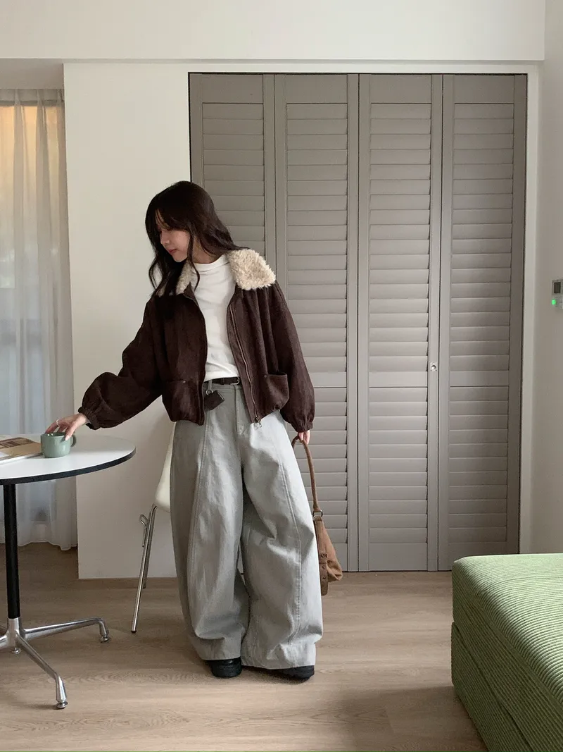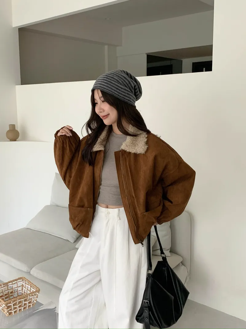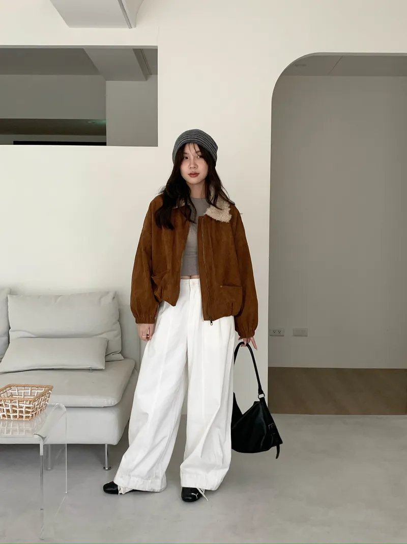 絨毛拼接領很可愛 搭配復古五金拉鍊