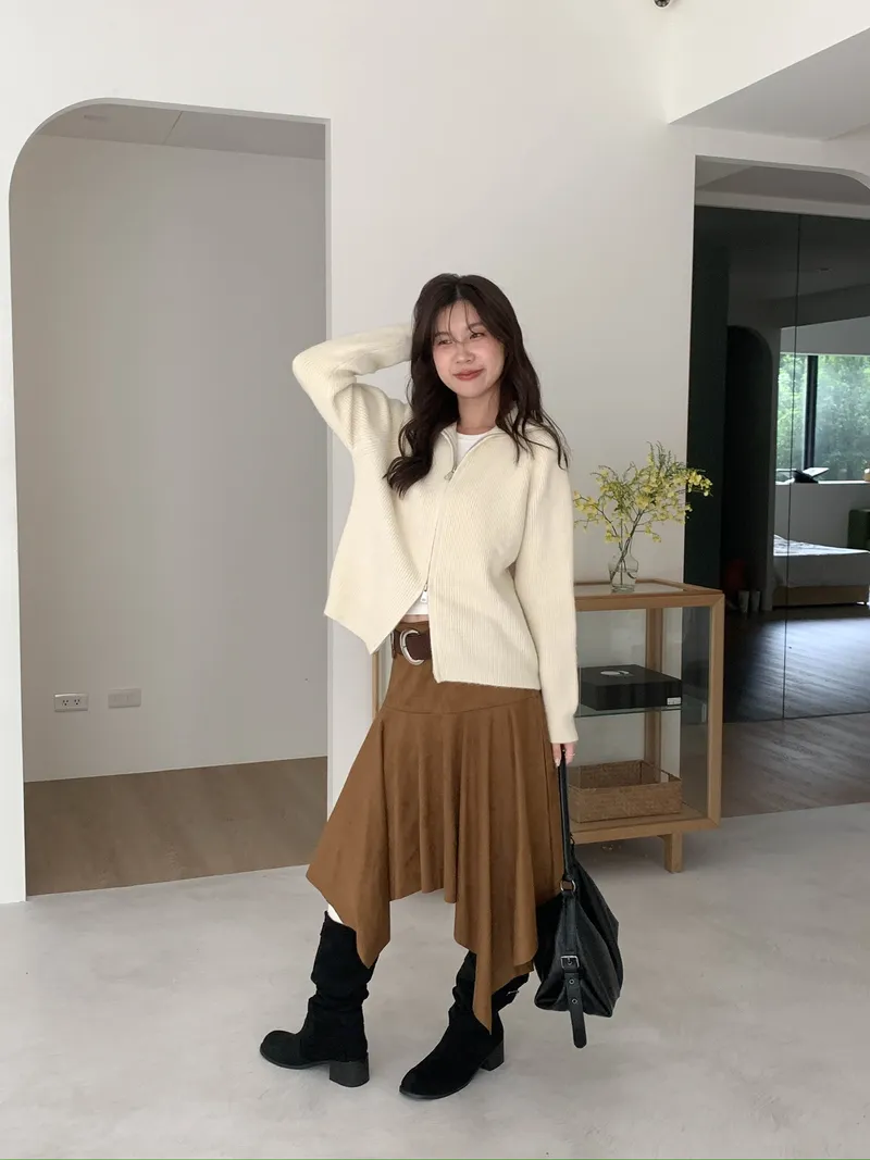 搭配靴子或針織都能展現質感氛圍穿搭!