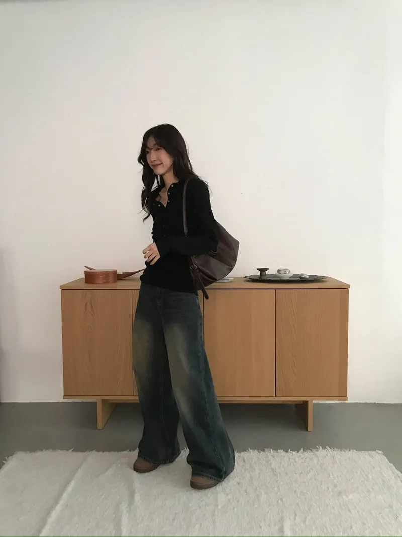 此款著S,腰圍合身舒適,臀以下寬鬆有空間,長度穿鞋落地
