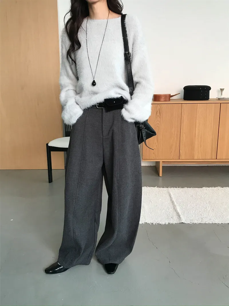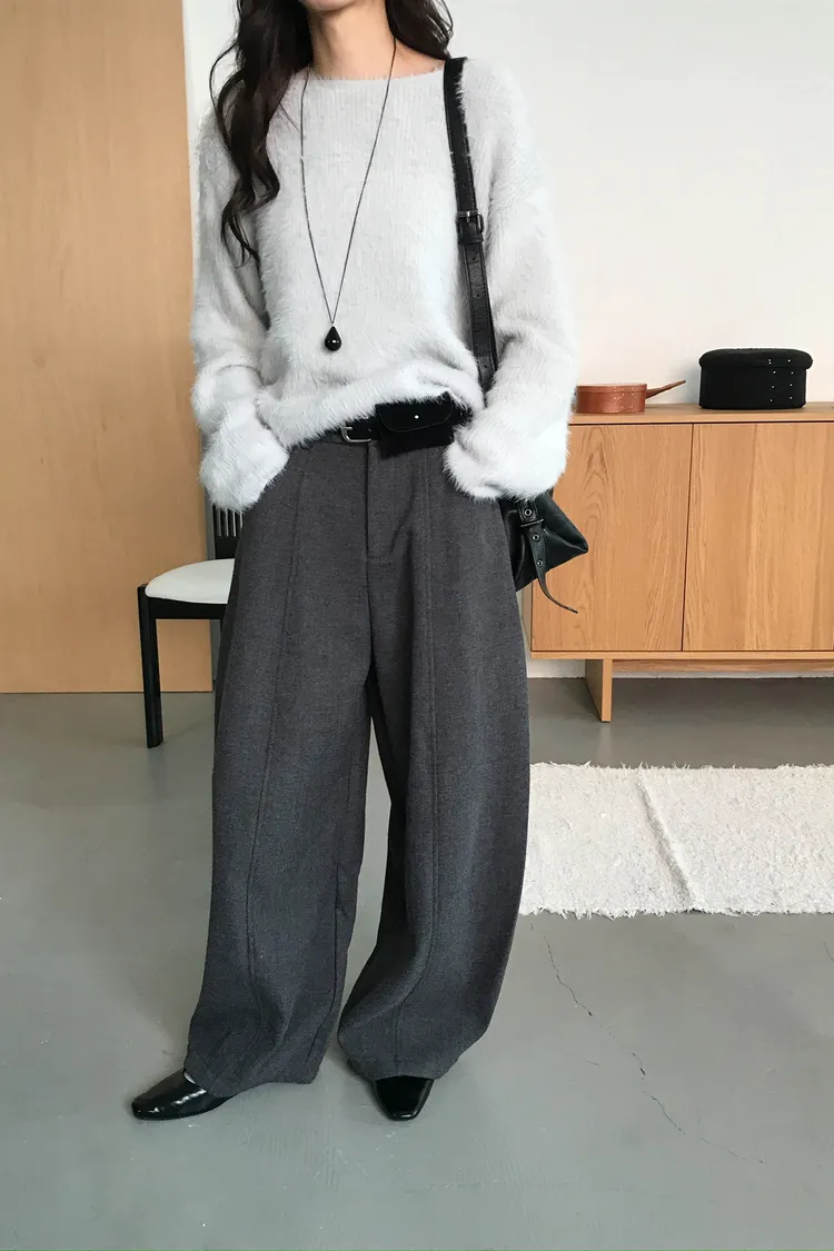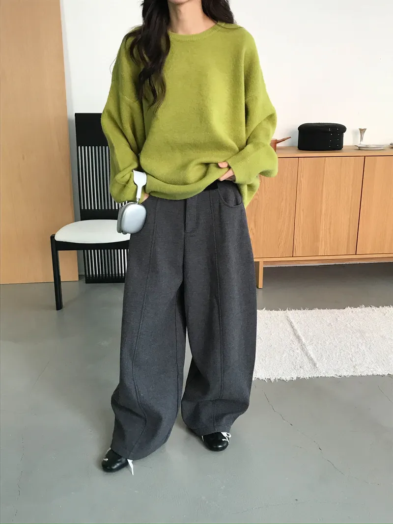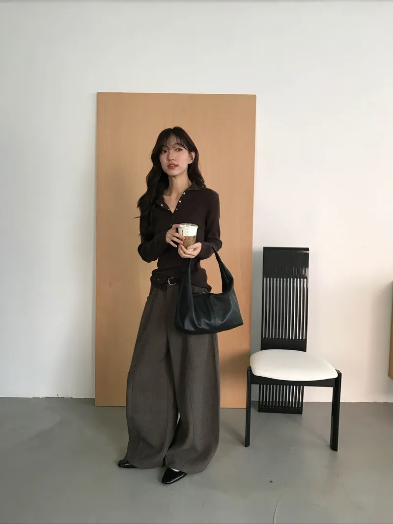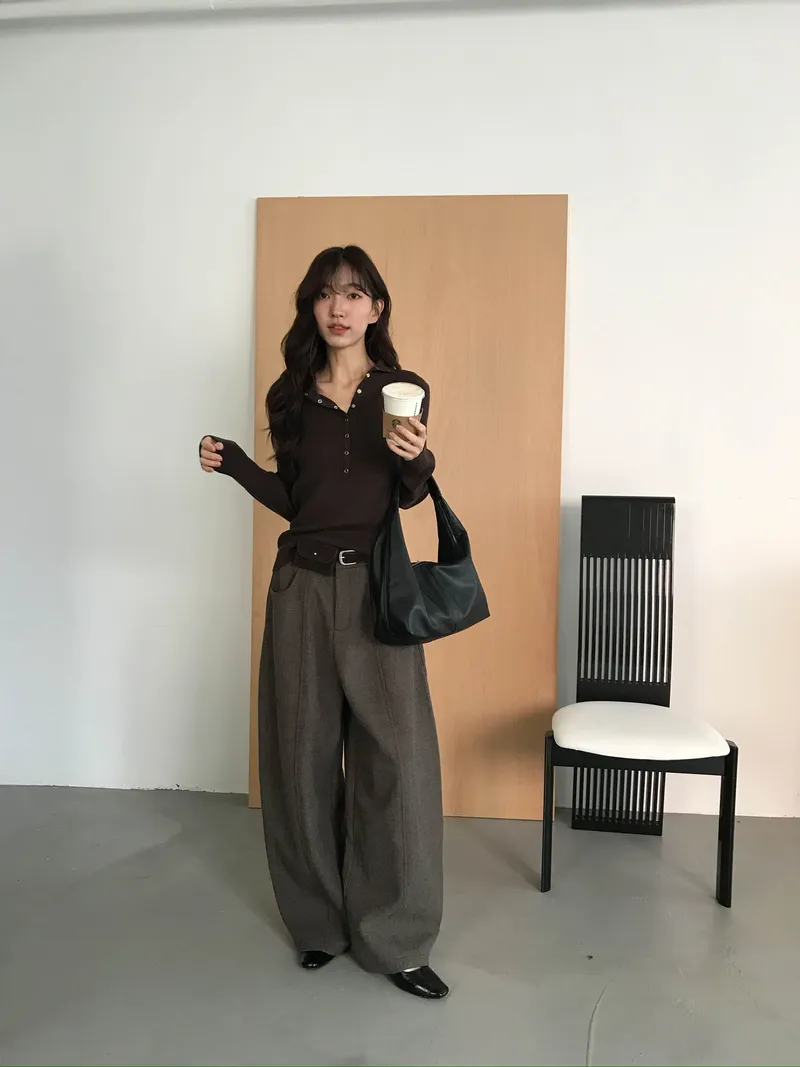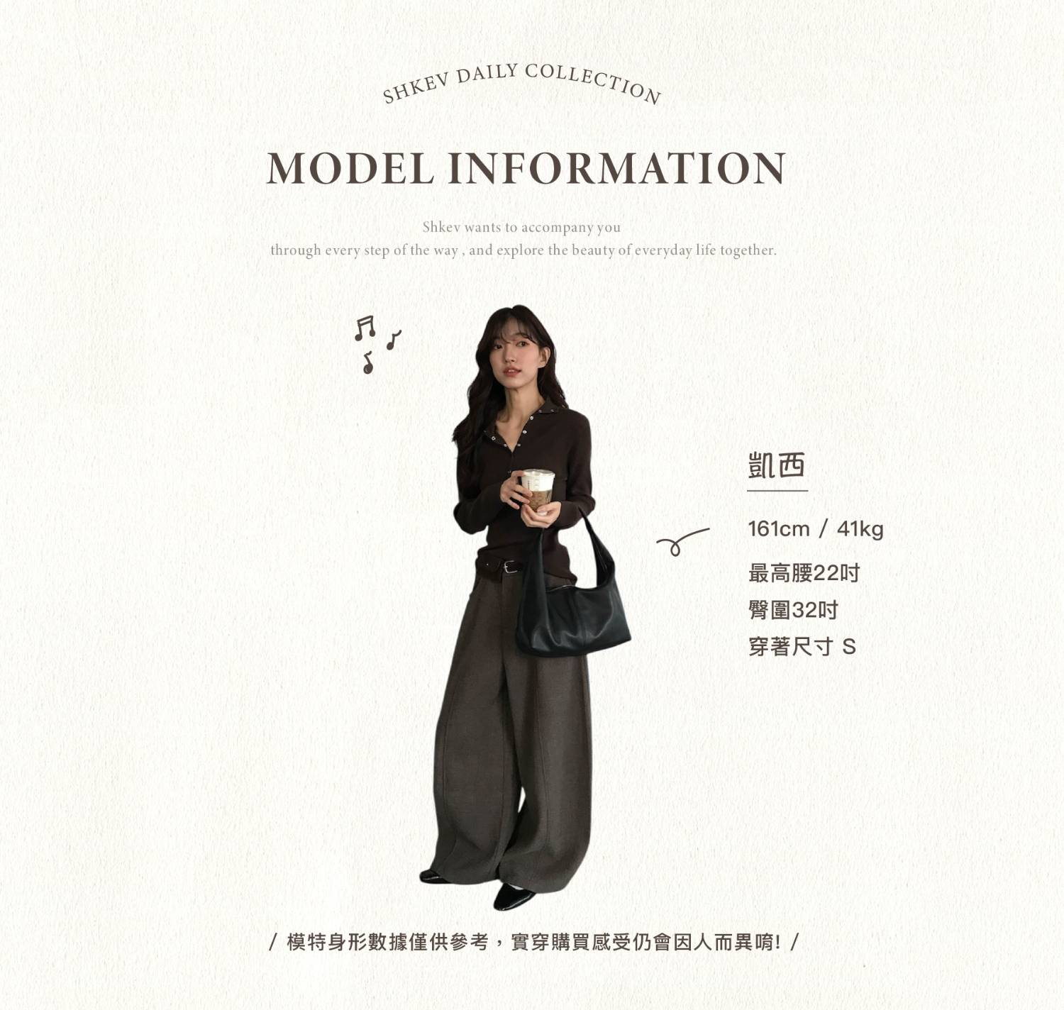 此款著S,腰圍合身舒適,臀以下寬鬆有空間,長度穿鞋切地