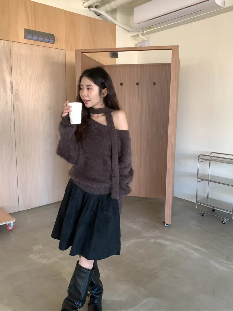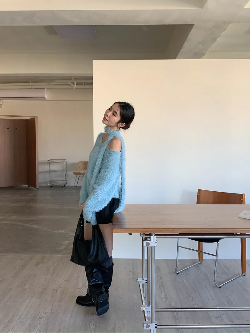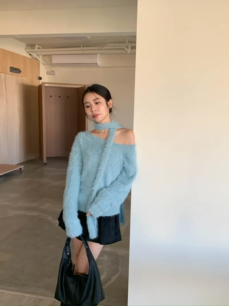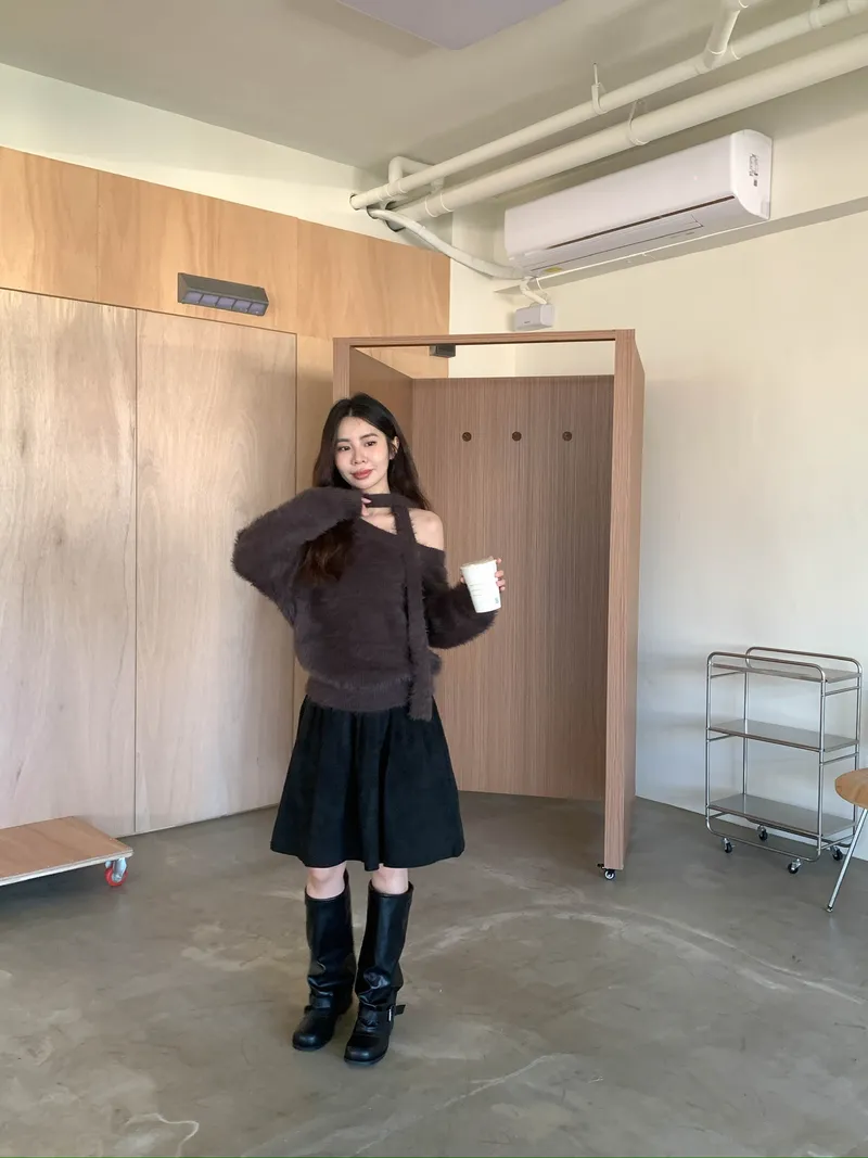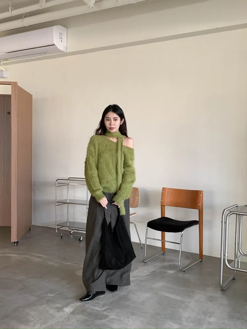 左側是無肩線剪裁 小露香肩凸顯鎖骨