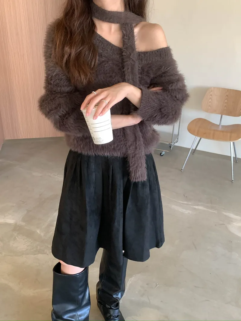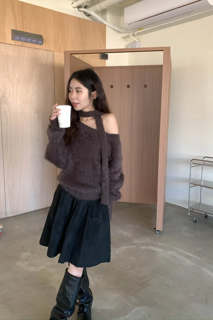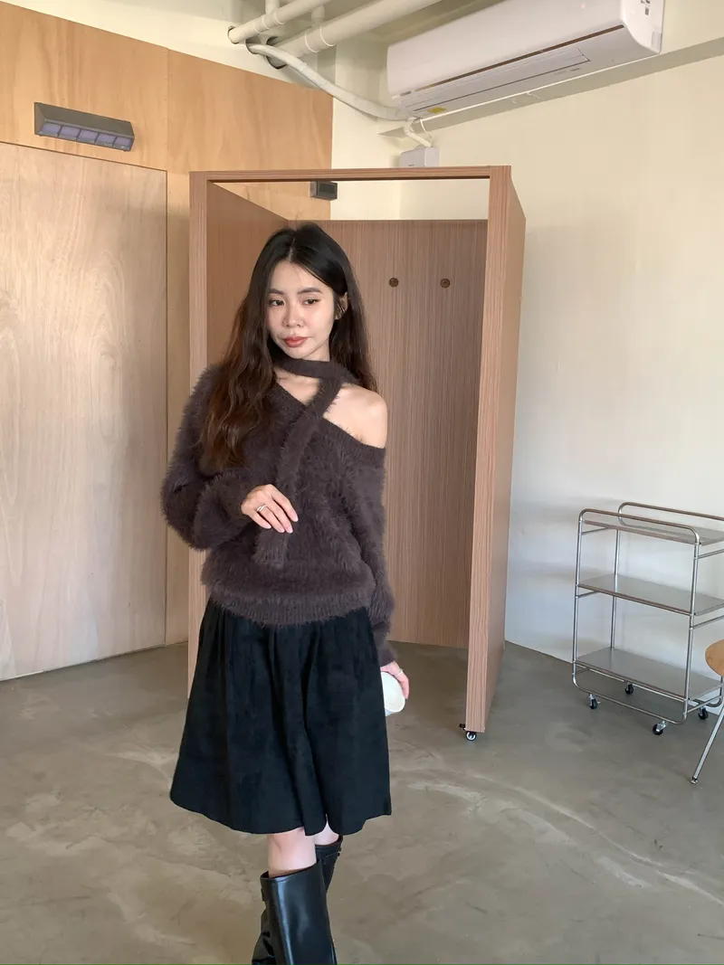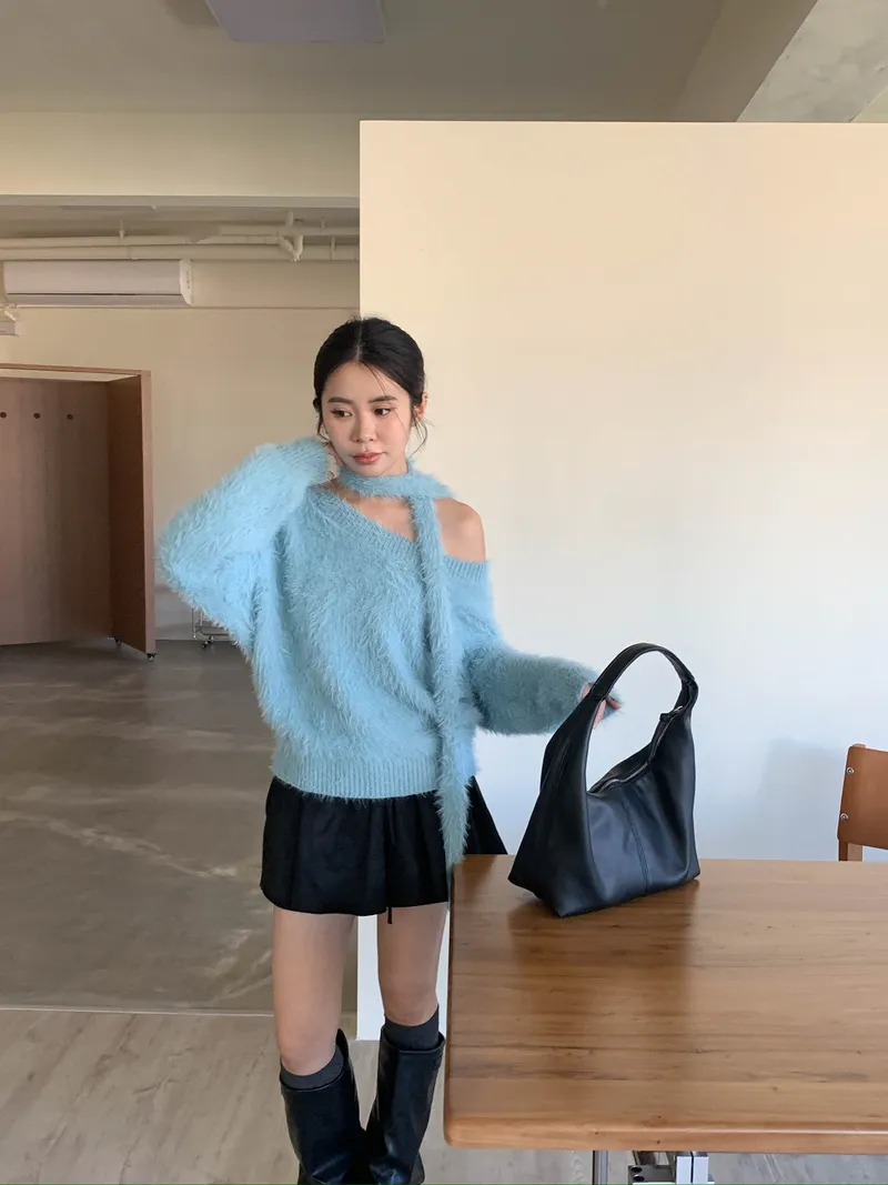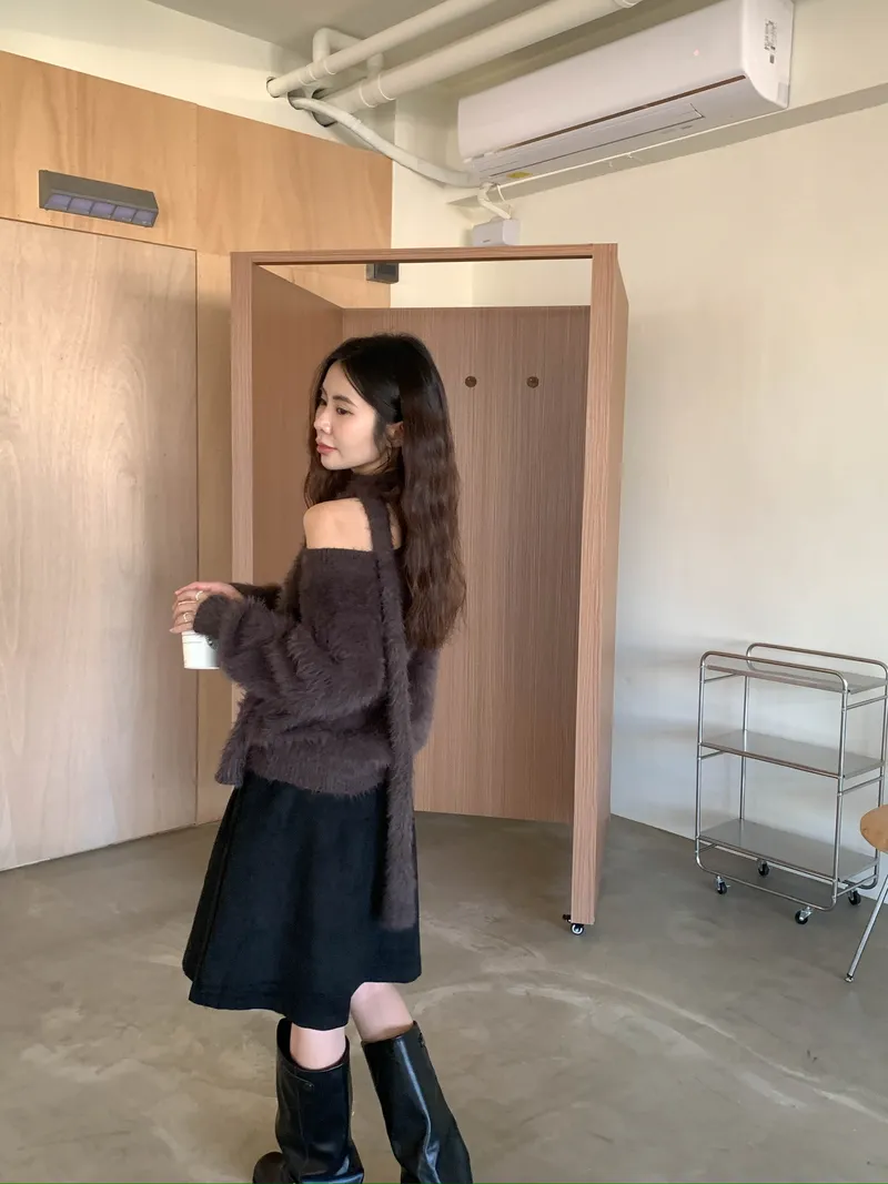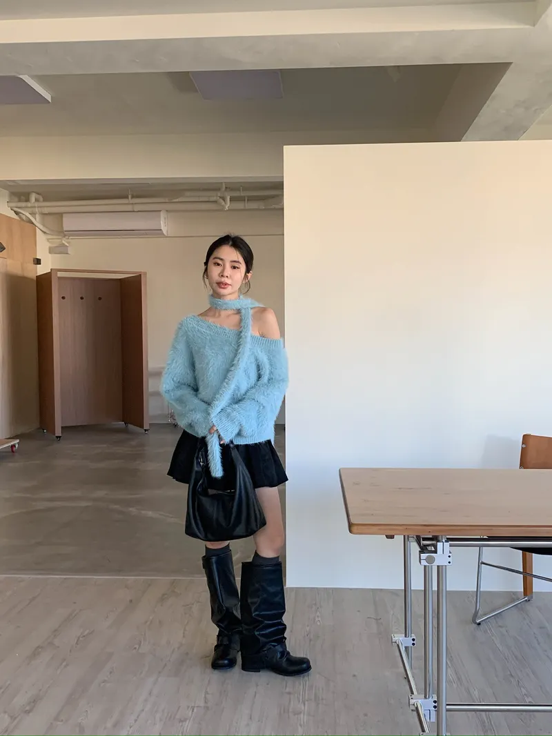 左側是無肩線剪裁 小露香肩凸顯鎖骨