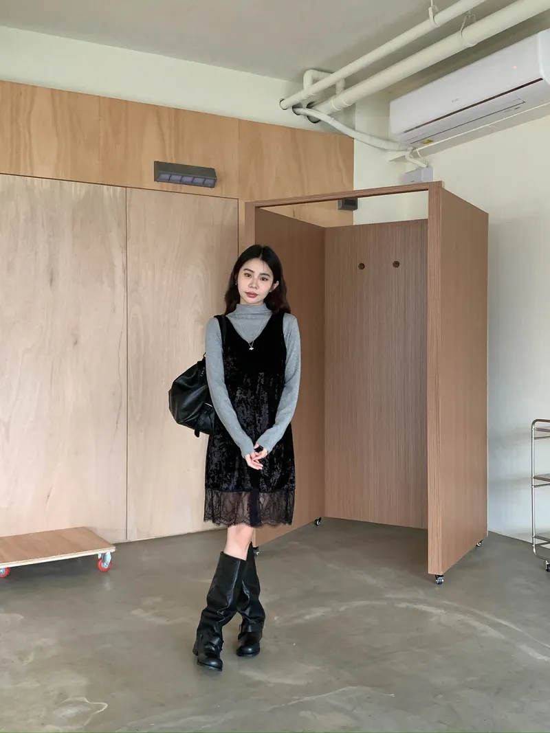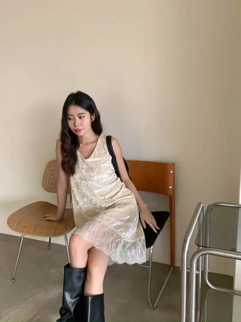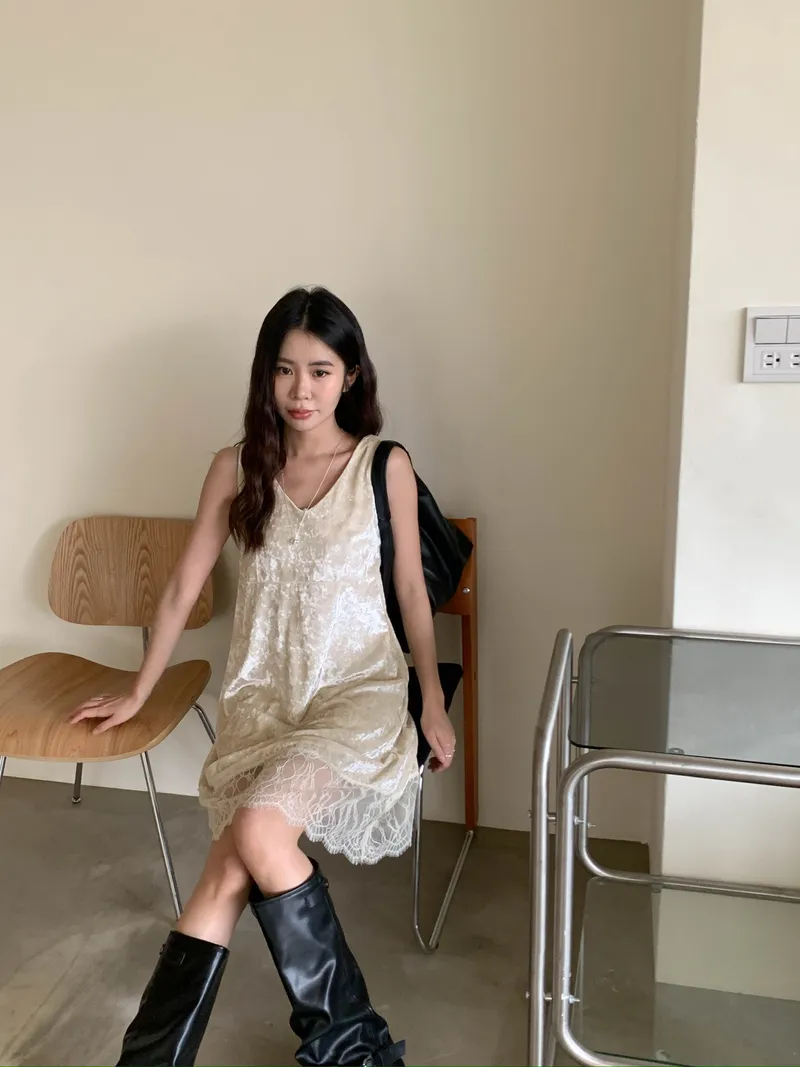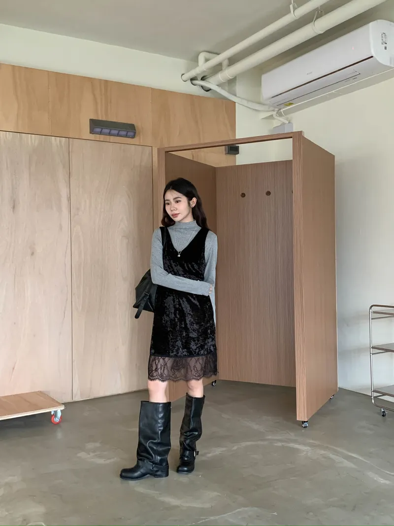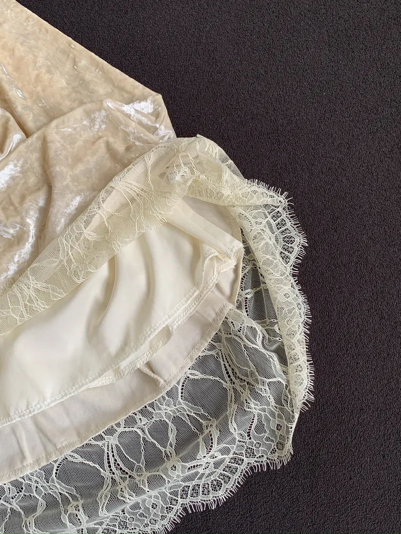 下襬拼接睫毛蕾絲 增添精緻小心機!