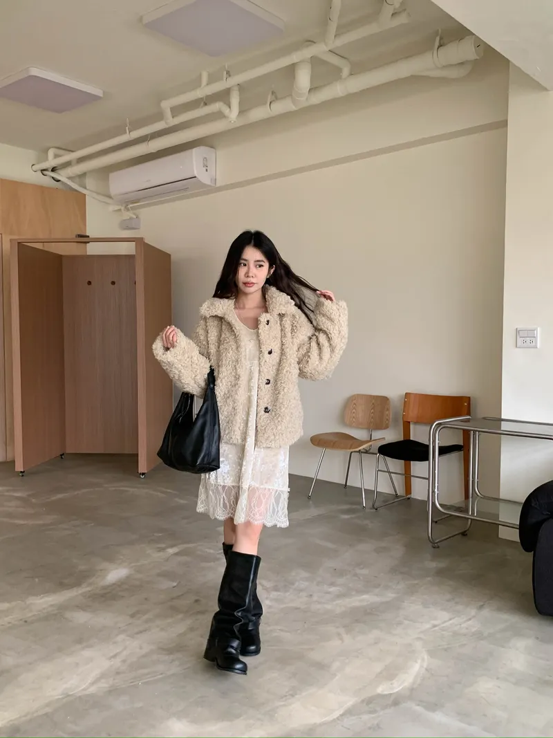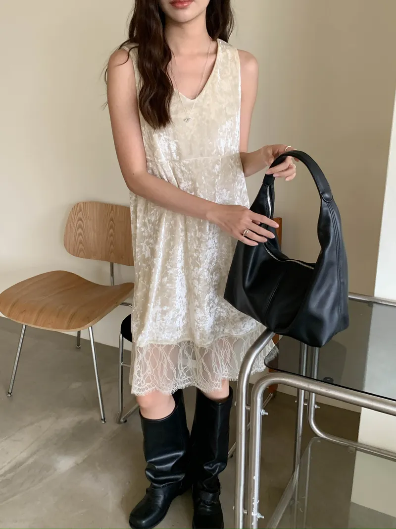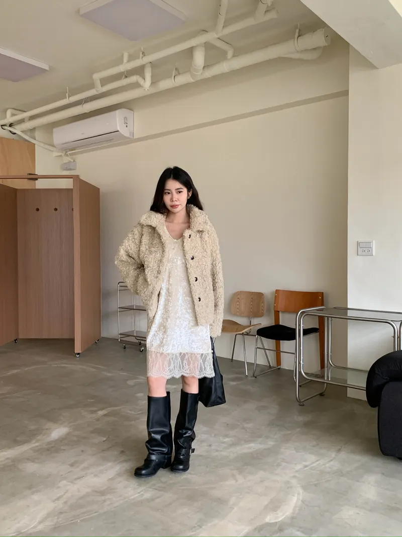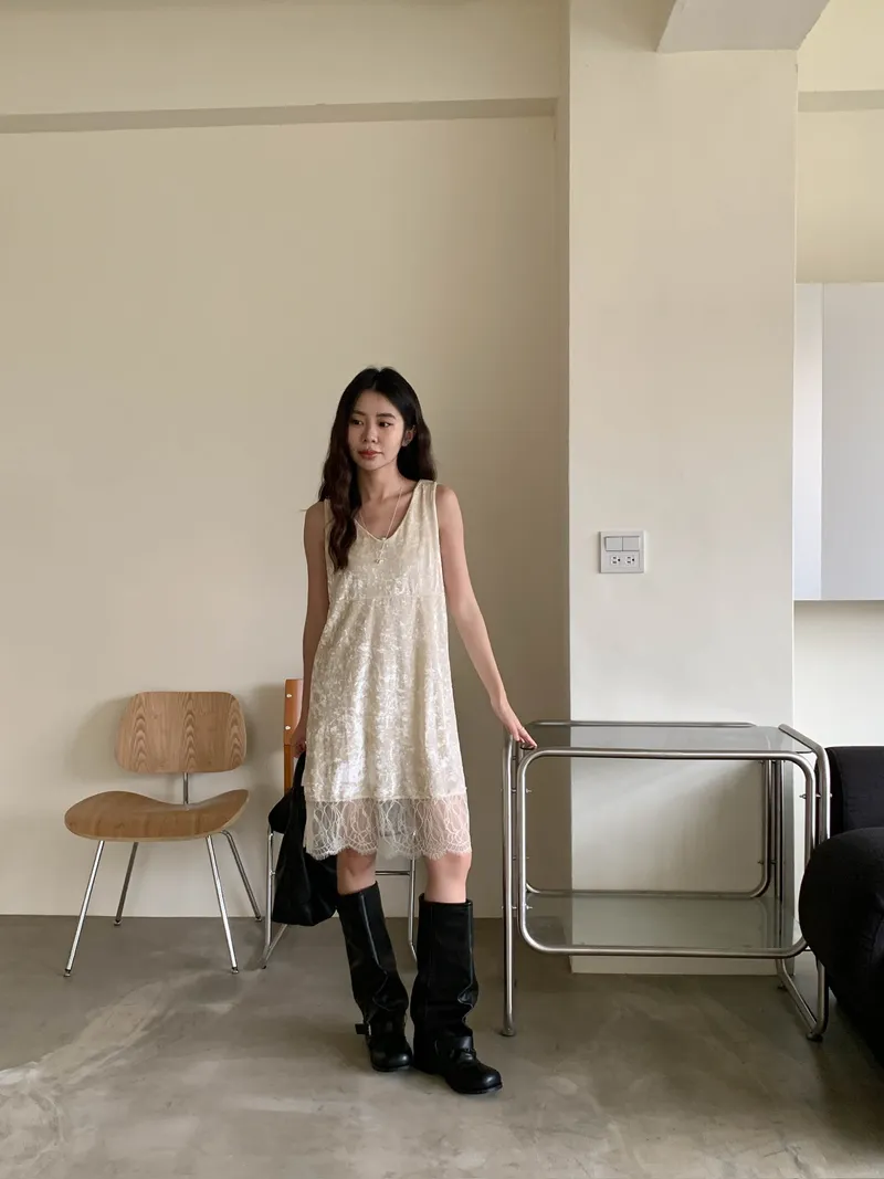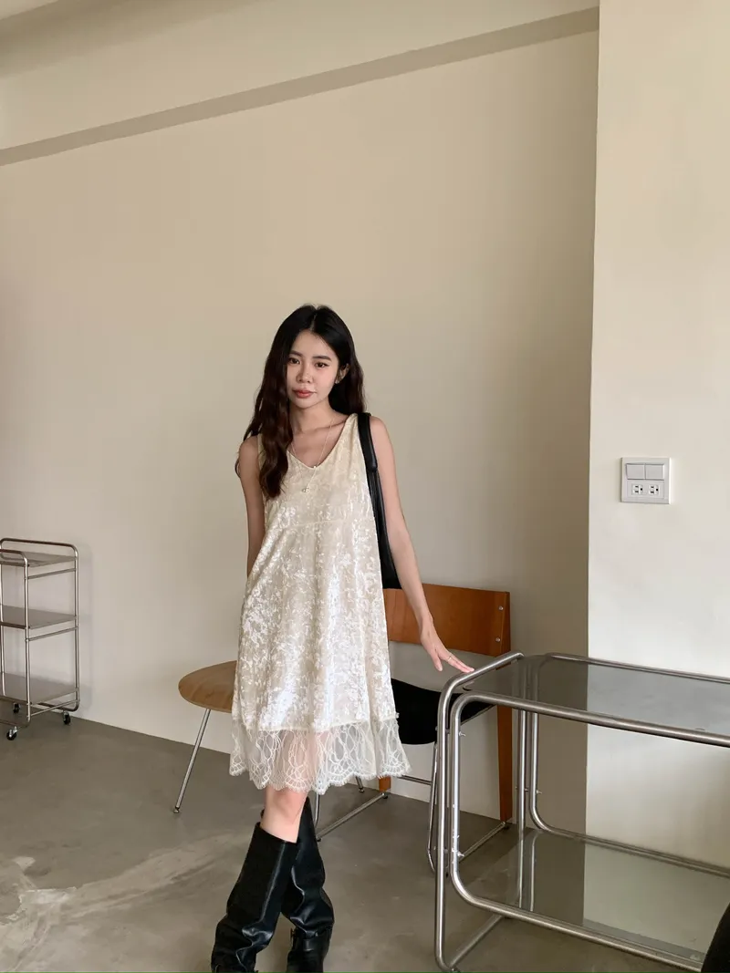 下襬拼接睫毛蕾絲 增添精緻小心機!