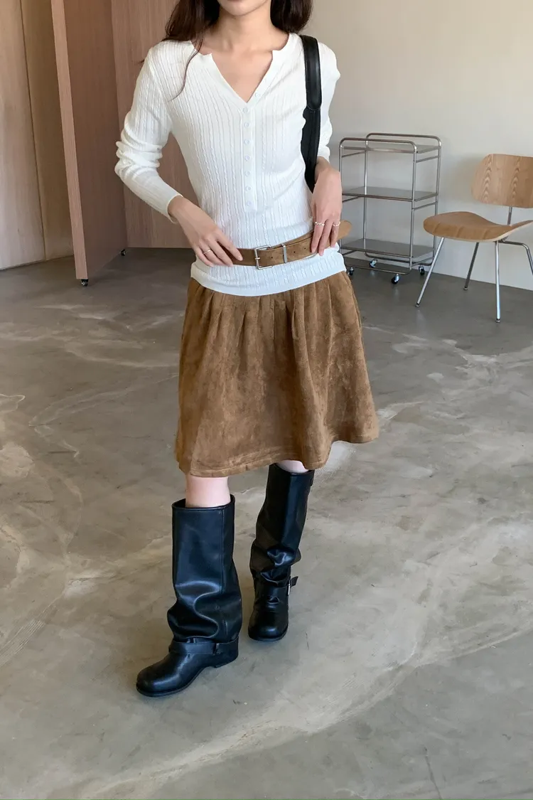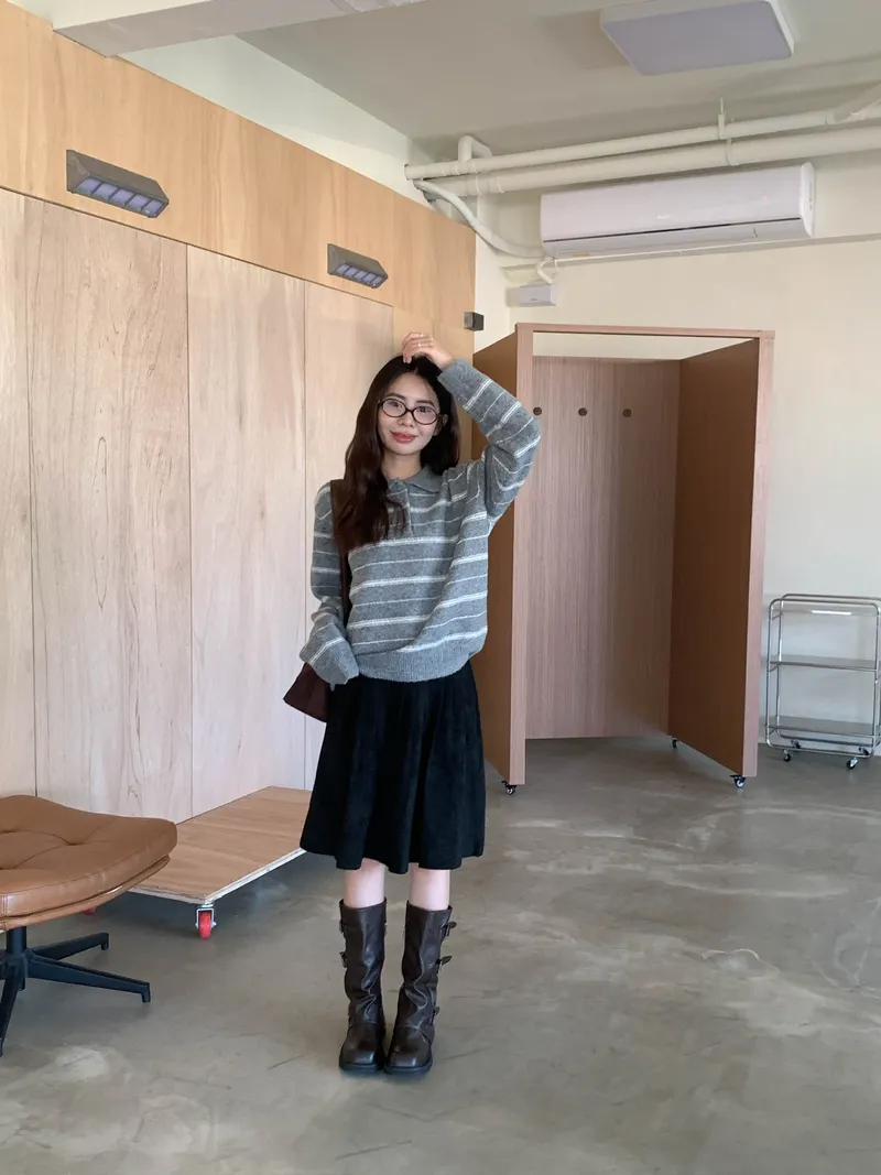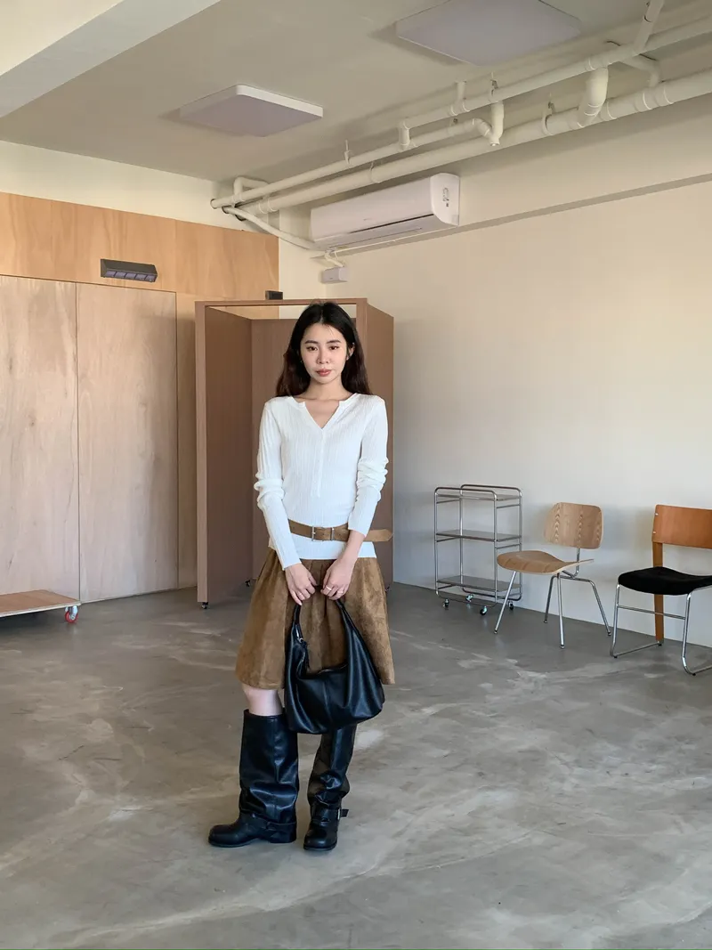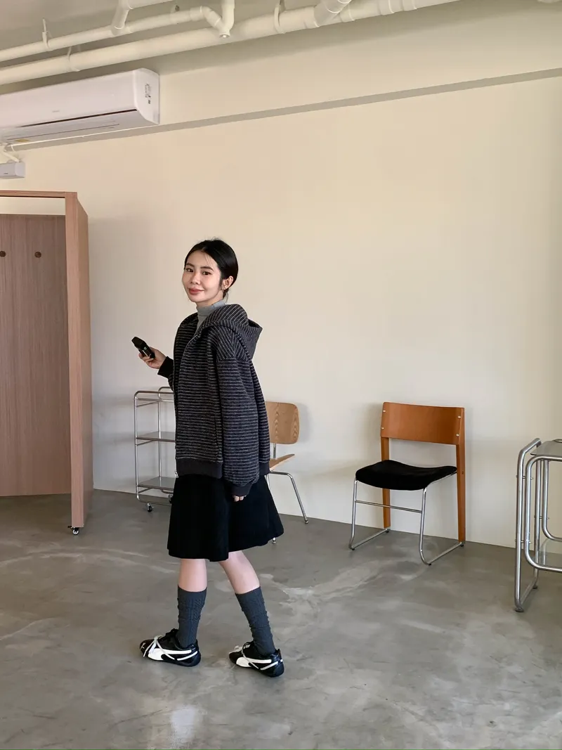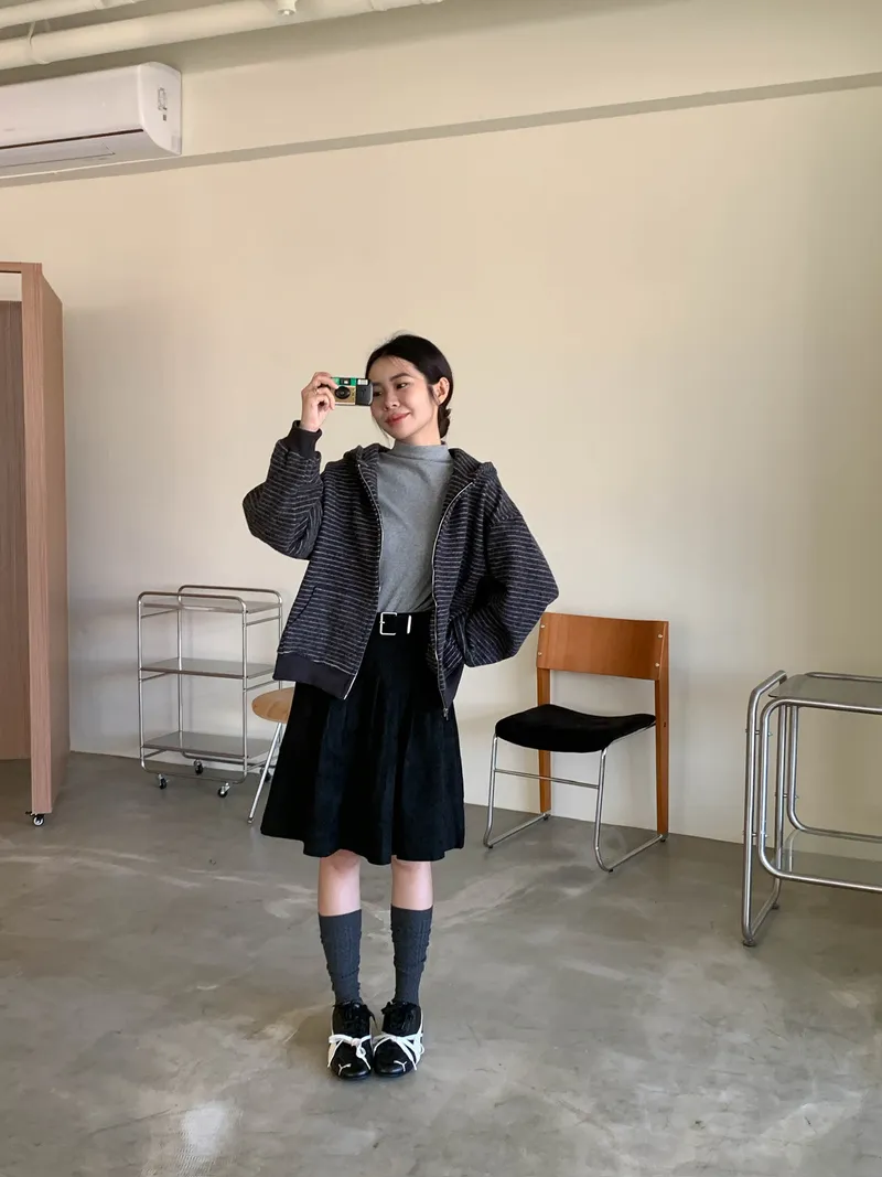 此款著S,腰圍合身舒適,臀以下寬鬆有空間,長度約在膝蓋下緣
