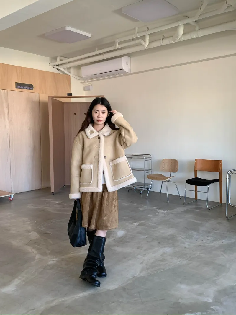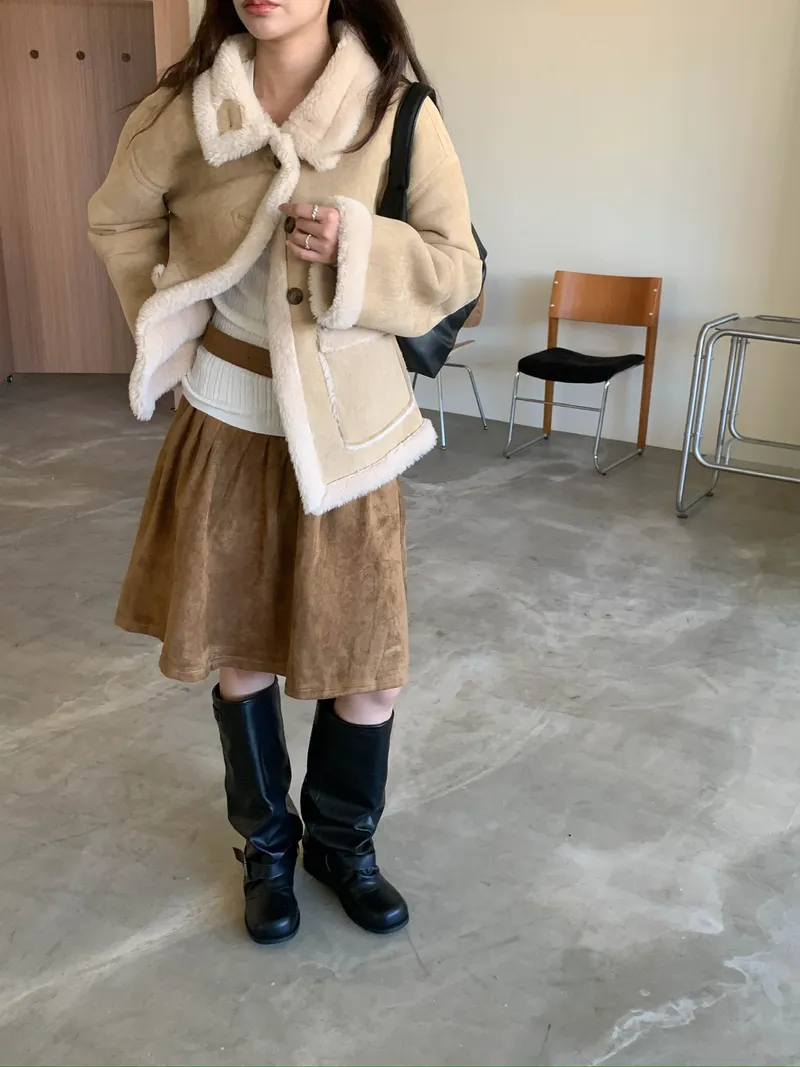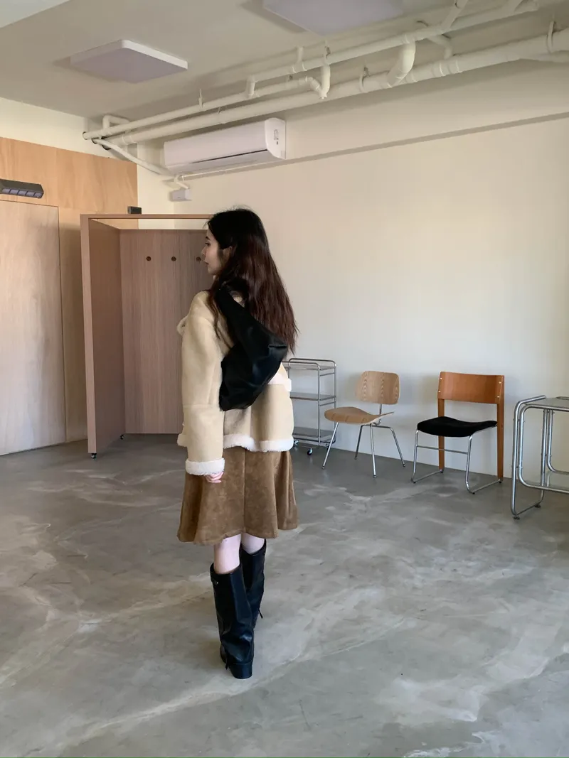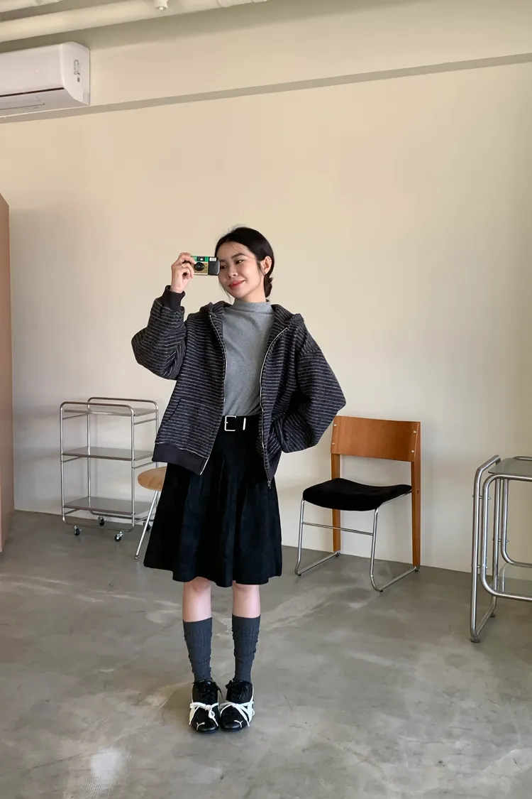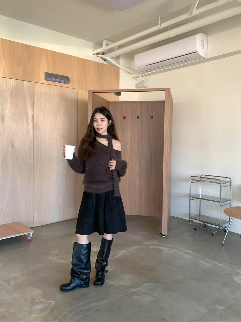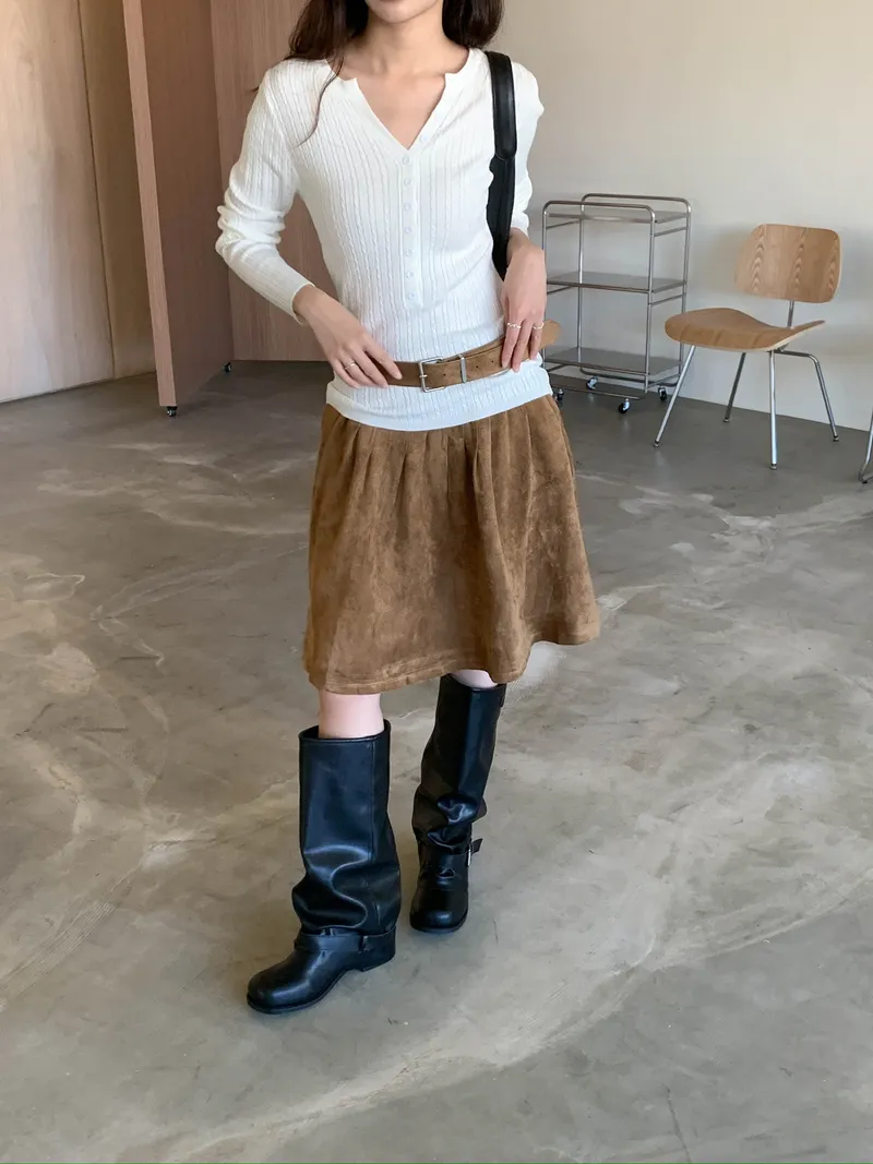 此款著S,腰圍合身舒適,臀以下寬鬆有空間,長度約在膝蓋下緣