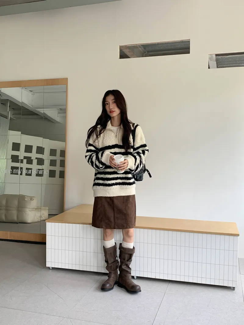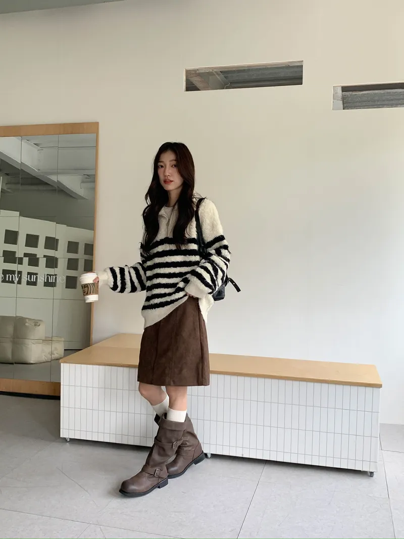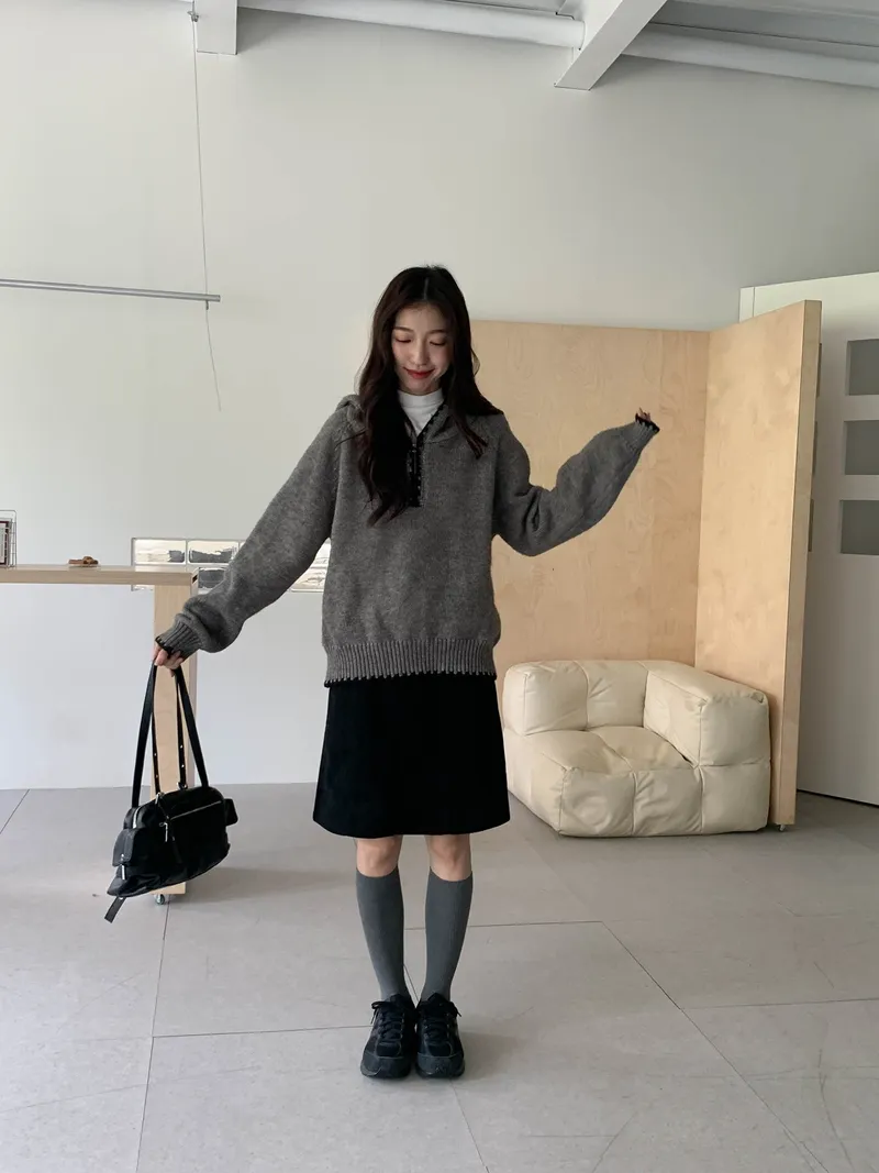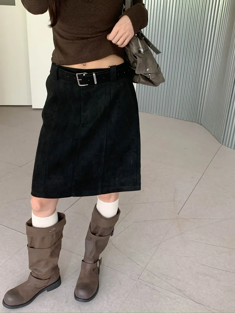 此款著腰圍合身舒適,臀以下寬鬆有空間,長度約在膝蓋上一個手掌