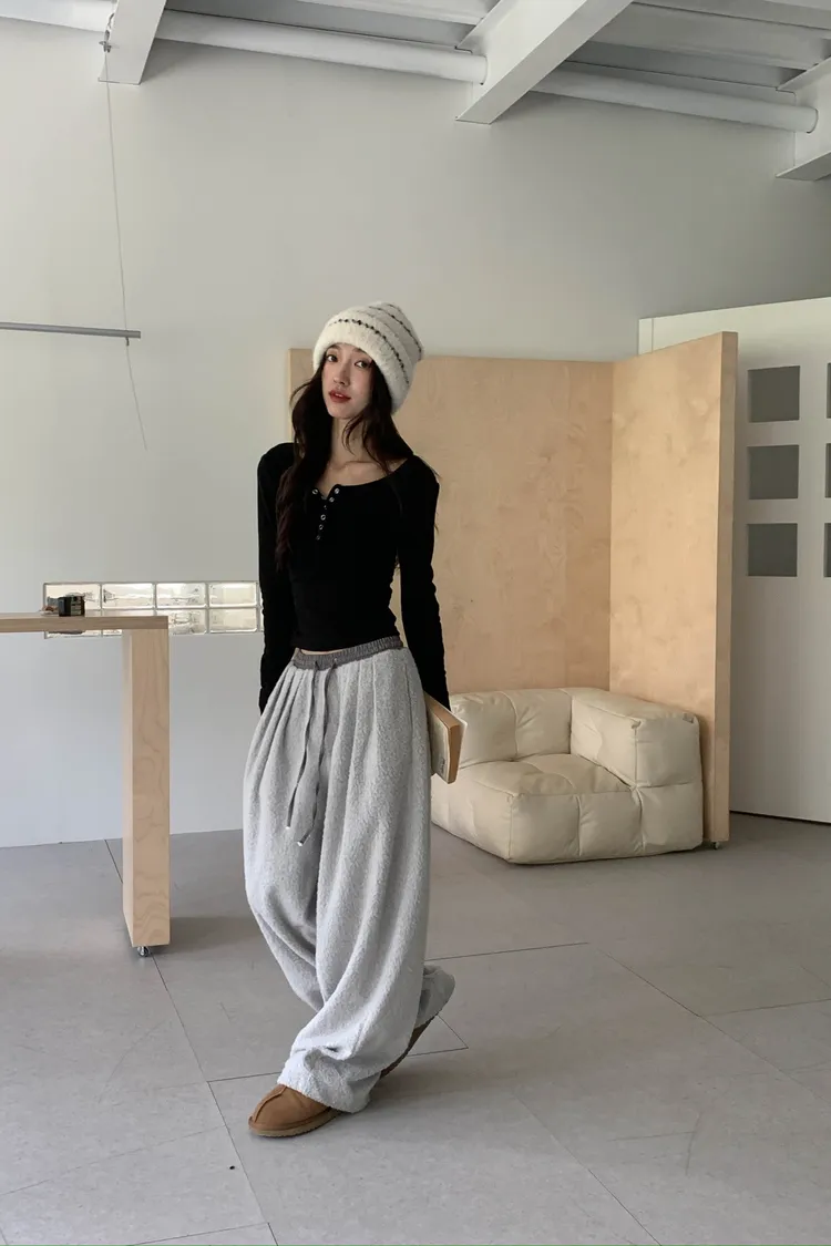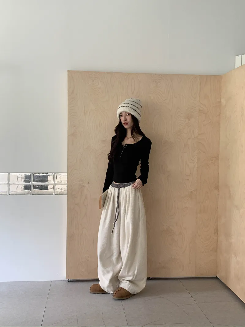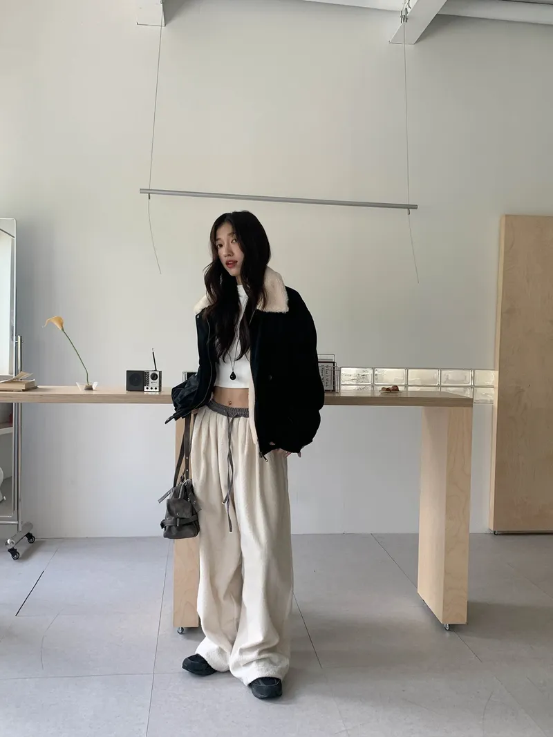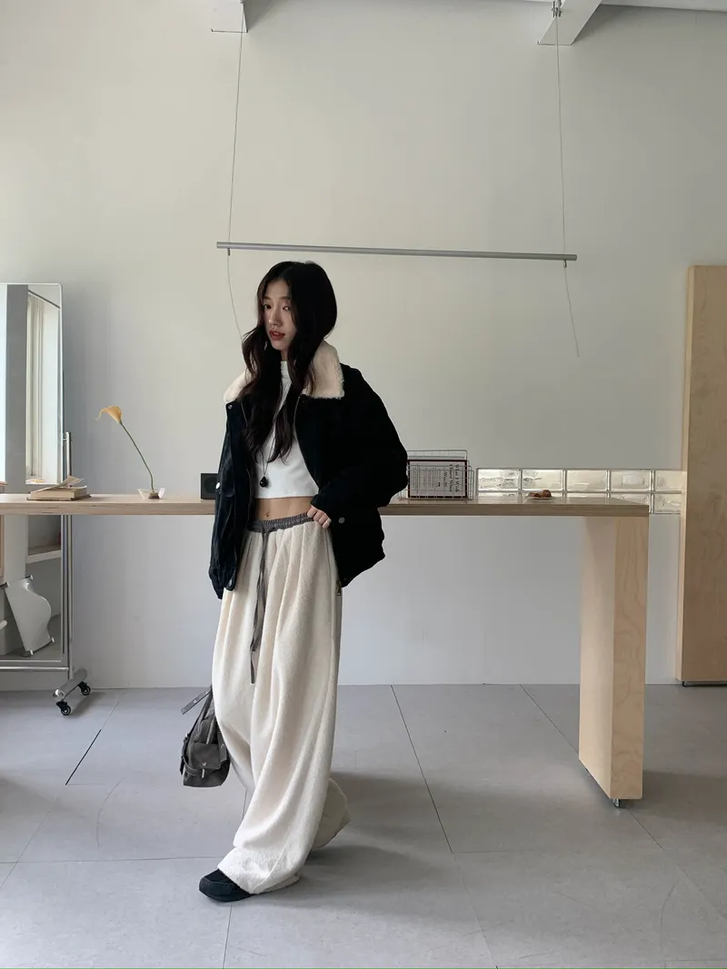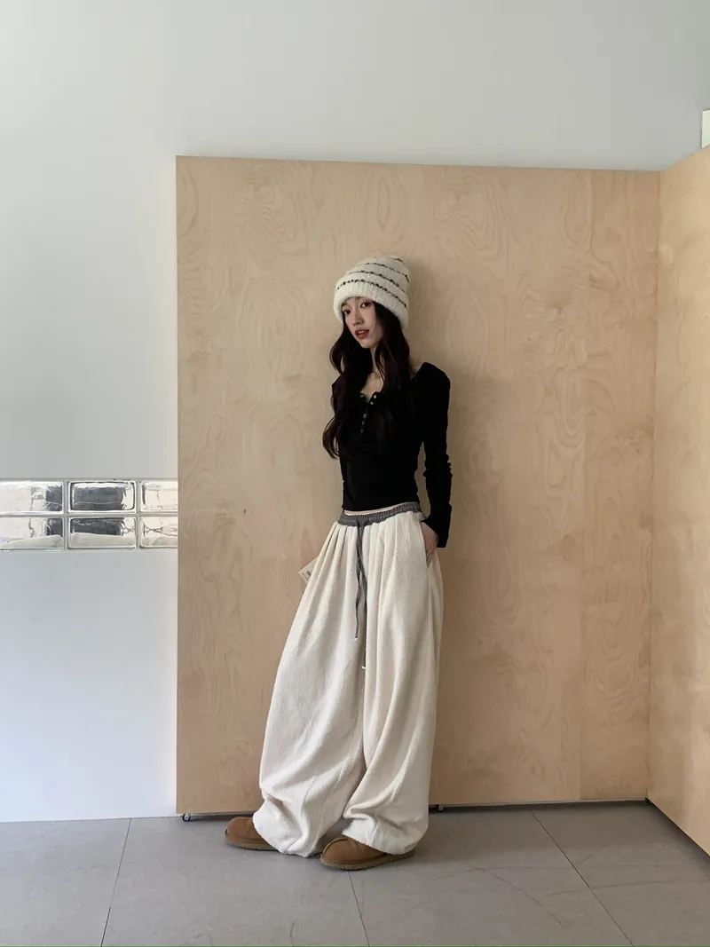 微氣球褲的圓潤版型搭配前打褶