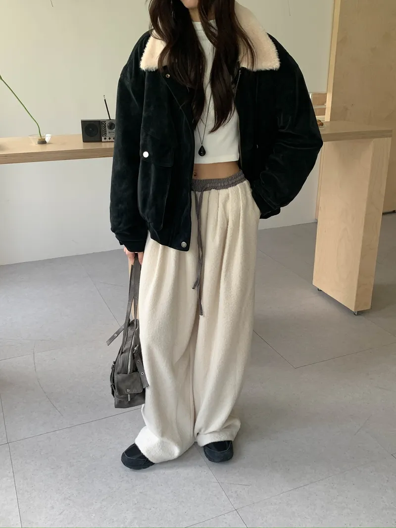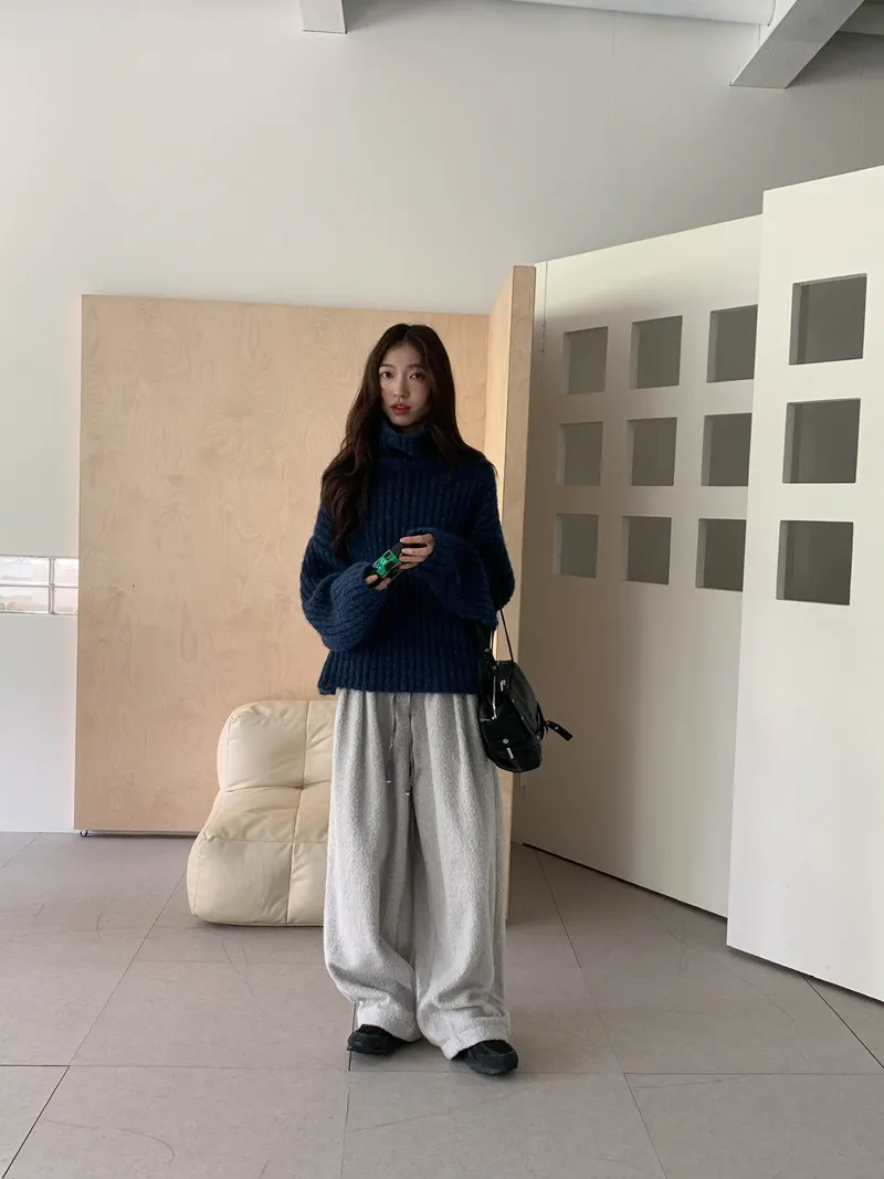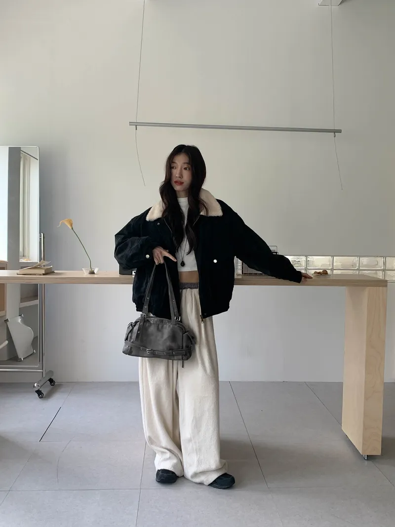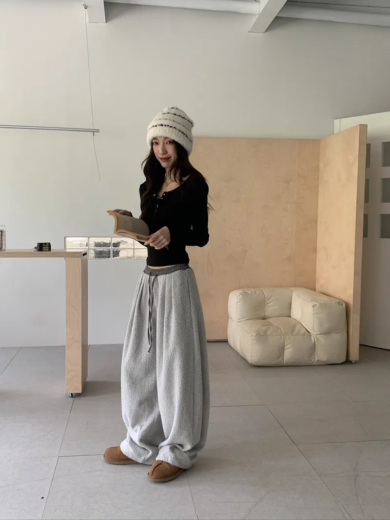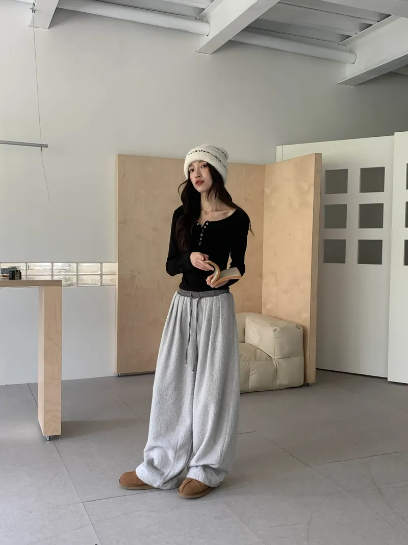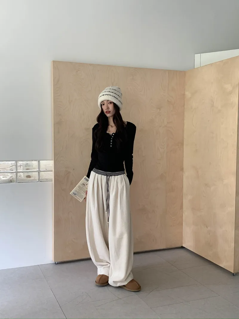 微氣球褲的圓潤版型搭配前打褶
