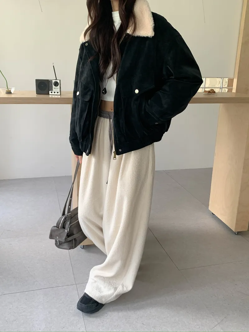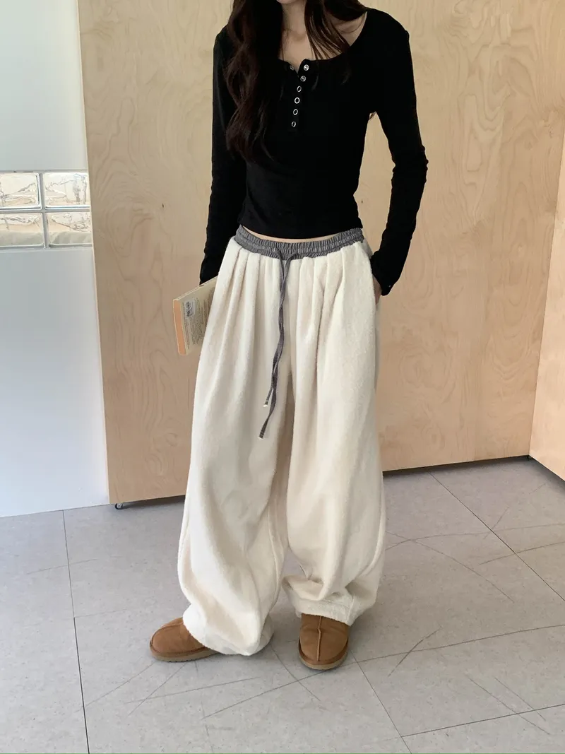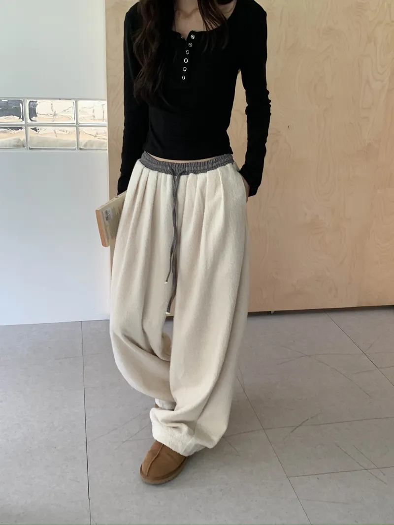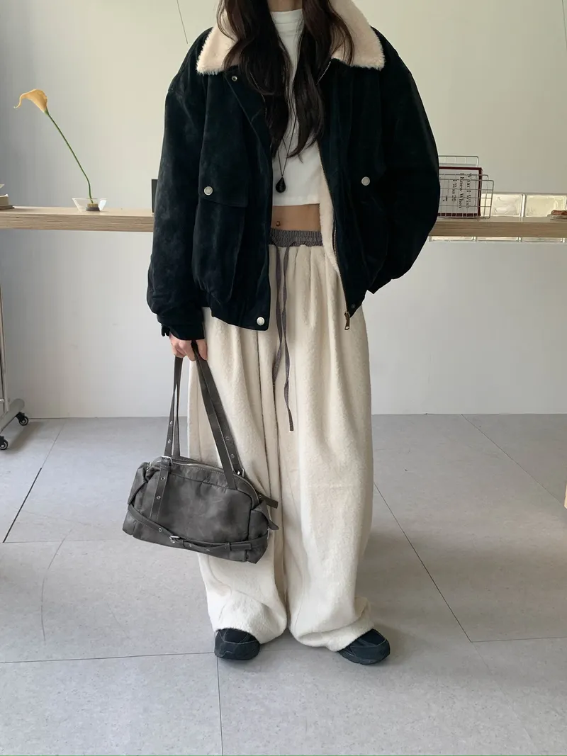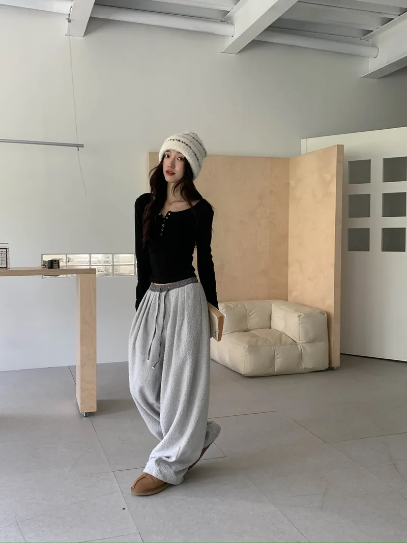微氣球褲的圓潤版型搭配前打褶
