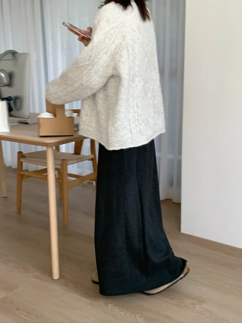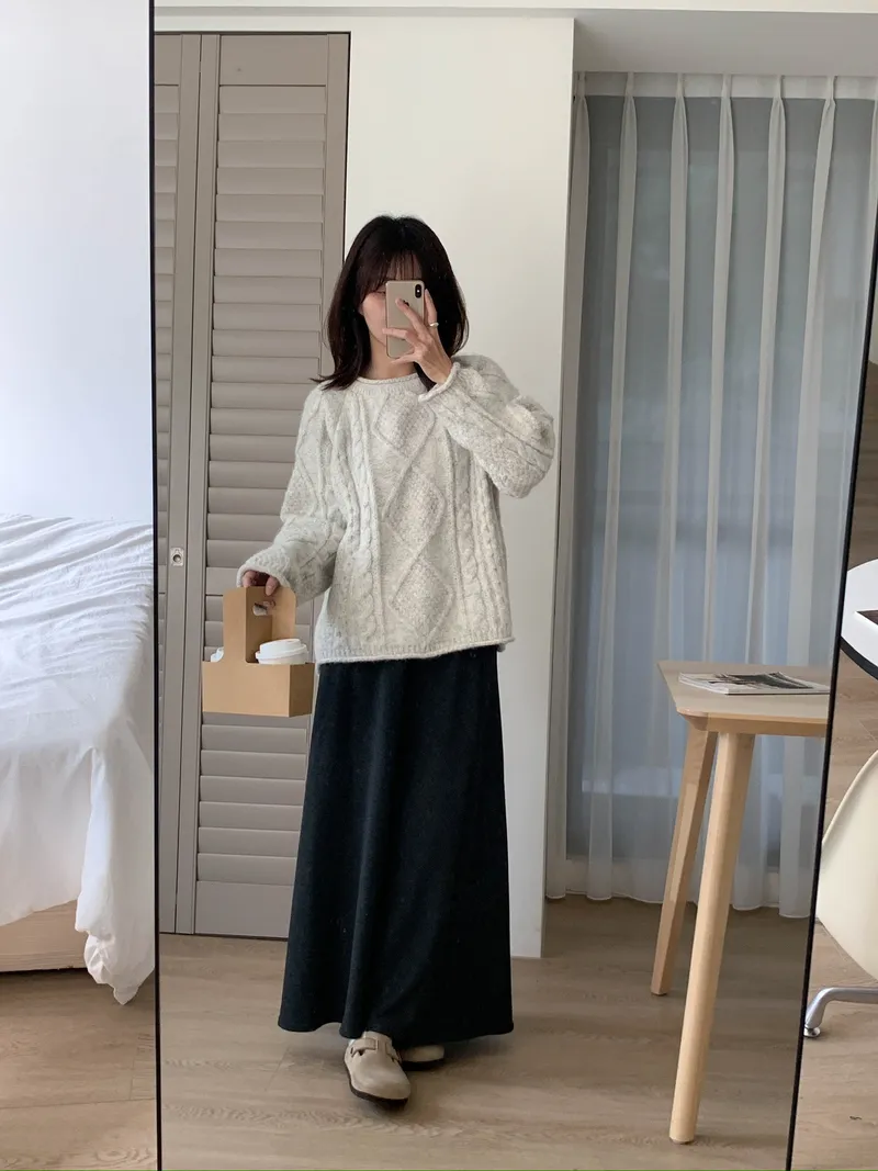 腰圍合身舒適,臀以下寬鬆有空間,長度約在腳踝處