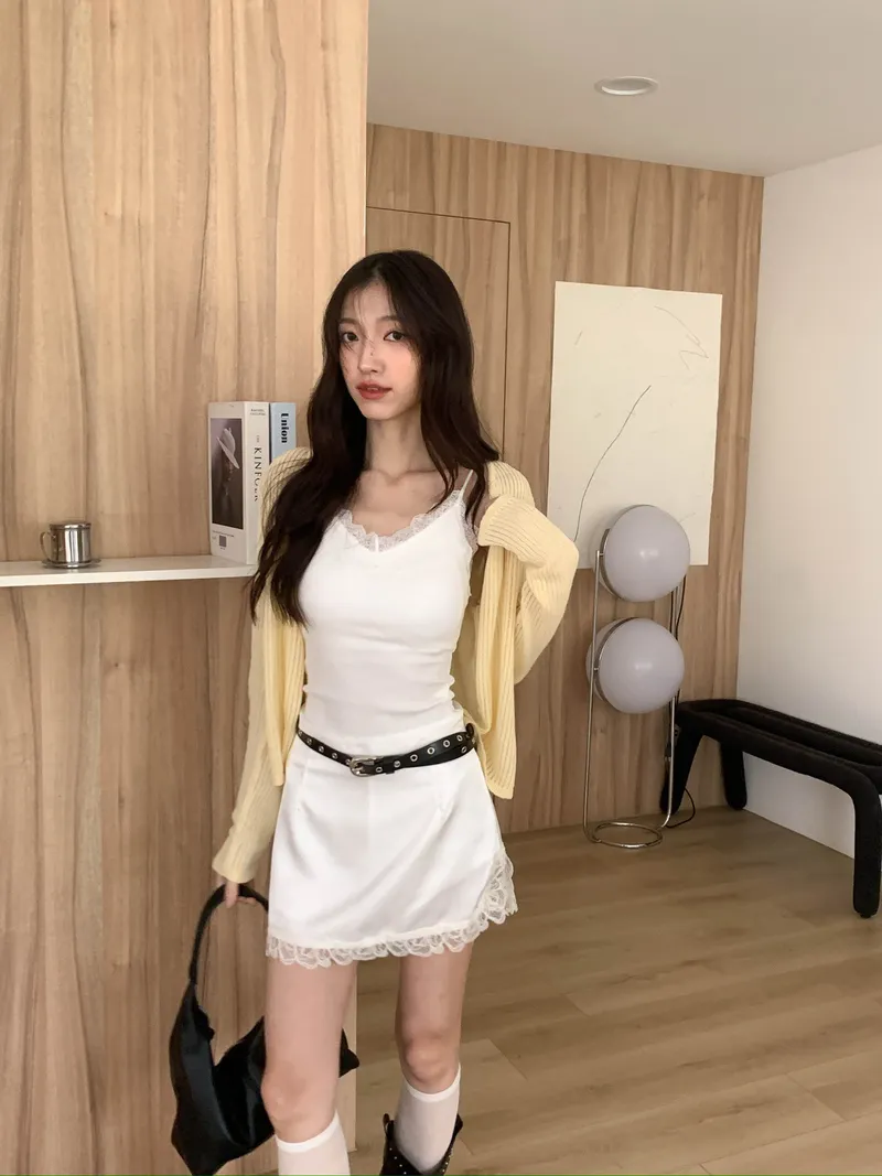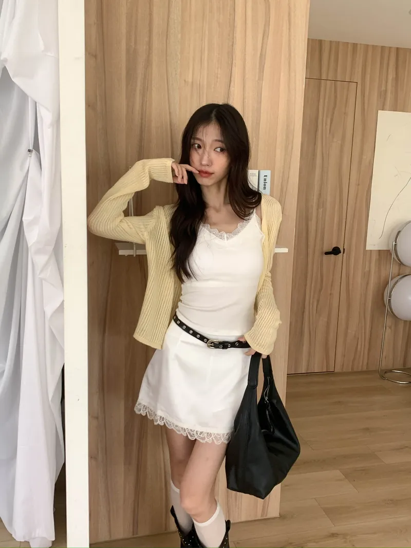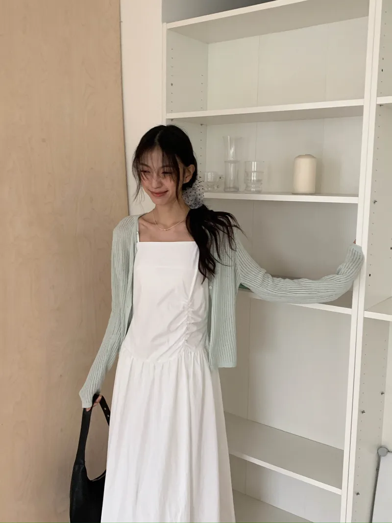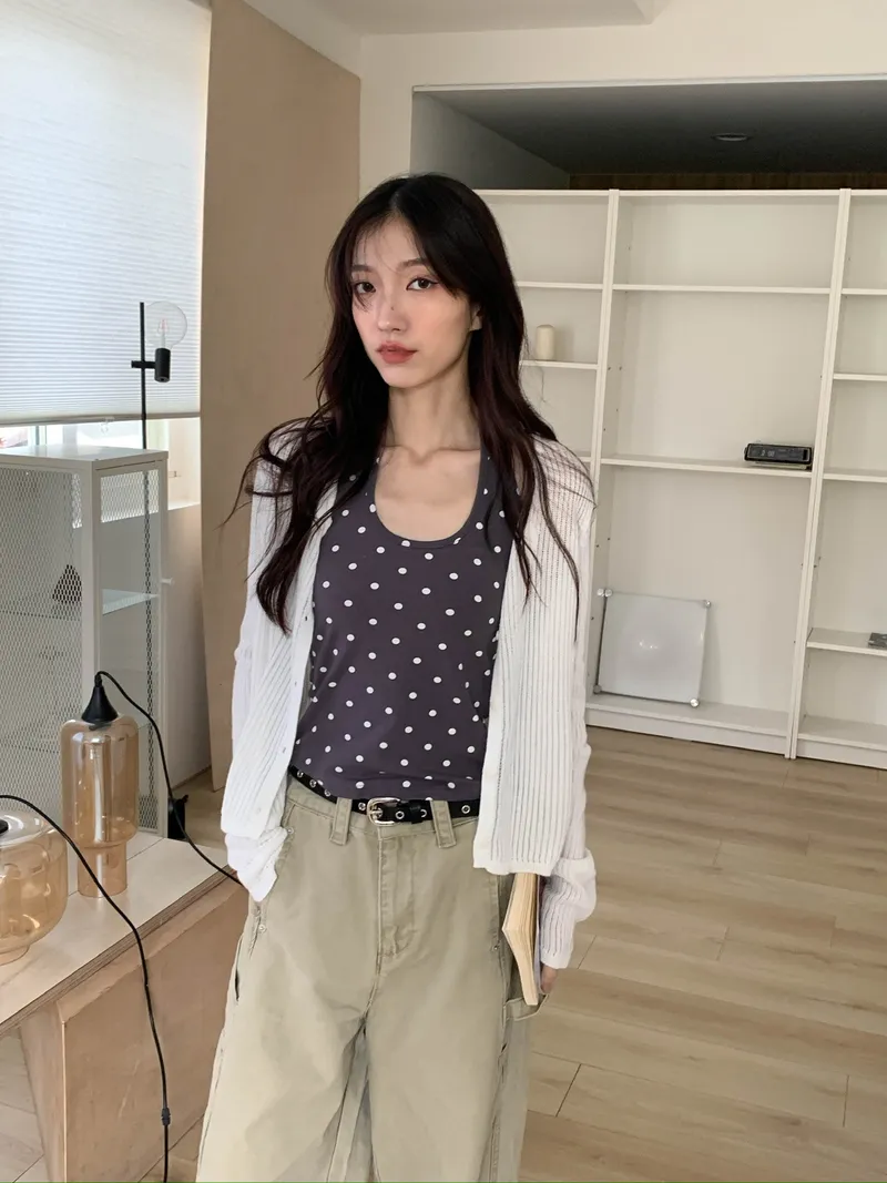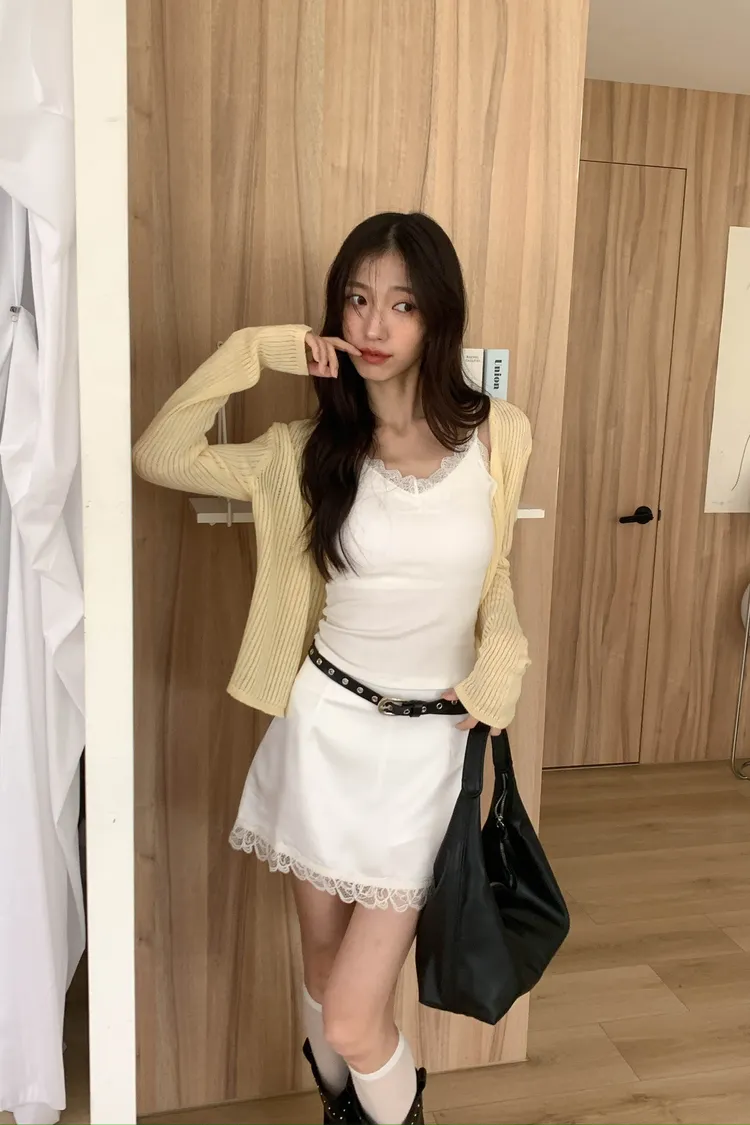 內搭細肩帶或蕾絲背心更有溫柔層次感~