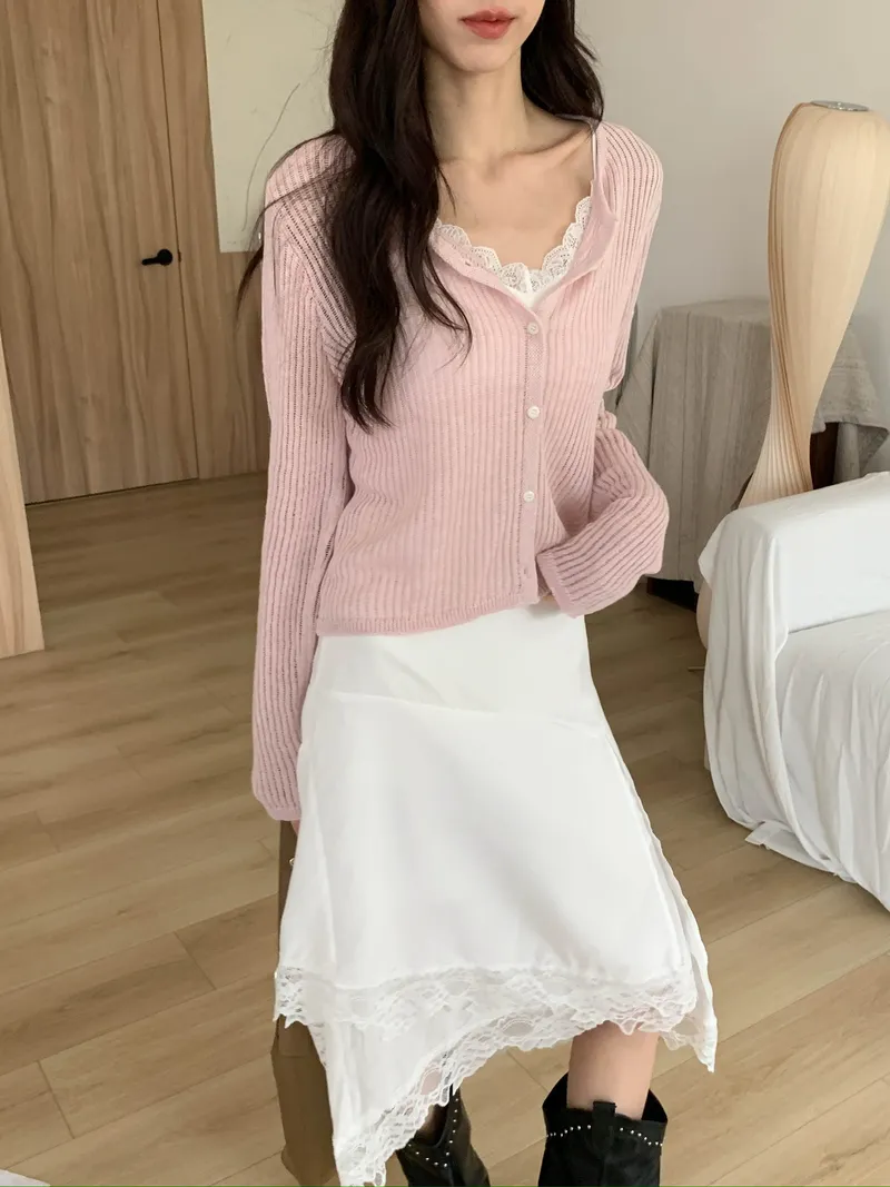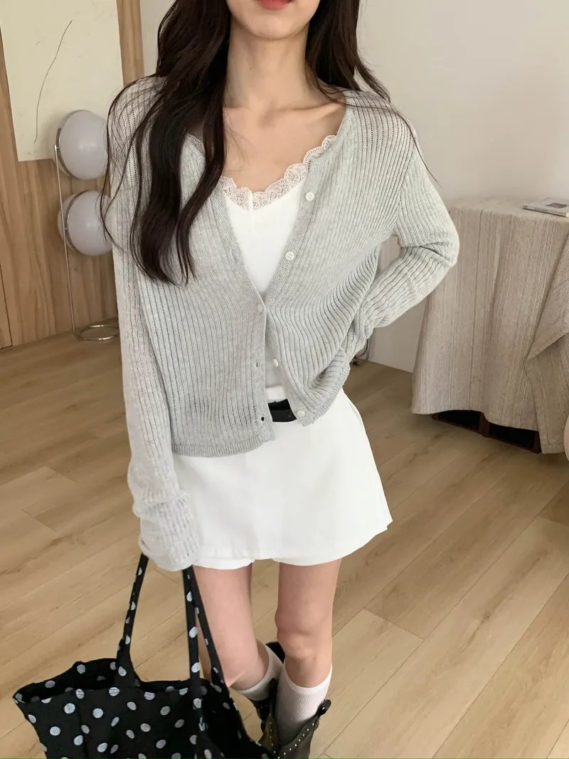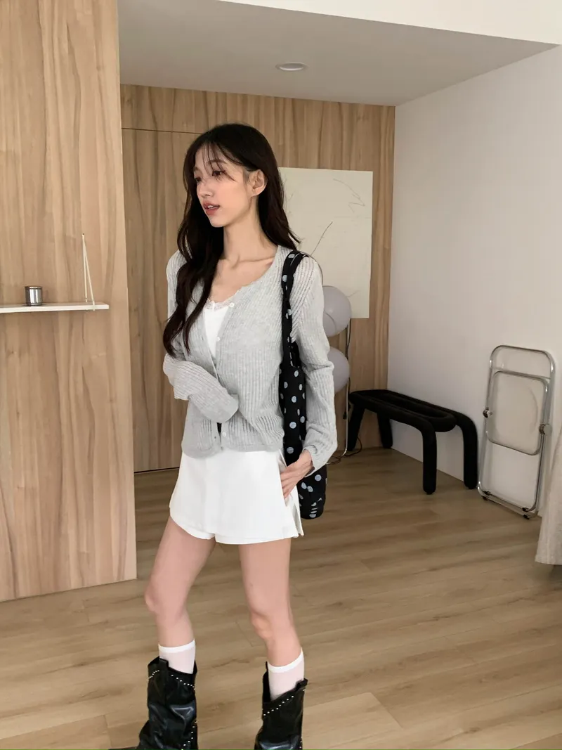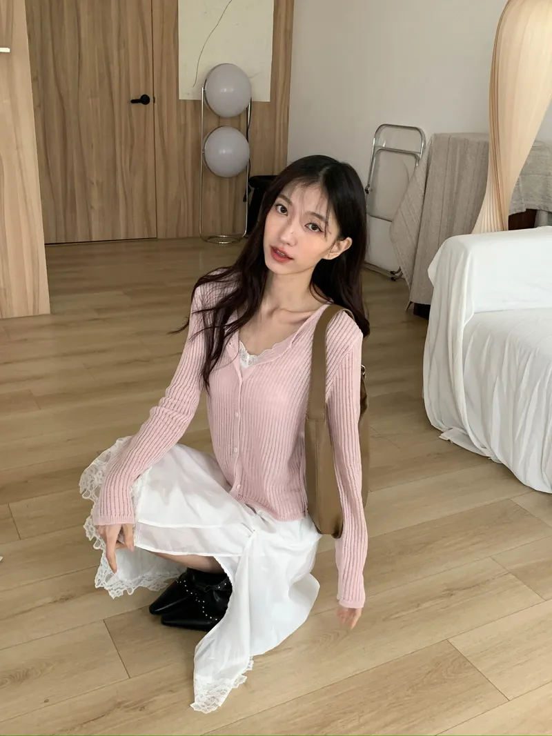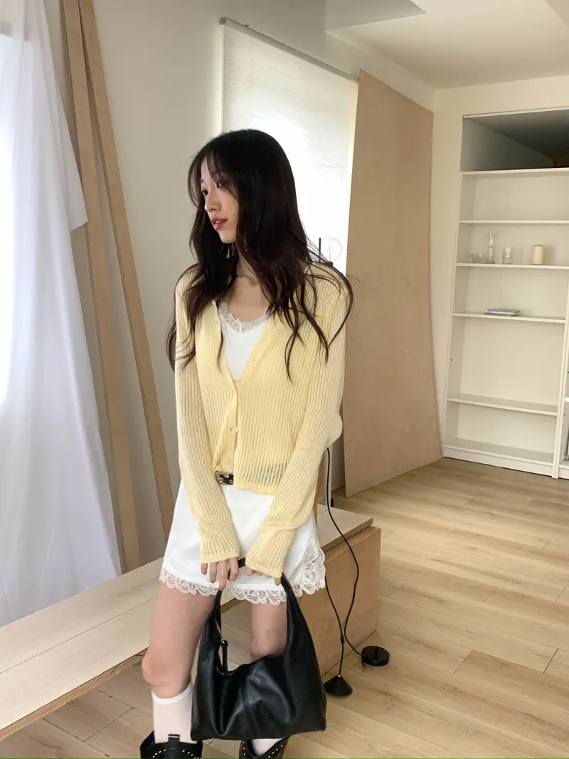 內搭細肩帶或蕾絲背心更有溫柔層次感~