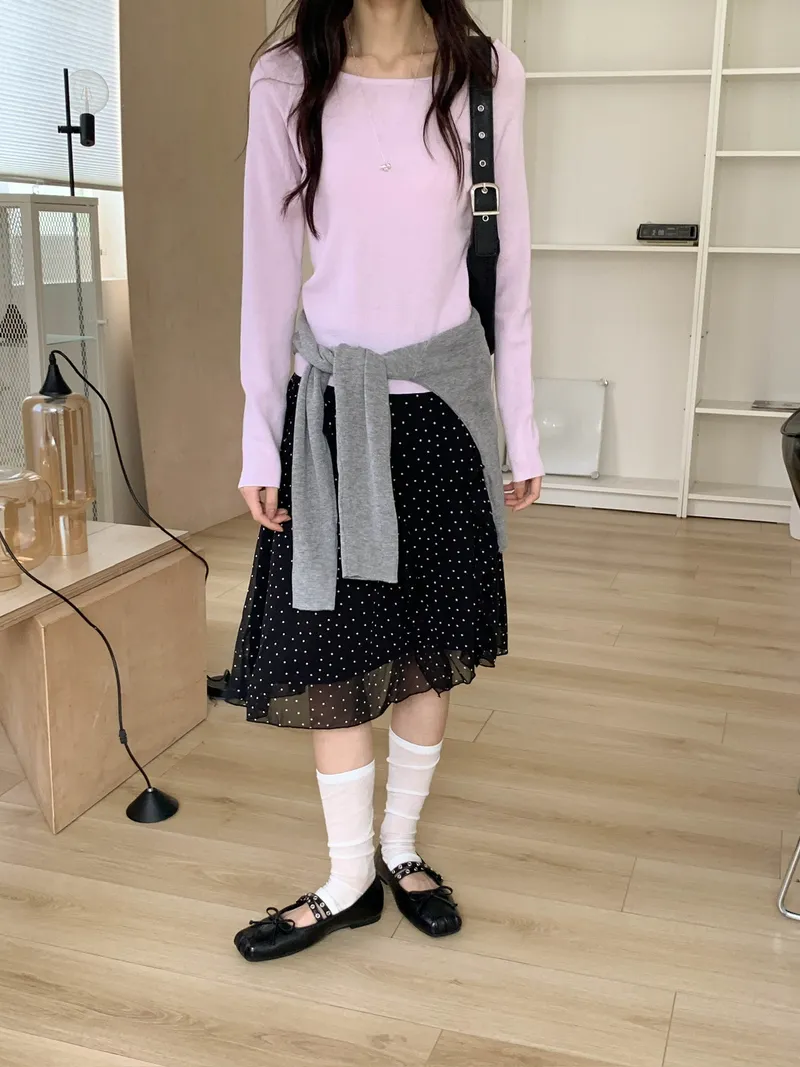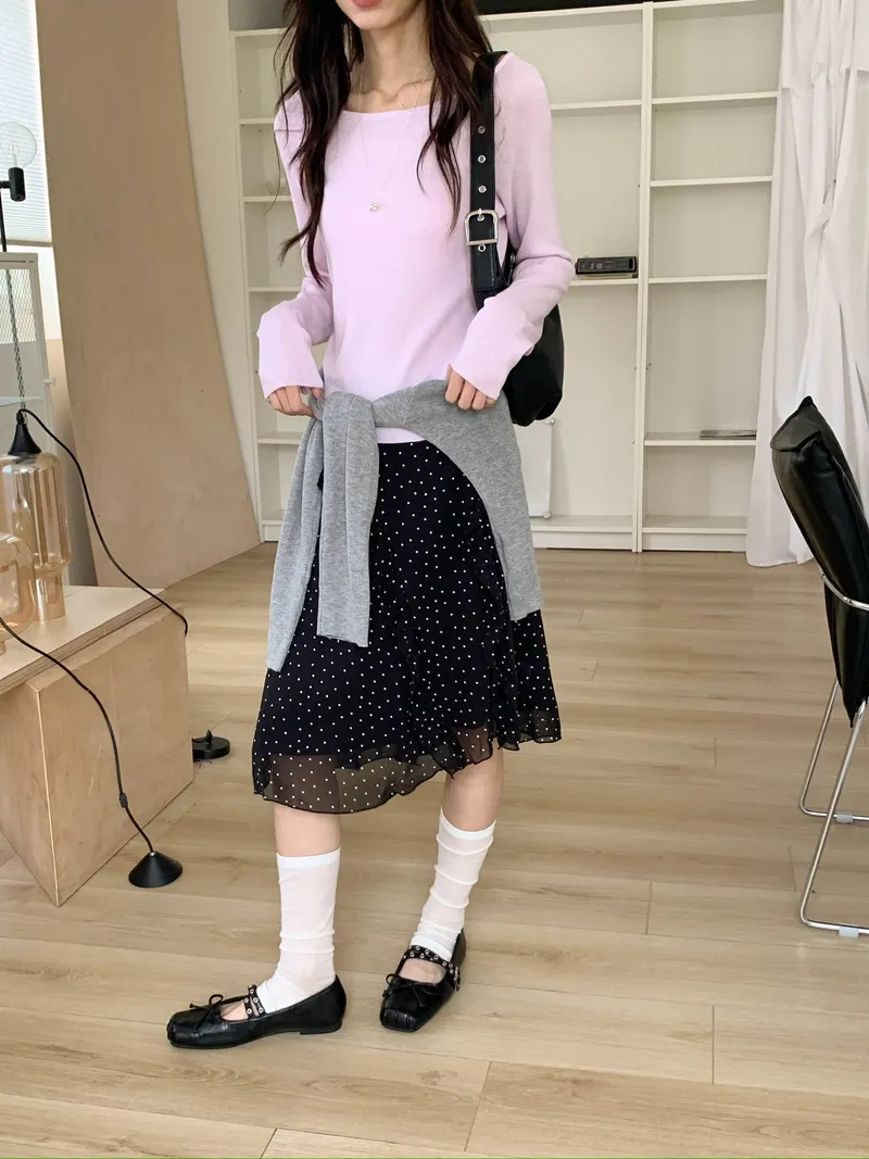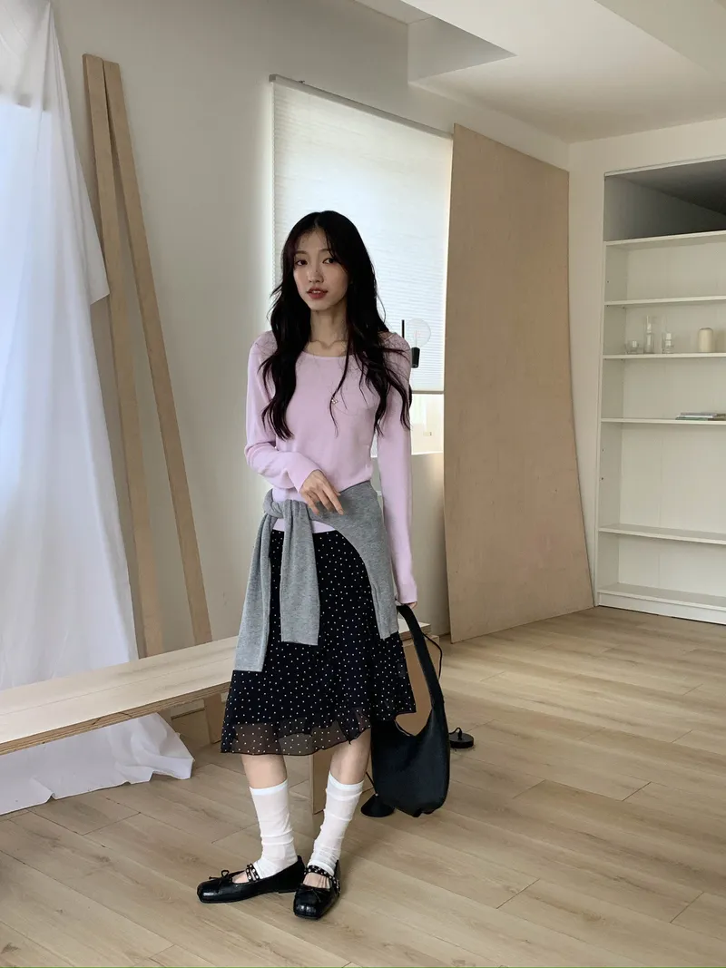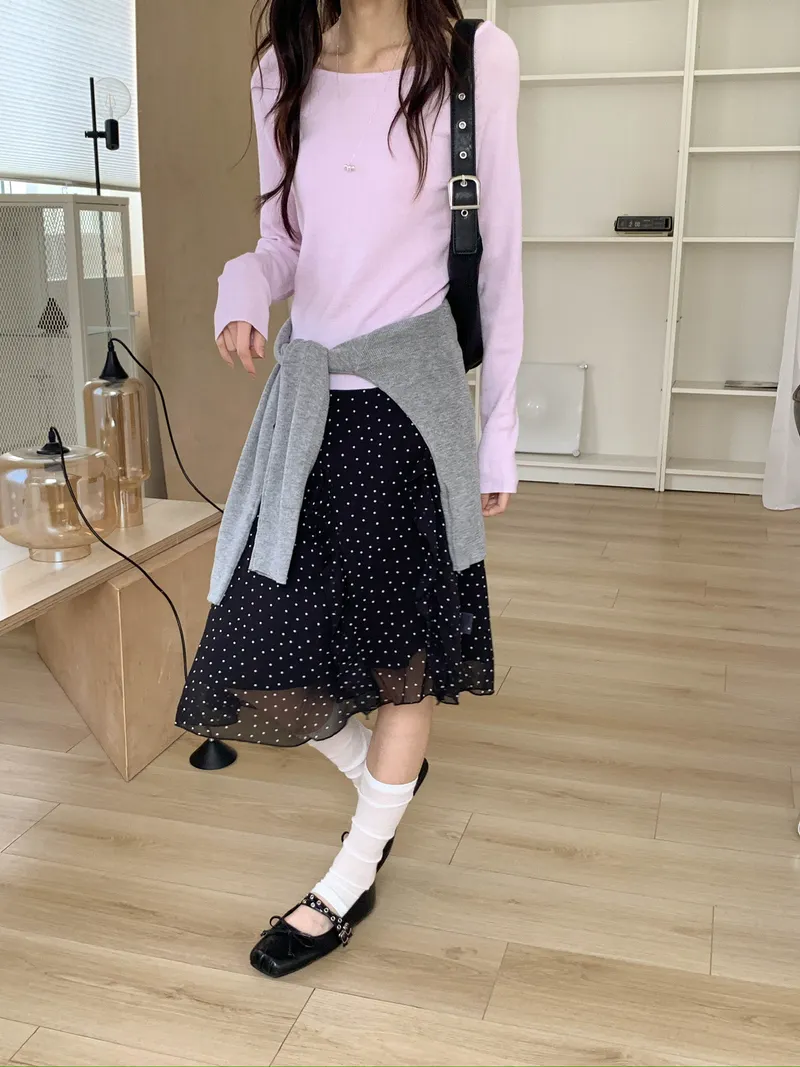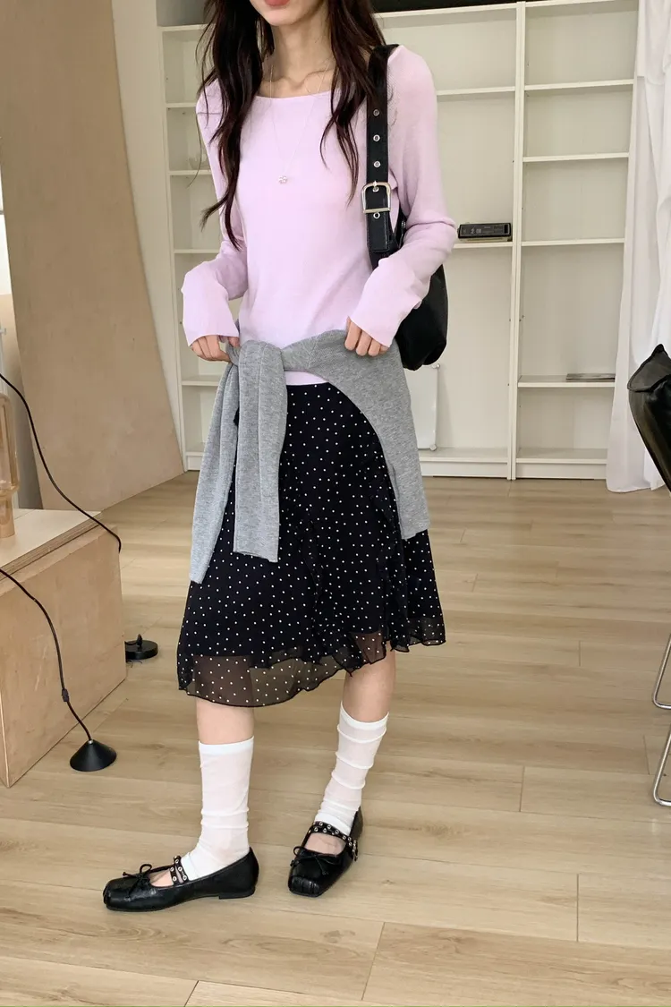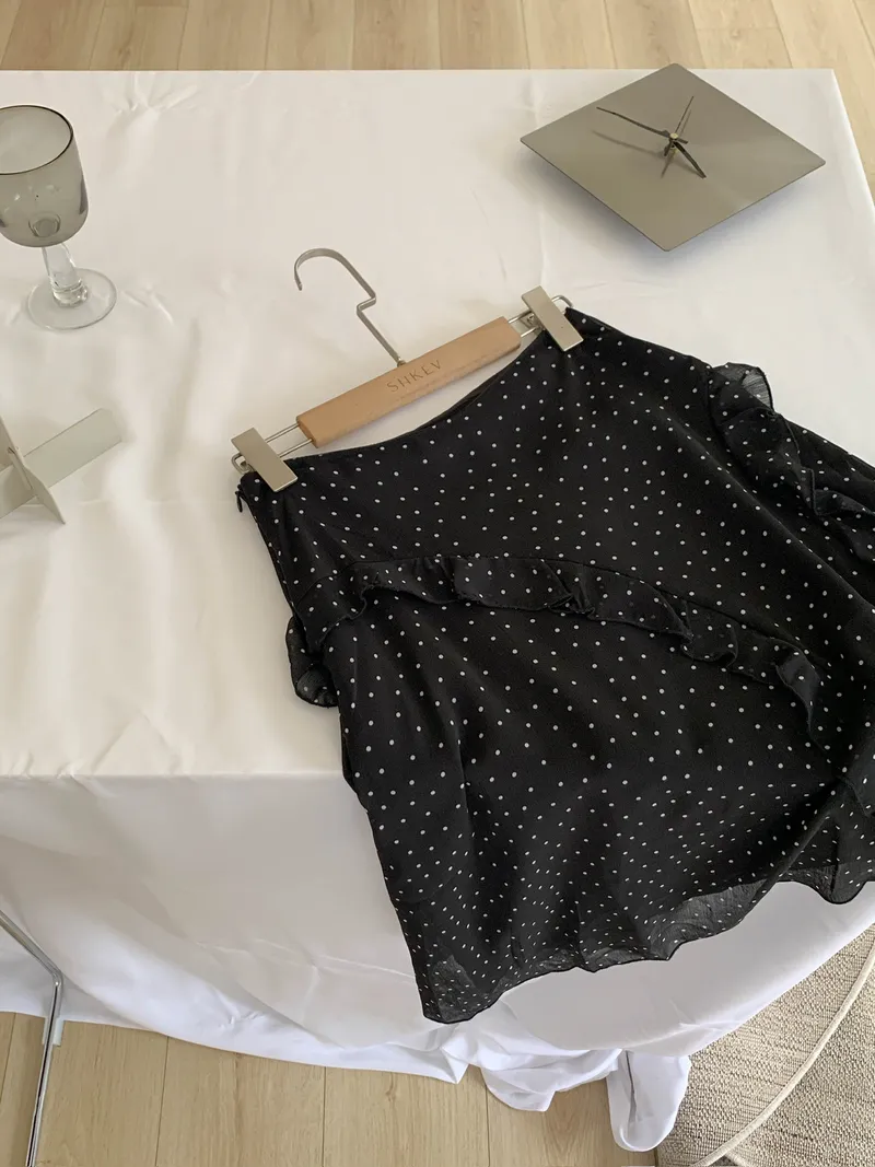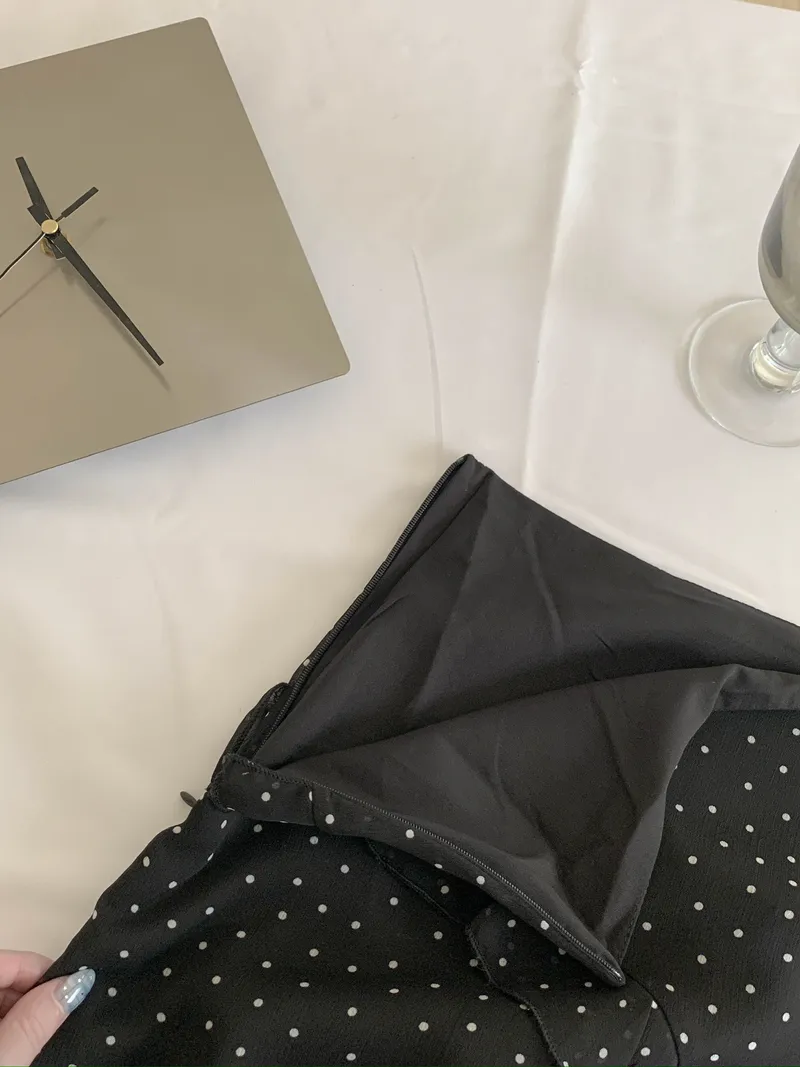整體是一款帶復古感的小波點裙