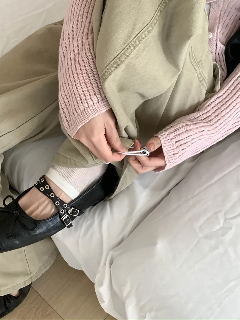 此款著M,腰圍微鬆舒適,臀以下寬鬆有空間,長度不穿鞋切地(pick #M)