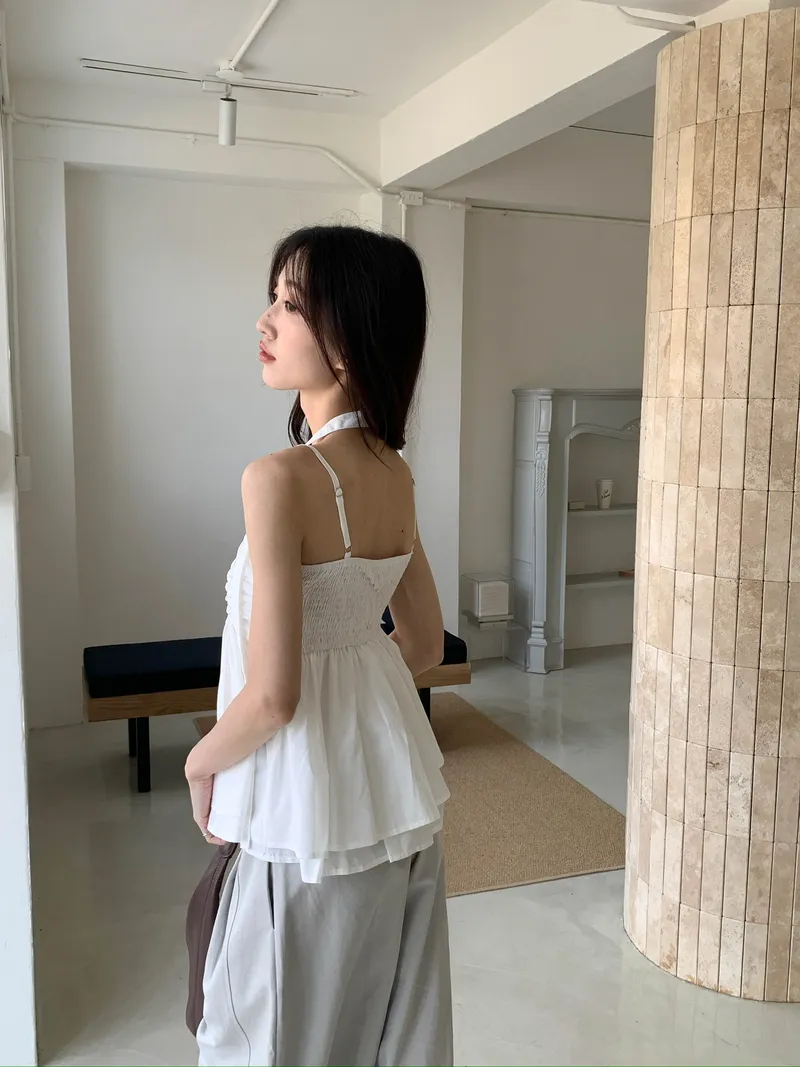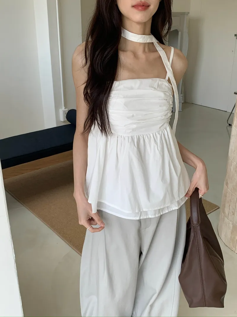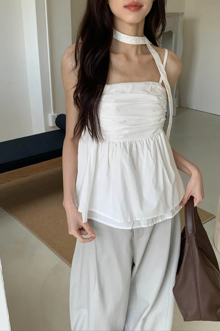 胸前橫向堆疊的皺褶設計