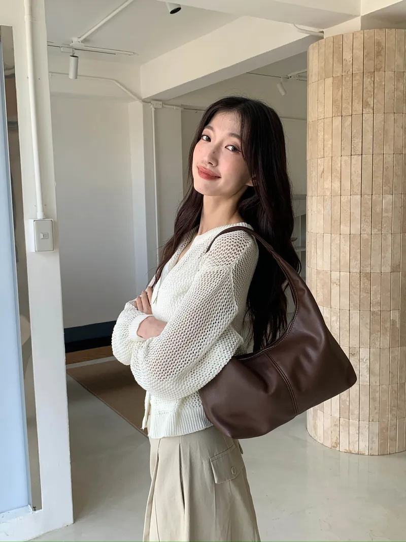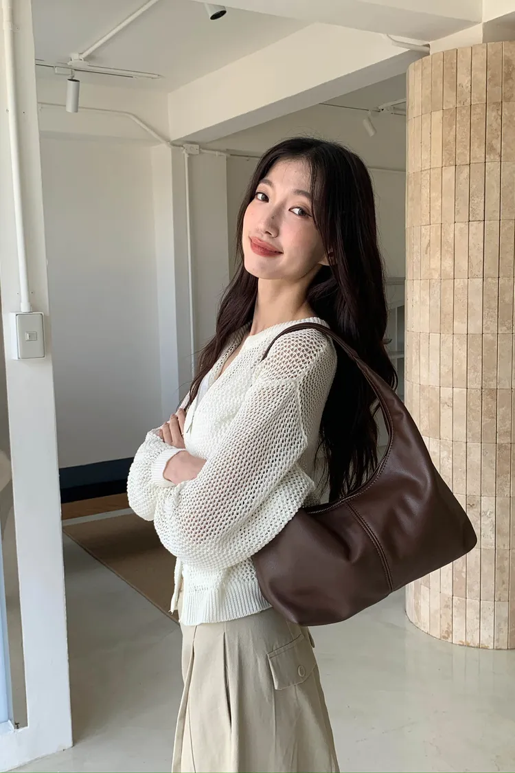 簡約素面的皮革X立體車線造型
