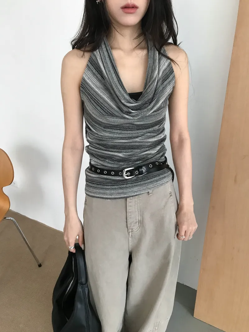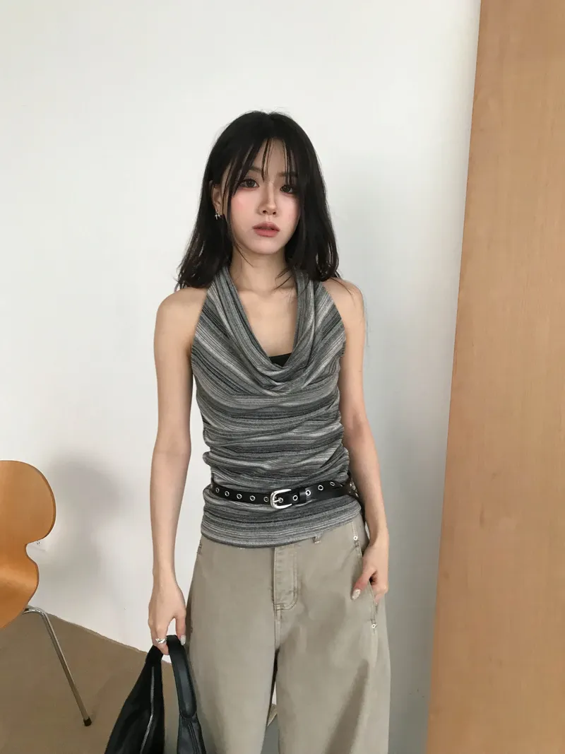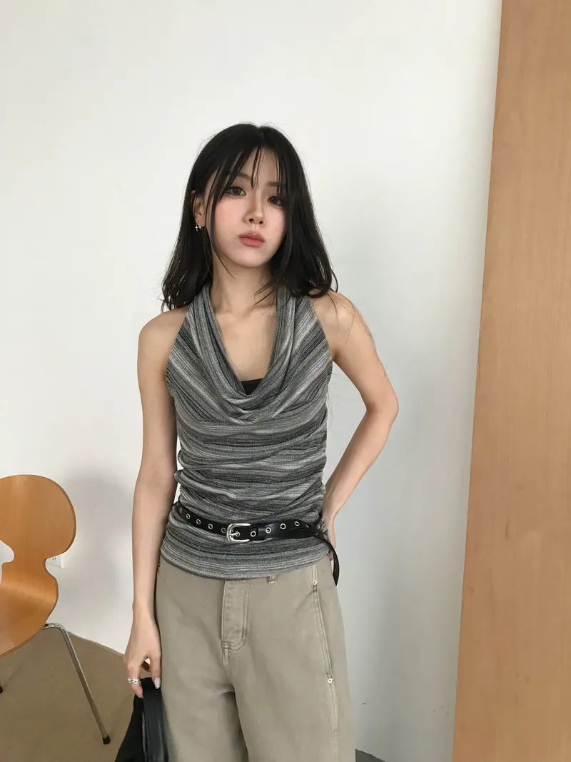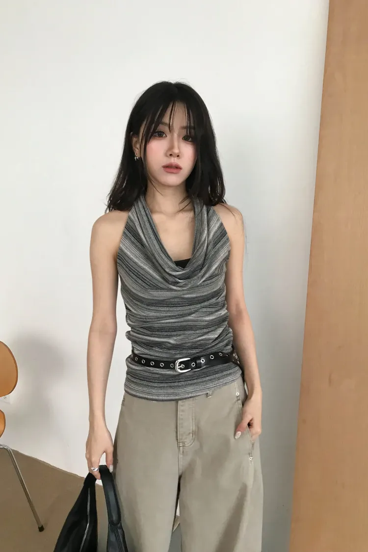 繞脖x盪領的設計款上衣