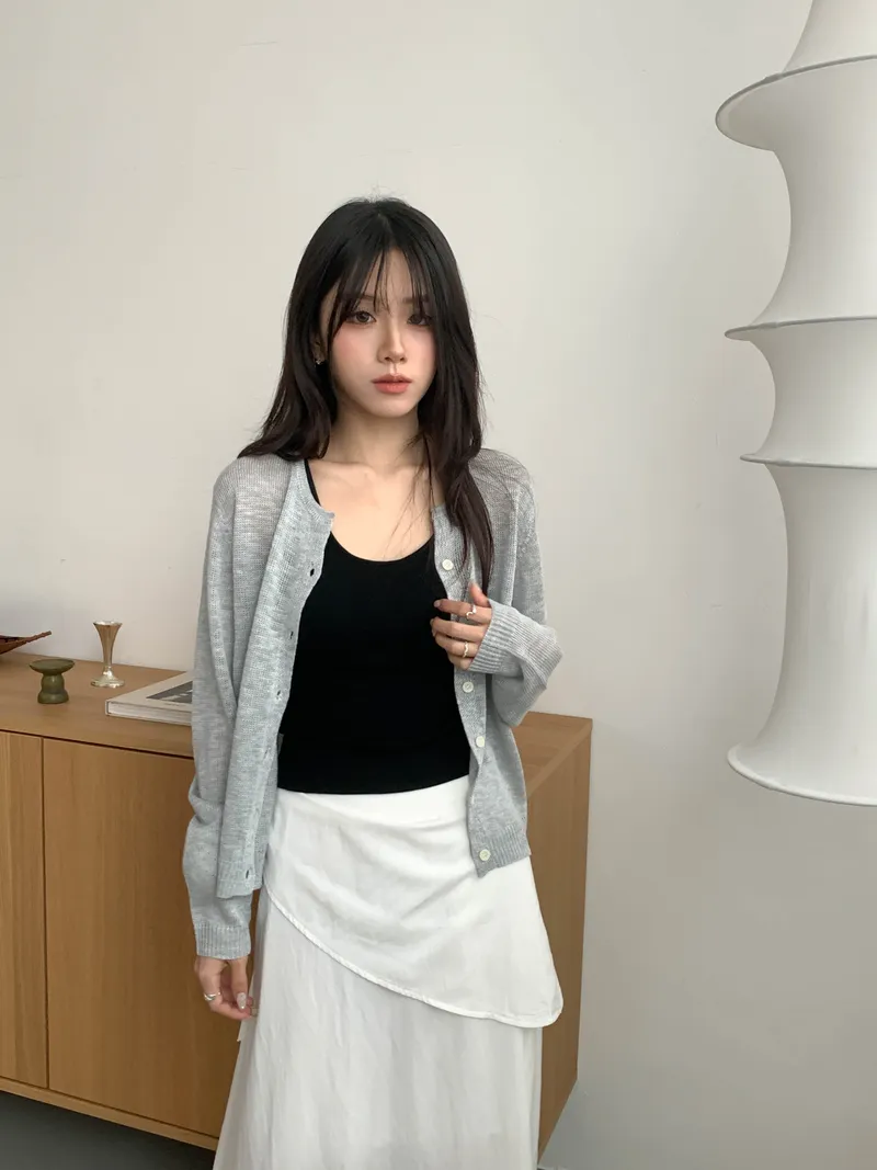 內搭細肩背心.疊穿中長版傘襬上衣.隨性搭個牛仔褲